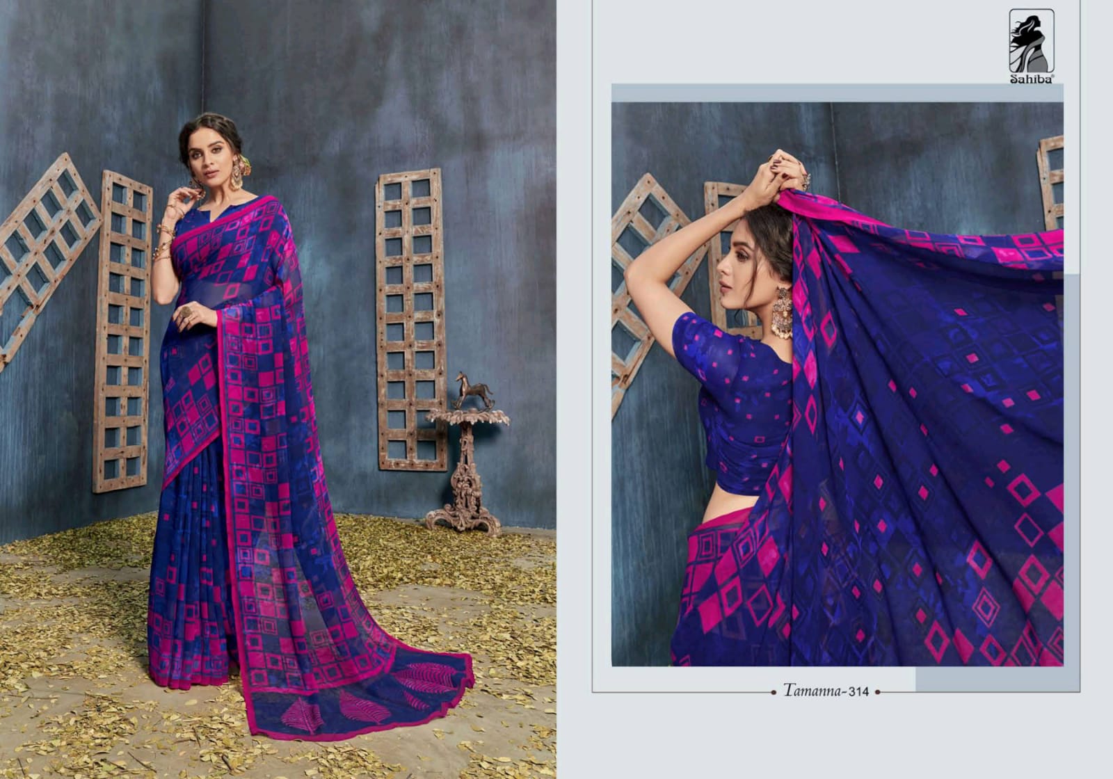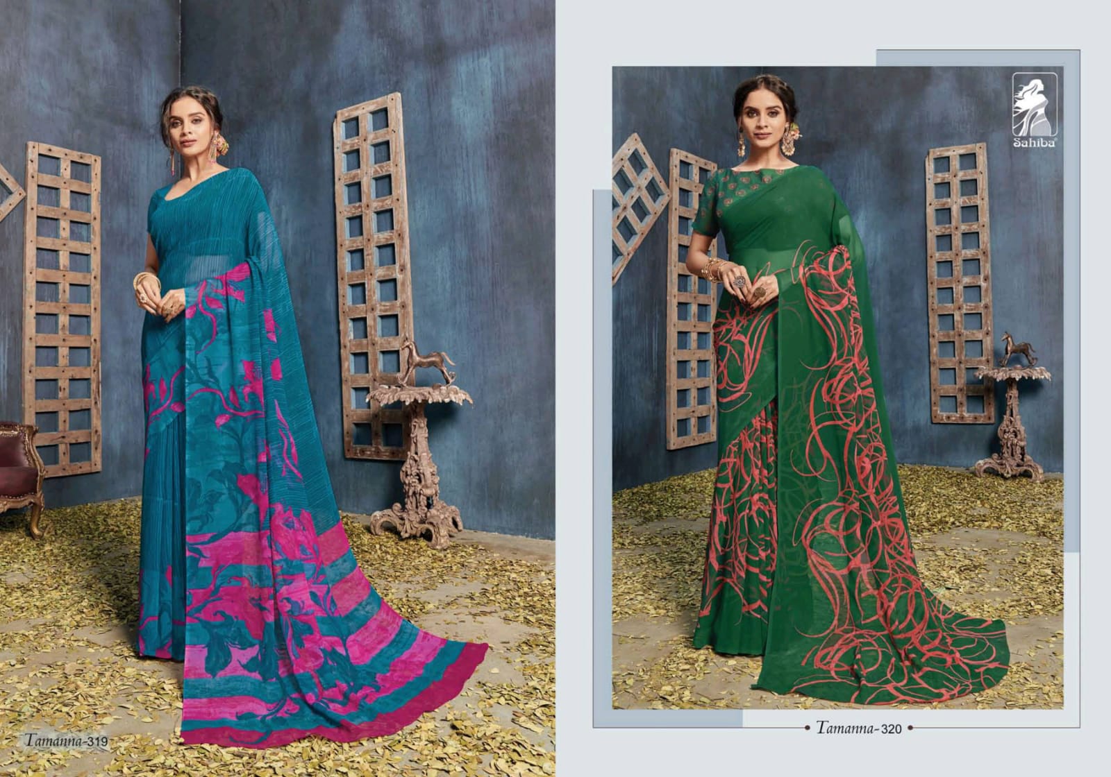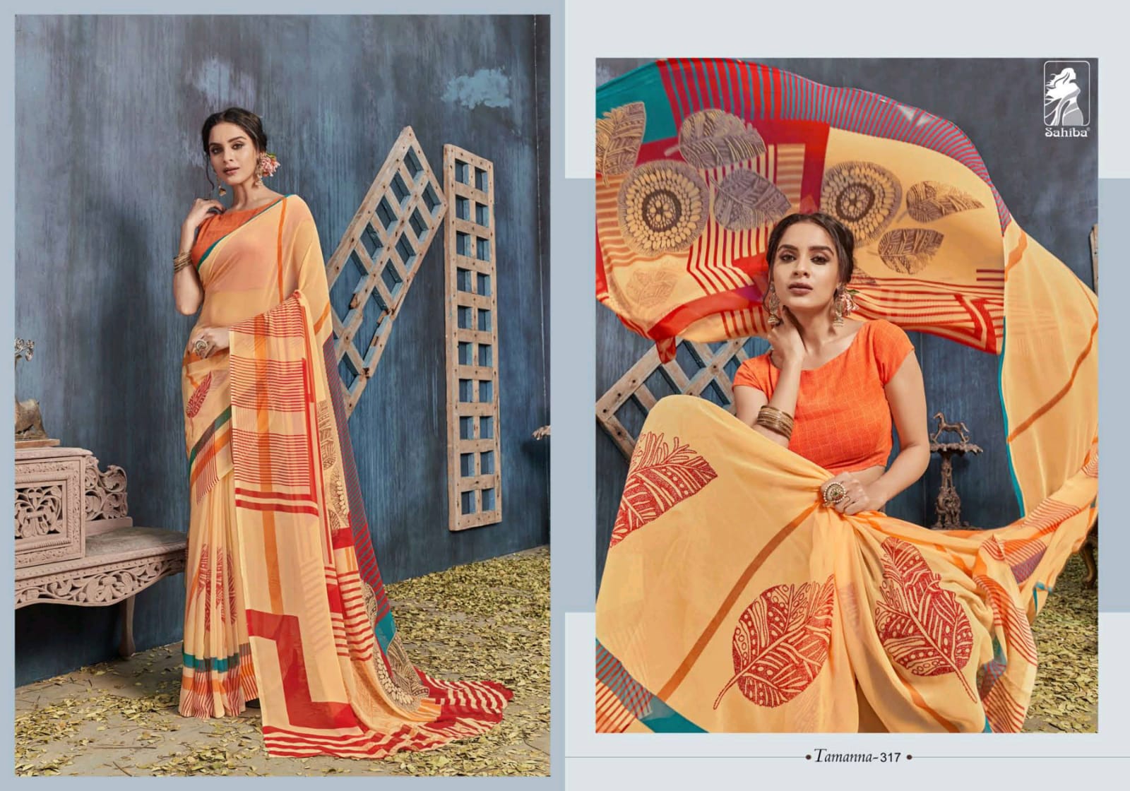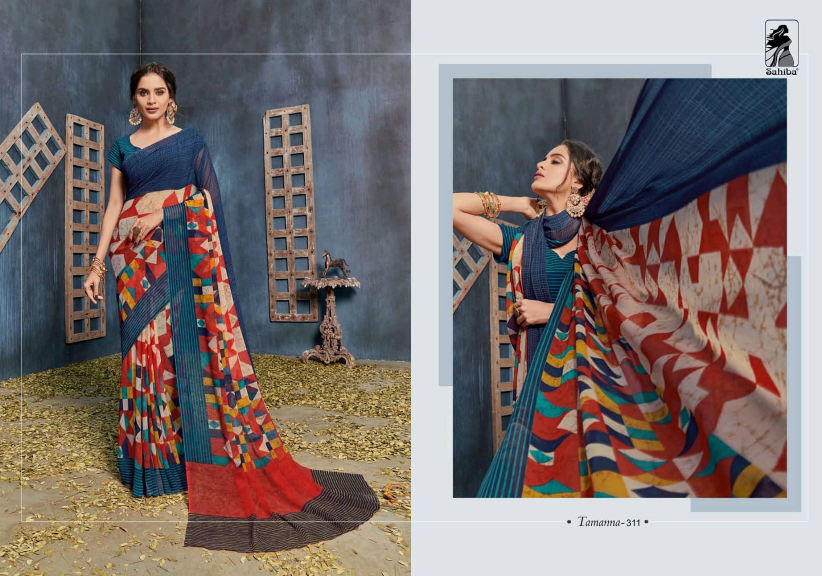 Sahiba Presenting Tamanna Vol 3 Colourful Printed Velvet Georgette Casual Wear Saree