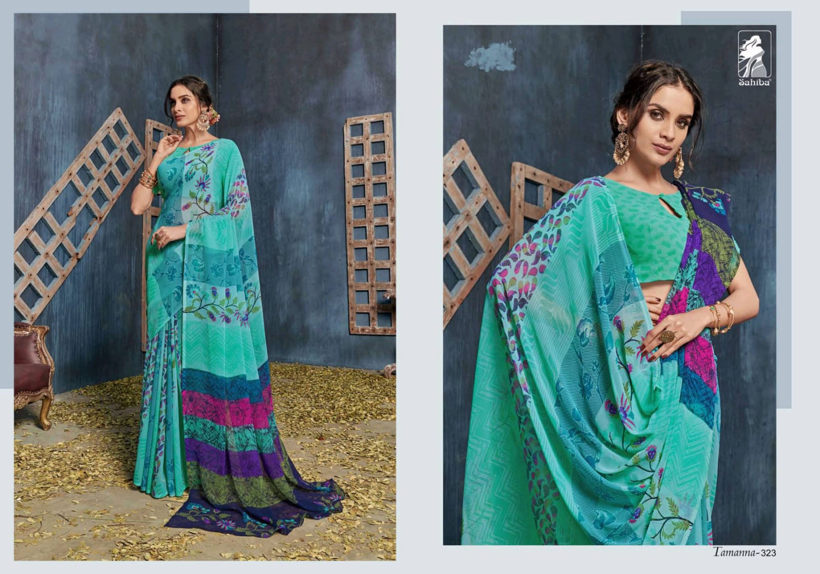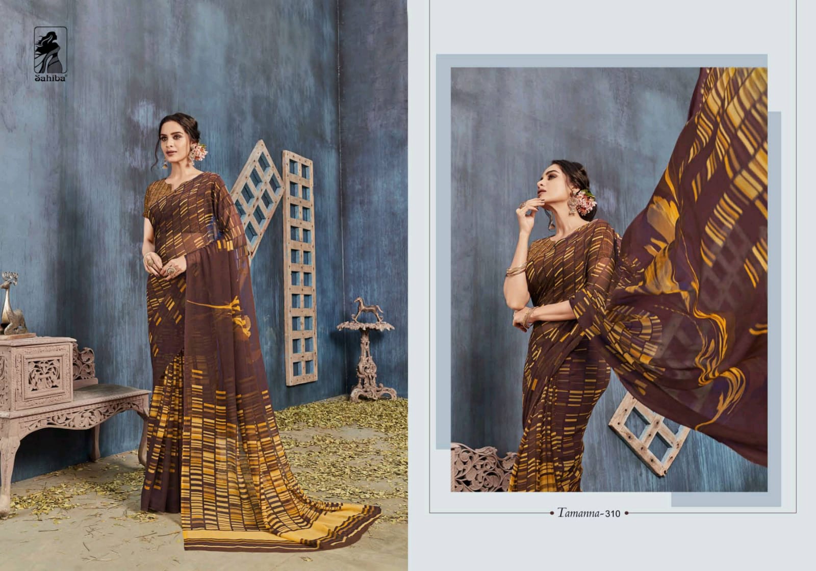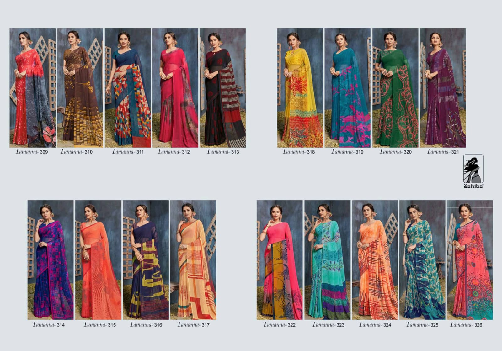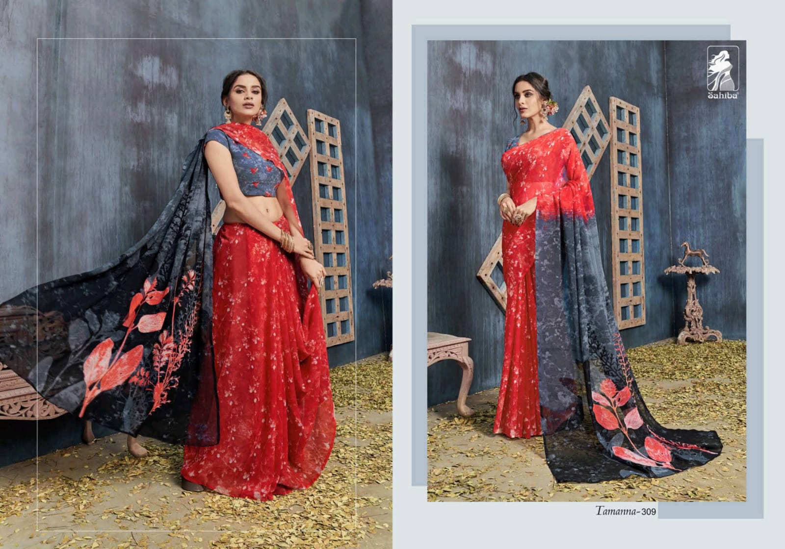 Sahiba Presenting Tamanna Vol 3 Colourful Printed Velvet Georgette Casual Wear Saree