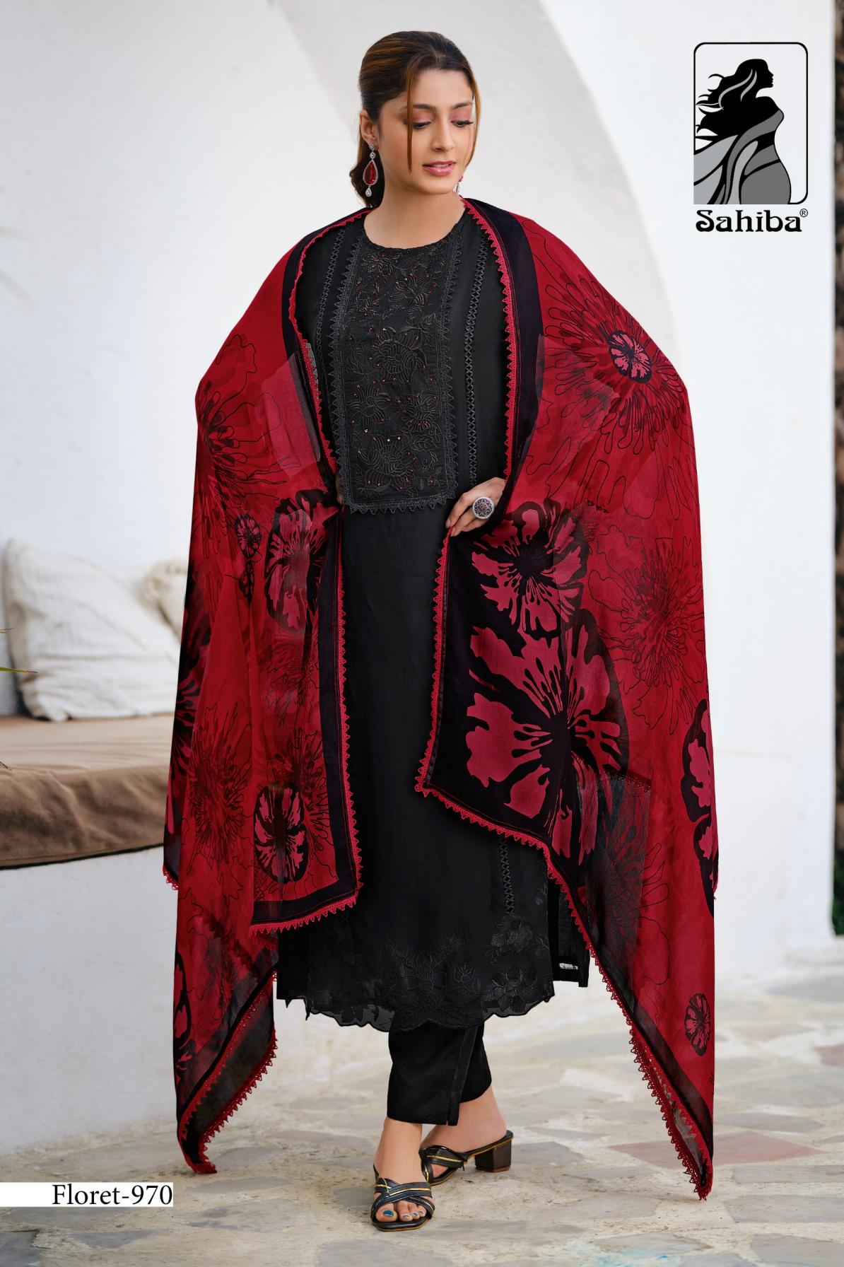 sahiba presents floret top bottom and dupatta salwar