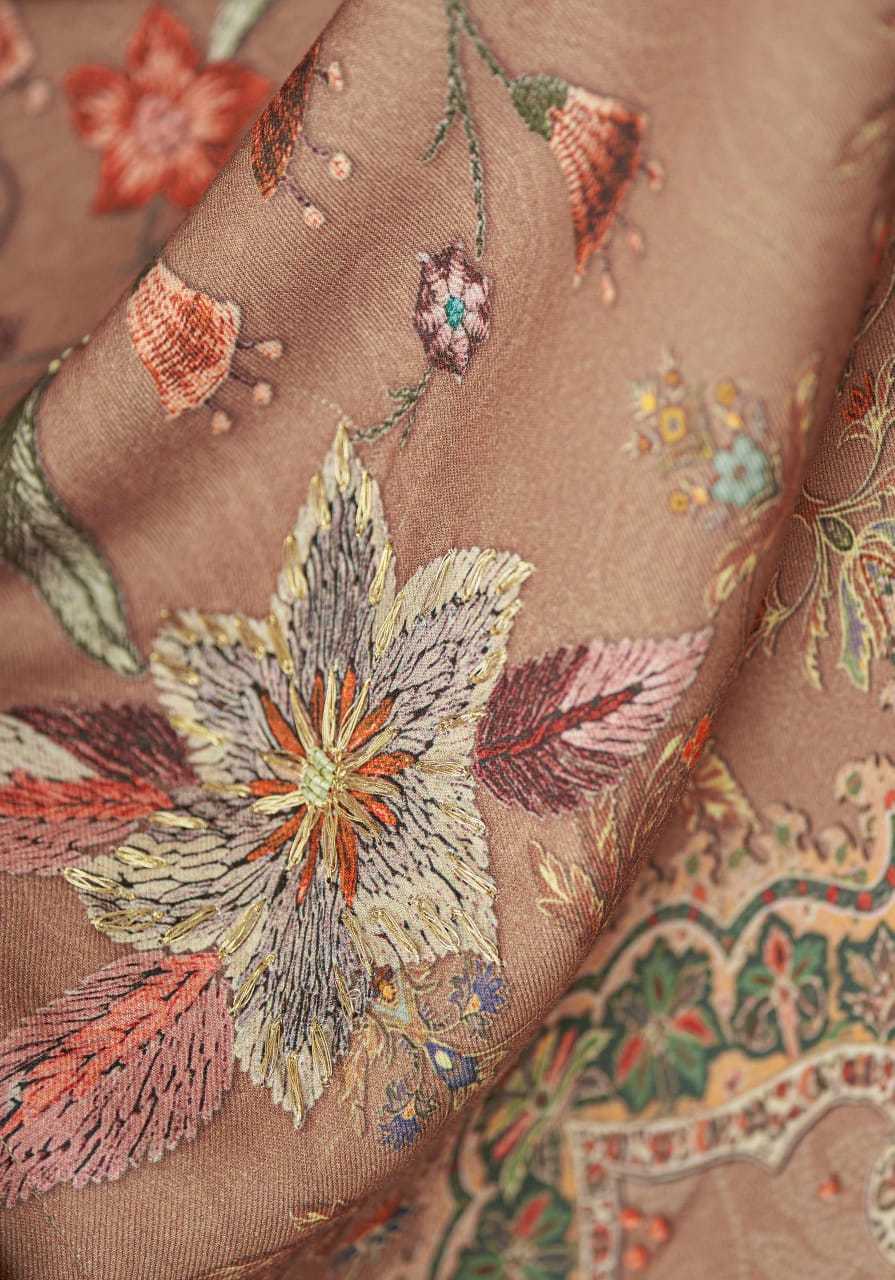 SAHIBA TOP - STAPLE TWILL DIGITAL PRINT WITH HAND WORK AND THREADLE BOTTOM - STAPLE TWILL DUPATTA - PASMINA STALL DIGITAL PRINTED DUPATTA RATE: |