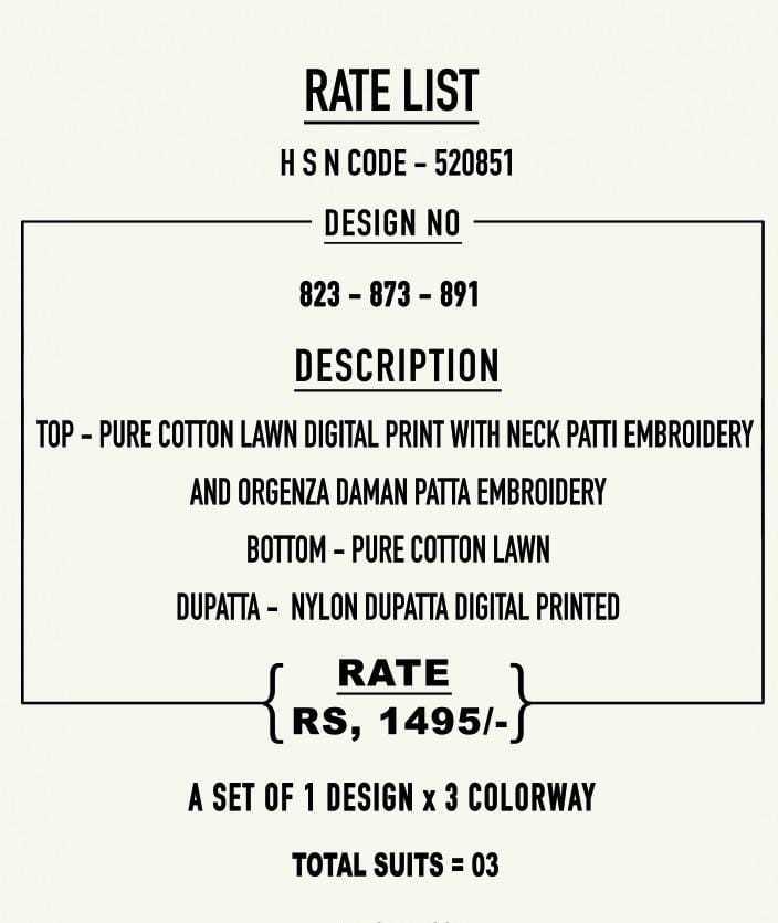 SAHIBA TOP - PURE COTTON LAWN DIGITAL PRINT WITH NECK PATTI EMBROIDERY BOTTOM - PURE COTTON LAWN DUPATTA - NYLON DUPATTA DIGITAL PRINTED RATE: GST EXTRA Set to set |