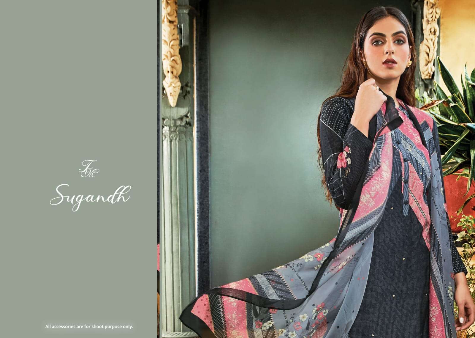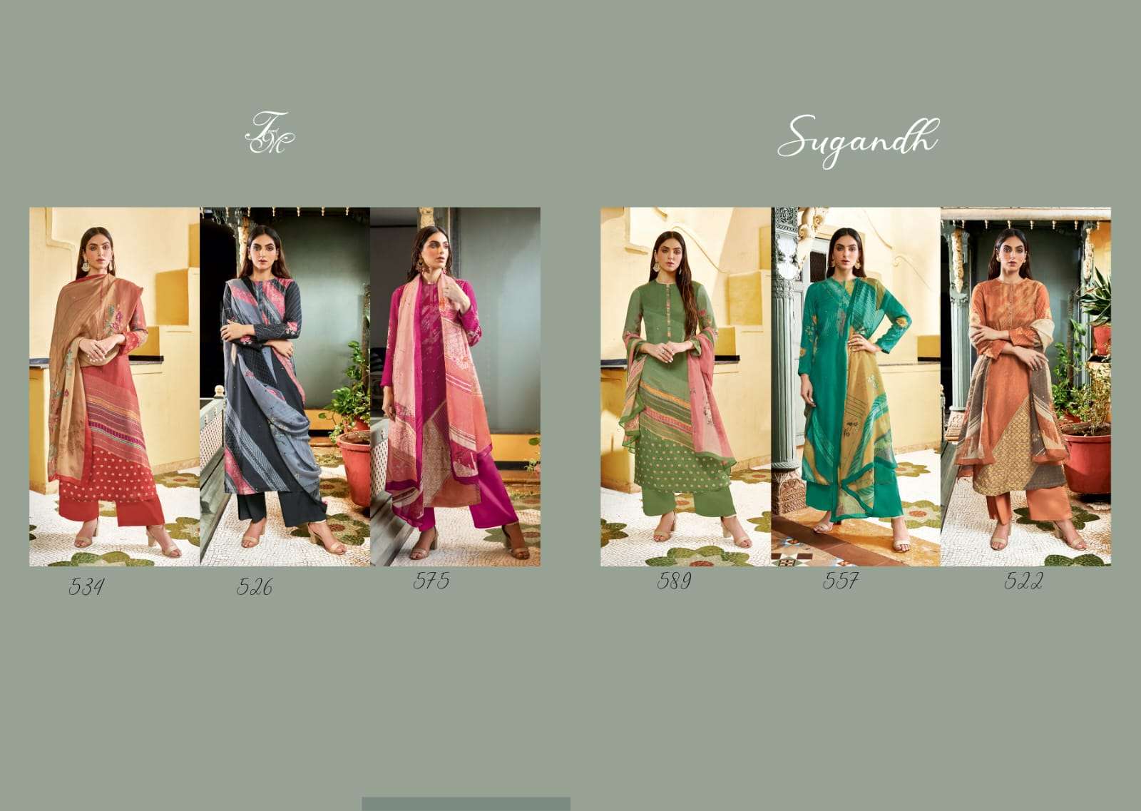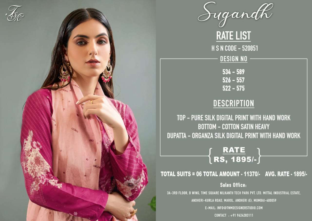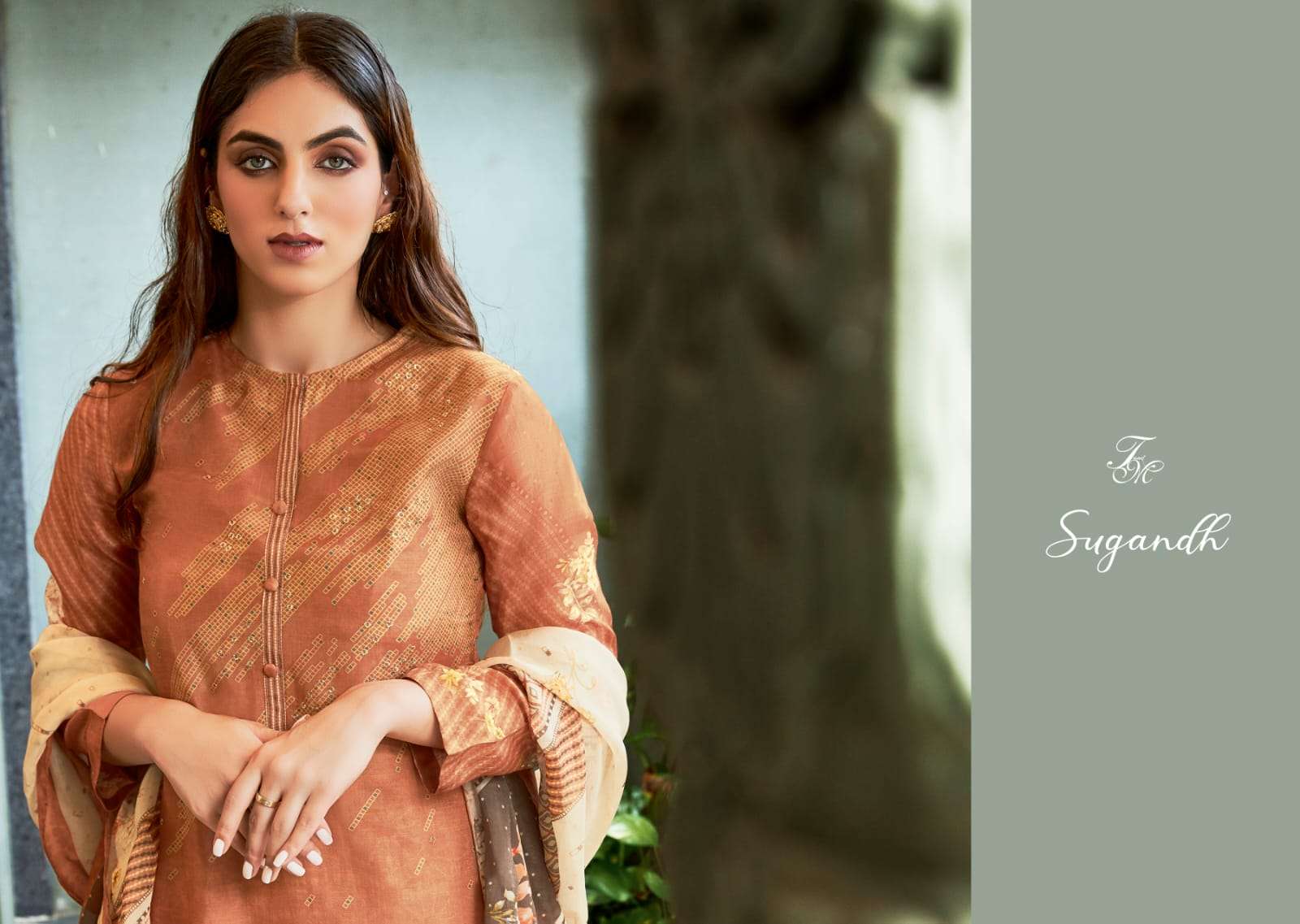 T&M presents SUGANDH TOP: Pure silk digital print with hand work BOTTOM: Cotton satin heavy DUPATTA: Organza silk digital print with handwork RATE: 1895/- DESIGNS: 06 TOTAL AMOUNT: 11370/- A SAHIBA LTD BRAND |