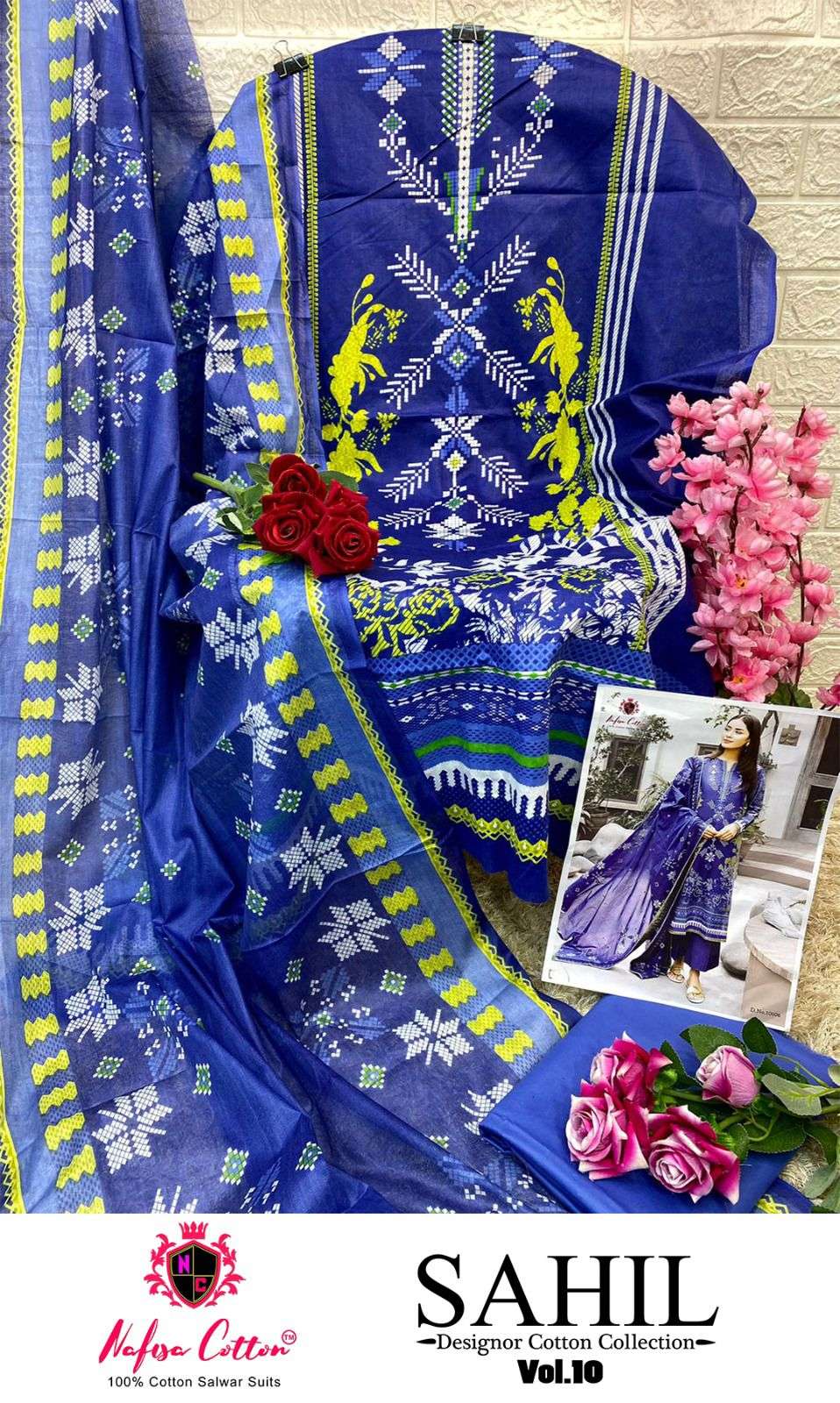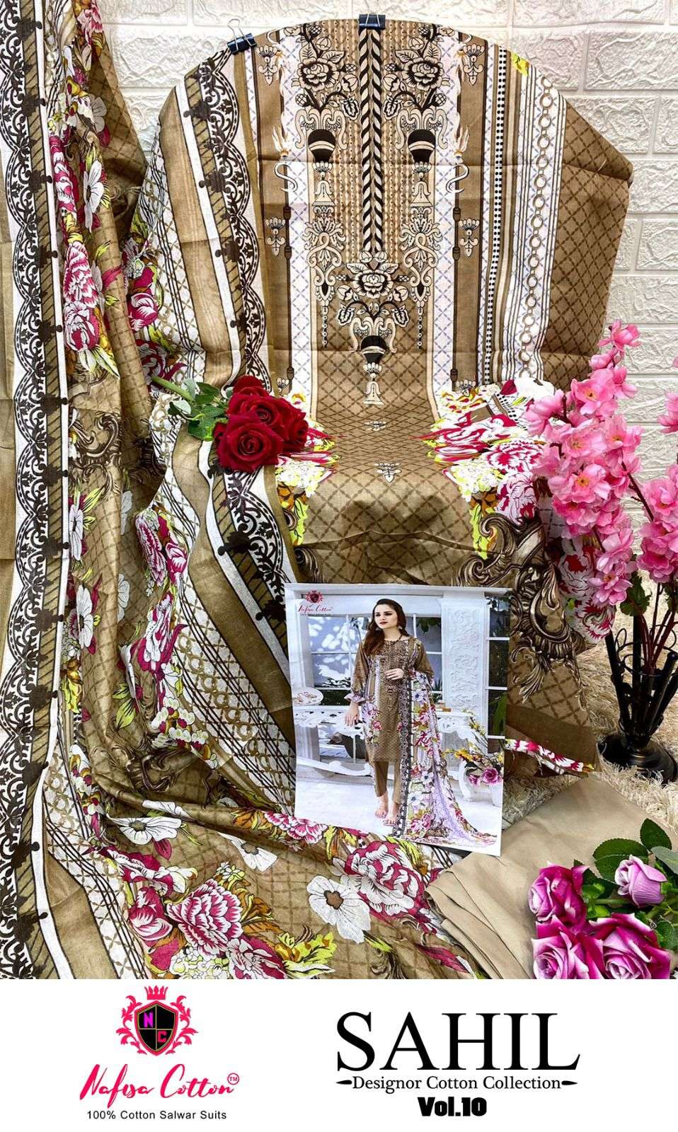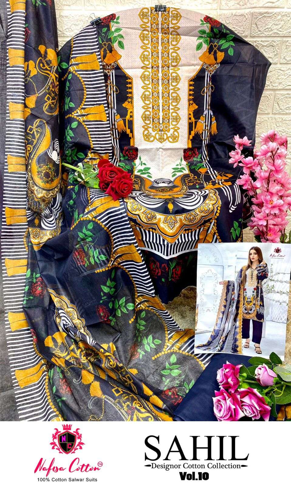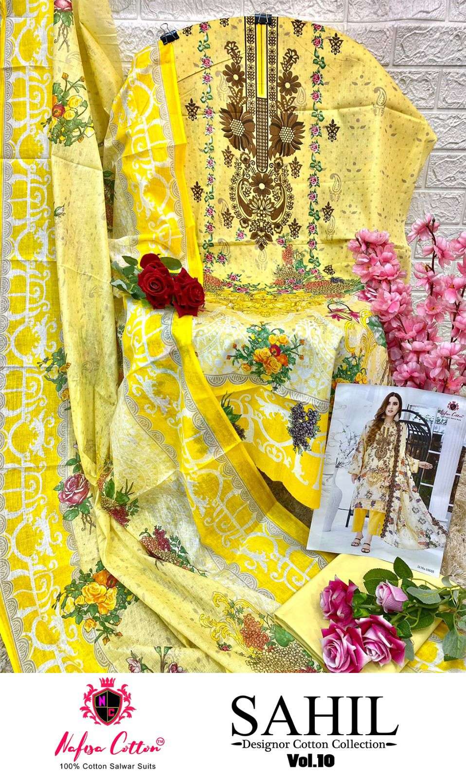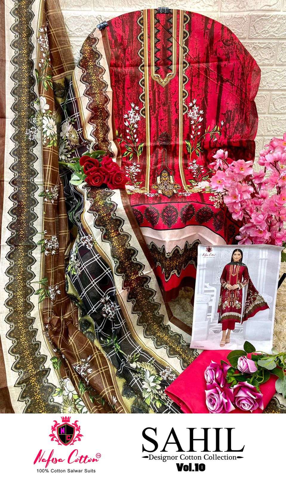 sahil vol 10 nafisa cotton unstitched printed pakistani design suit with mul mul dupatta