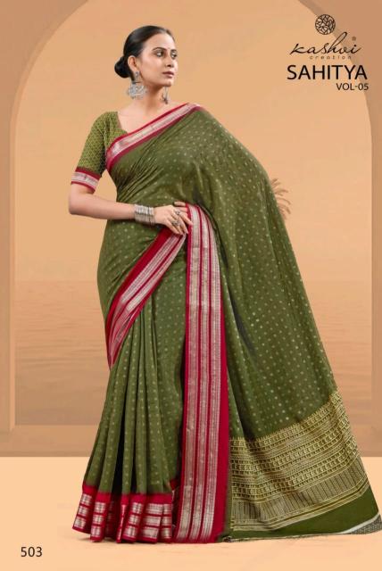sahitya vol 5 by kashvi creation popular design dull moss sarees