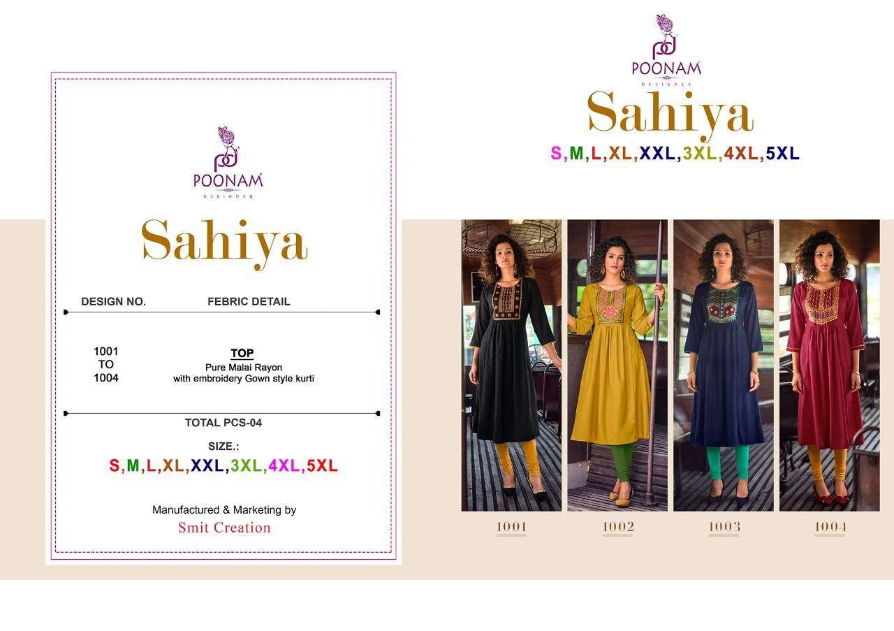 Poonam Designer® â (Smit creation)       â Sahiyaâ         Top (kurti) - Pure Malai Rayon     with embroidery.        (Gown style)        Size :- S,M,L,XL,XXL,3xl,4xl,5xl.             Dispach - 2/09/21          (Thursday) 399/- per pcs Set to set Delivery 2-3 days |