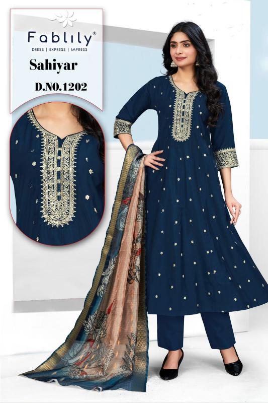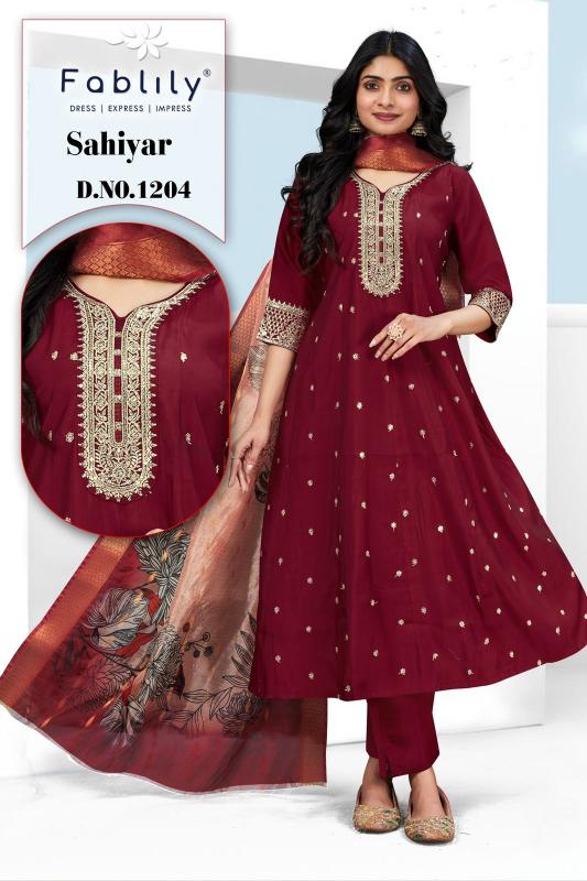sahiyar by fablily silk fullstitch embroidered gorgeous look combo 3pcs dress