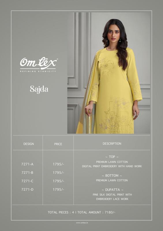 Om Tex Presents Latest Collection Launched on 12-04-2025. Presenting Beautiful collection of 4 PCS with Unstitched .
