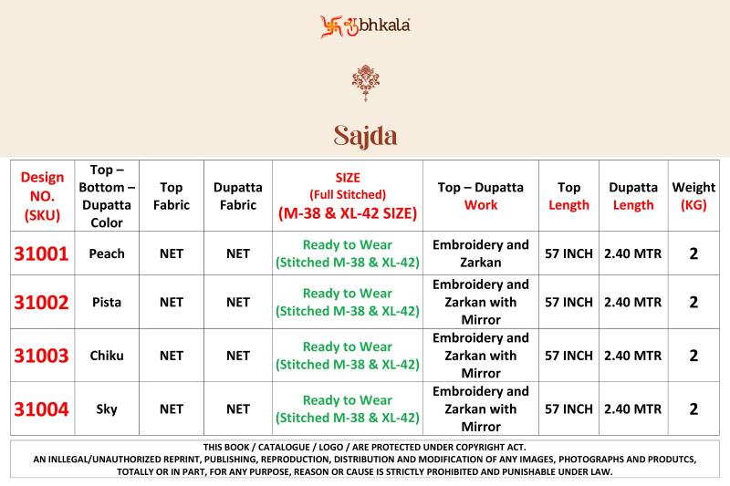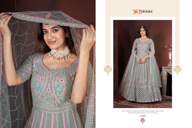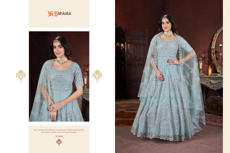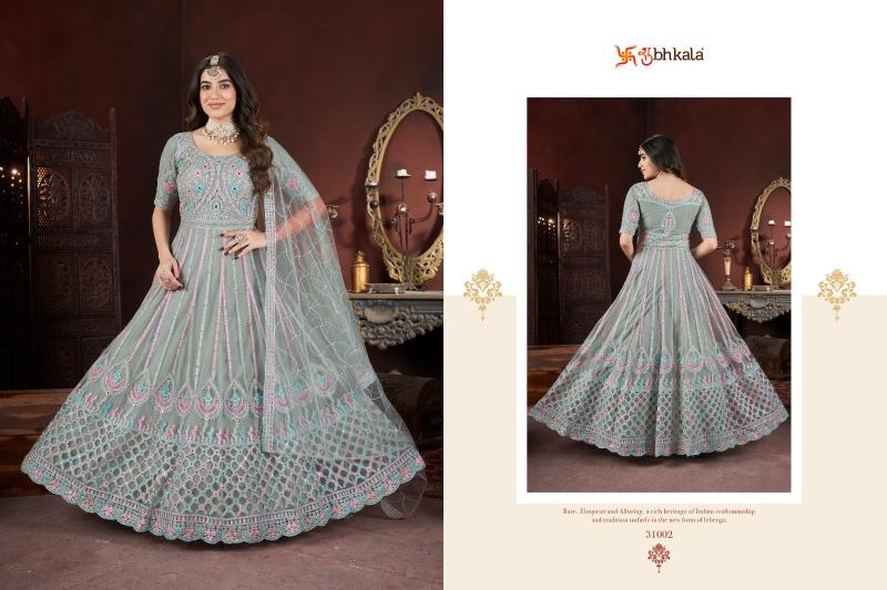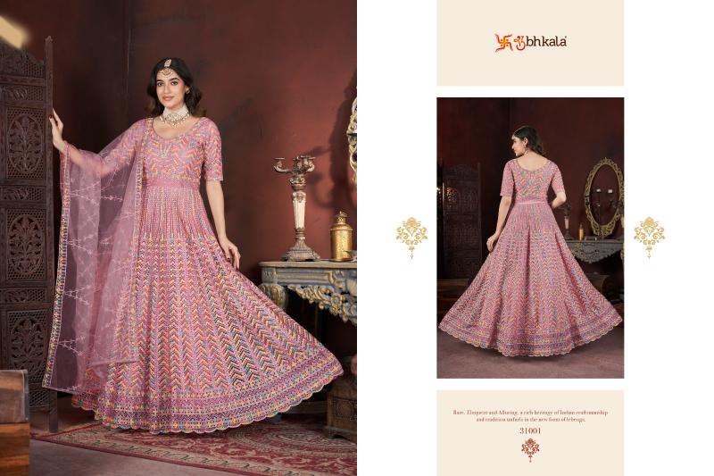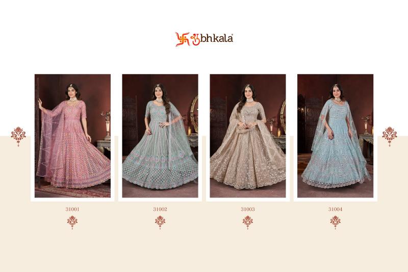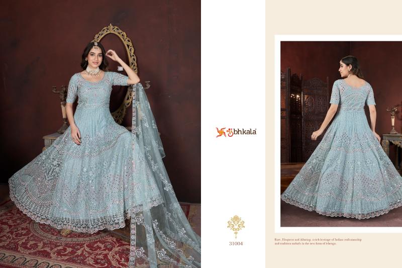 💃 SHUBHKALA 👗 New Exclusive Long Floor Length Embroidered Gown Collection 👗 💰 SAJDA - RATE LIST 💰 31001: 2800/- Type: Ready to Wear (Stitched M-38 & XL-42) 📏 |