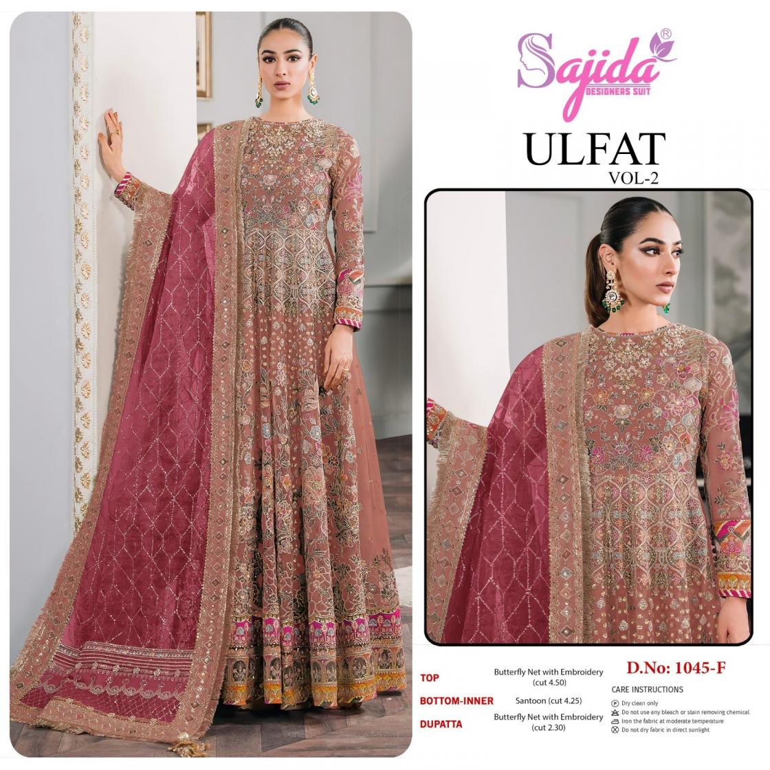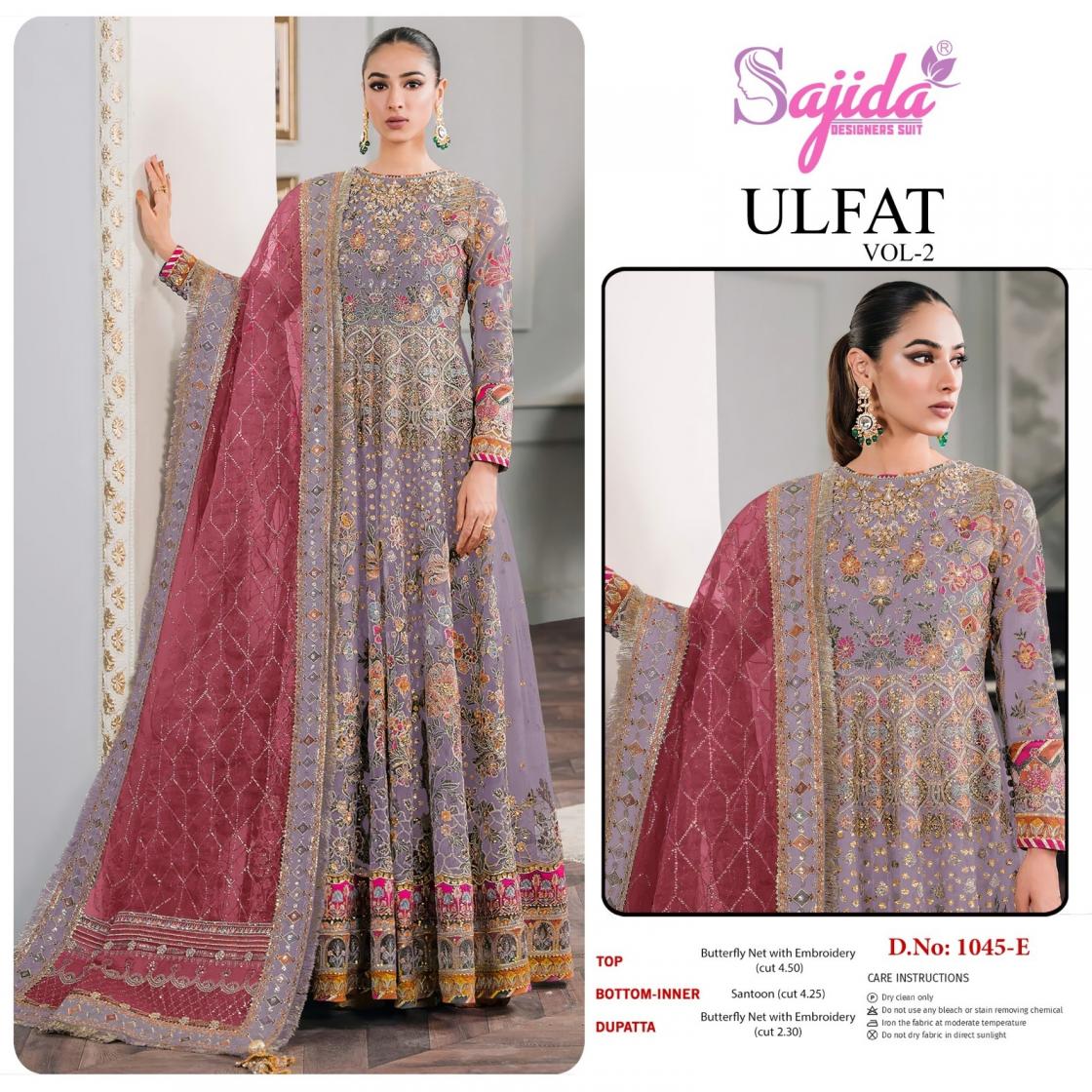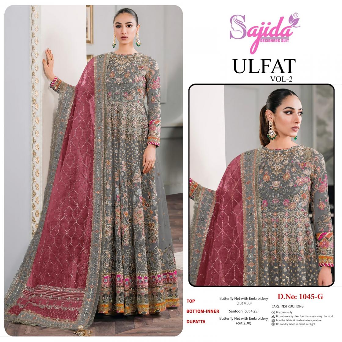 sajida designer ulfat vol 2 butterfly net 1045 traditional pakistani 3pcs dress