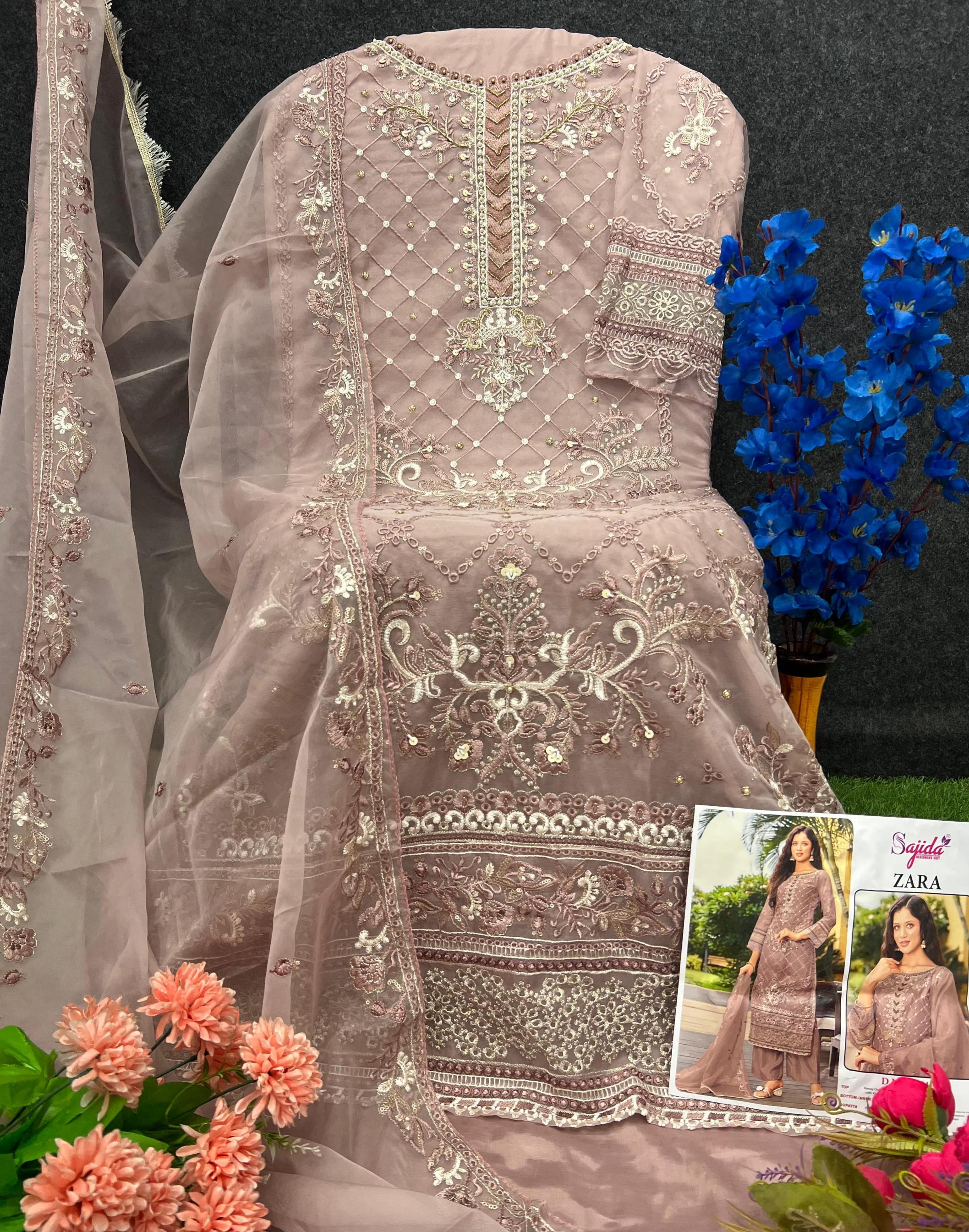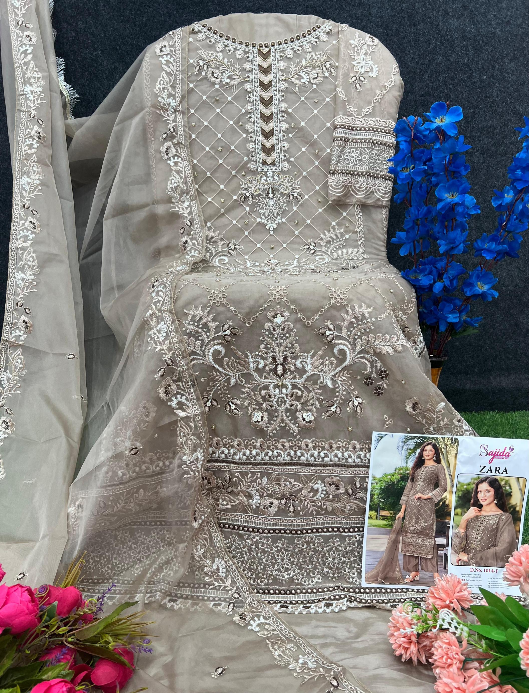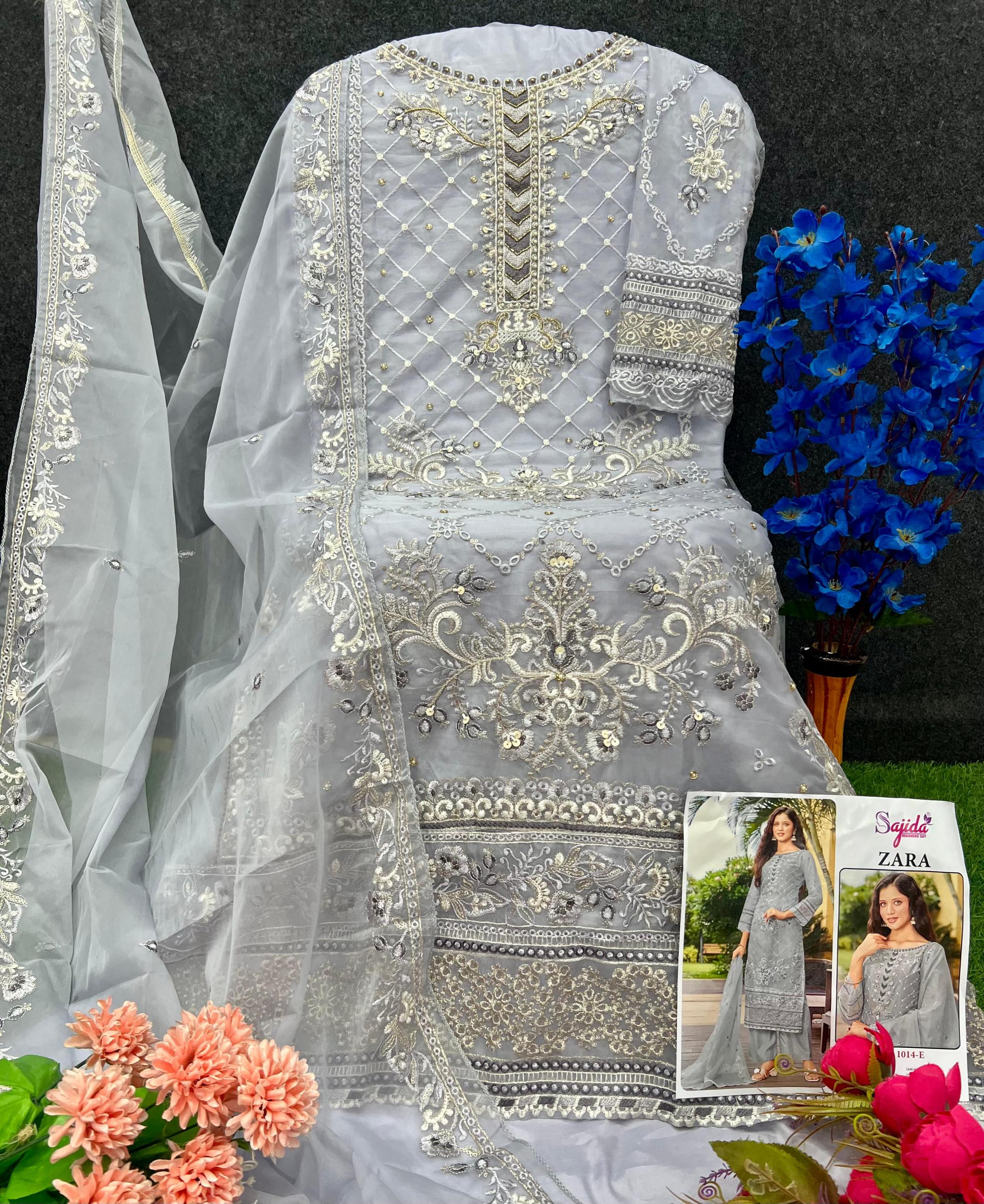 sajida designer zara 1014 efgh organza pakistani unstitch suits