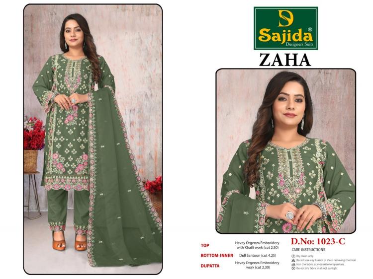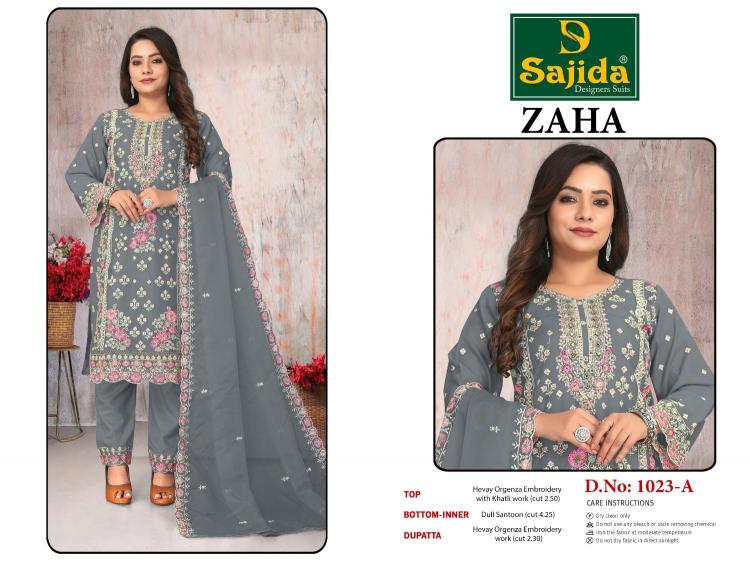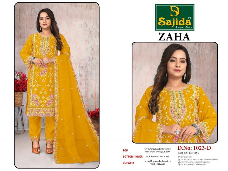 🙏🏻Dear SAJIDA DESIGNER SUIT DNO--1021 A-B-C-D HIT DESIGN 👗 Top : ORANGZA WITH HEAVY EMBROIDERY WITH KHATLI WORK 👖Bottom :DULL SANTOON 🏳️🌈Dupatta : ORAGNZA WITH HEAVY EMBROIDERED Rate- 1250/- NOTE - SET TO SET ONLY 🚚Dispatch READY 🚚 |