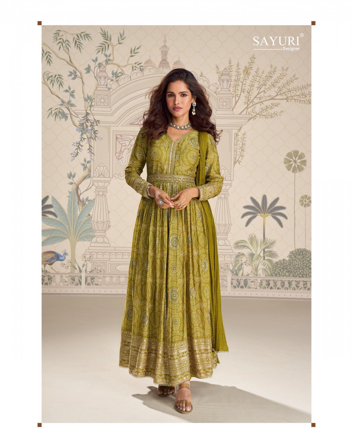 sakshi by sayuri designer fully stitch party wear chinon silk gown sets