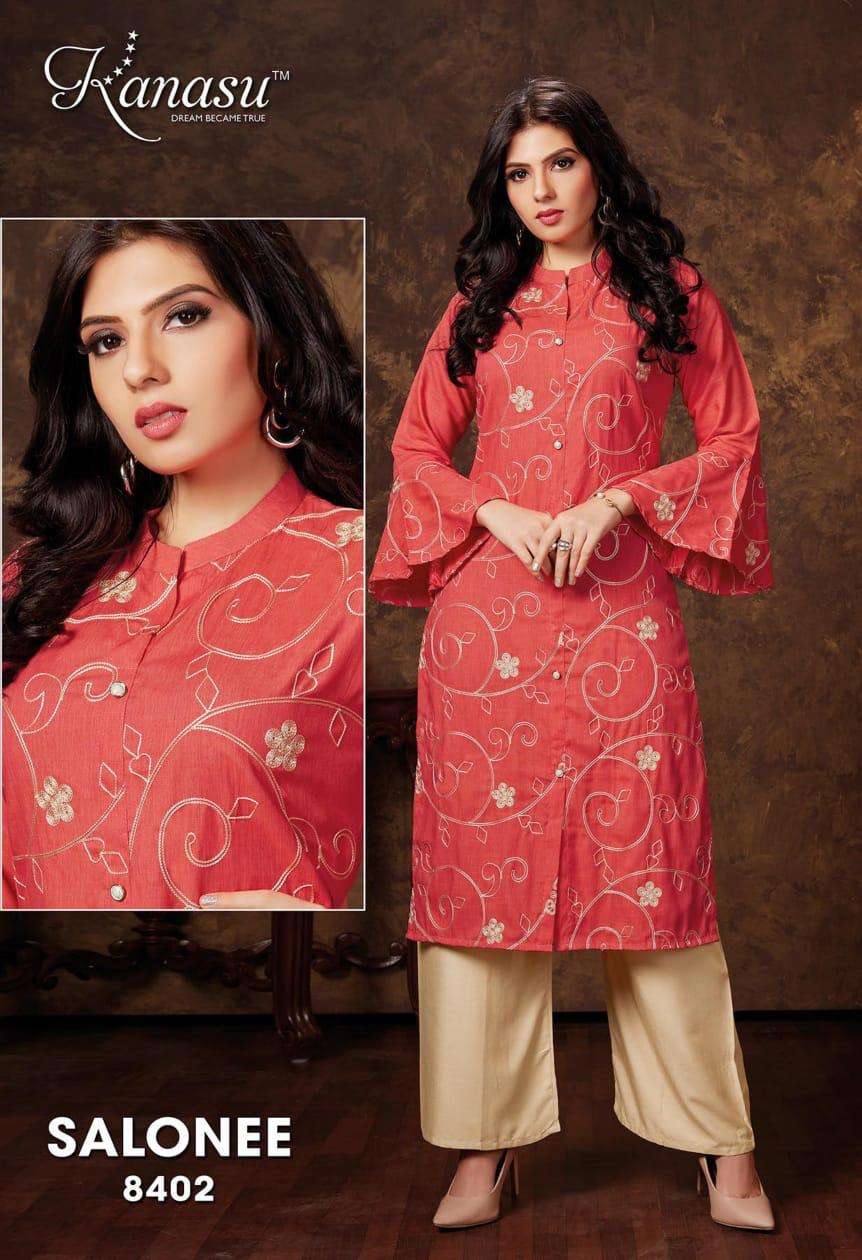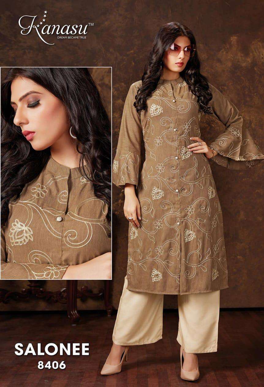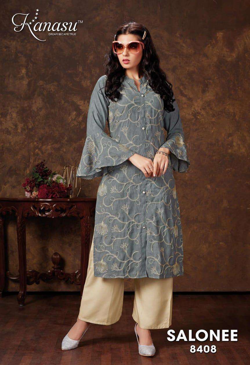 Dear Customers, Greeting from KANASU KURTI We are introducing KANASU 'S new catalog _📕Catalogue:- * SALONEE* 👗CLOTH TOP:- 14KG HEAVY REYON LIQVID CLOTH BOTTOM:- *HEAVY REYON * CONCEPT :- TOP COMPUTER AIRY BELL SLEEVES WORK WITH PALAZZO PATTERN LENGTH TOP : 40+