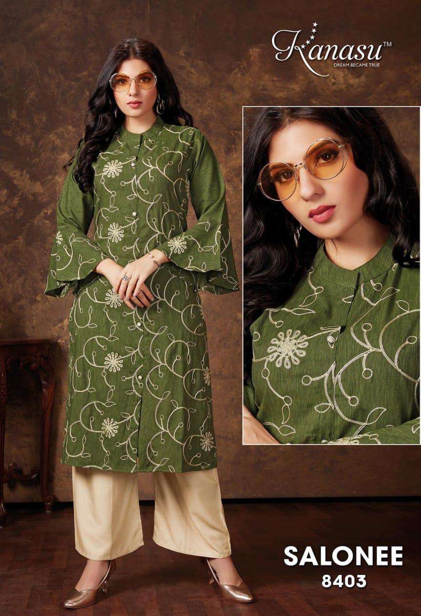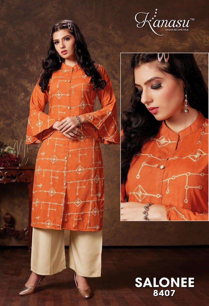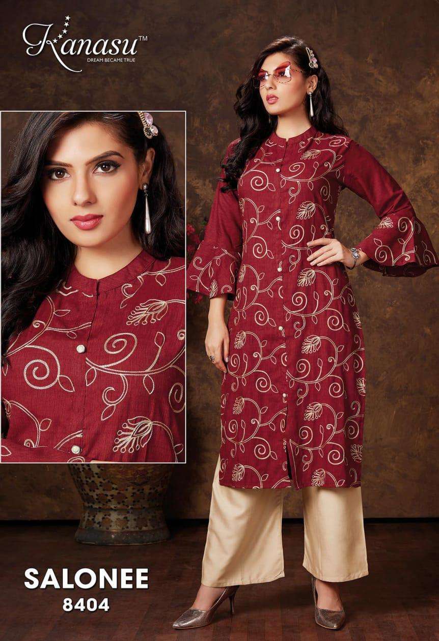 Dear Customers, Greeting from KANASU KURTI We are introducing KANASU 'S new catalog _📕Catalogue:- * SALONEE* 👗CLOTH TOP:- 14KG HEAVY REYON LIQVID CLOTH BOTTOM:- *HEAVY REYON * CONCEPT :- TOP COMPUTER AIRY BELL SLEEVES WORK WITH PALAZZO PATTERN LENGTH TOP : 40+