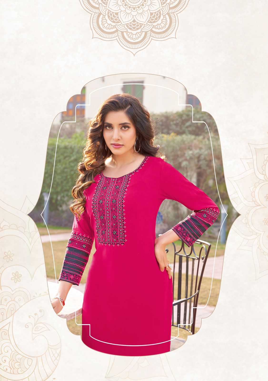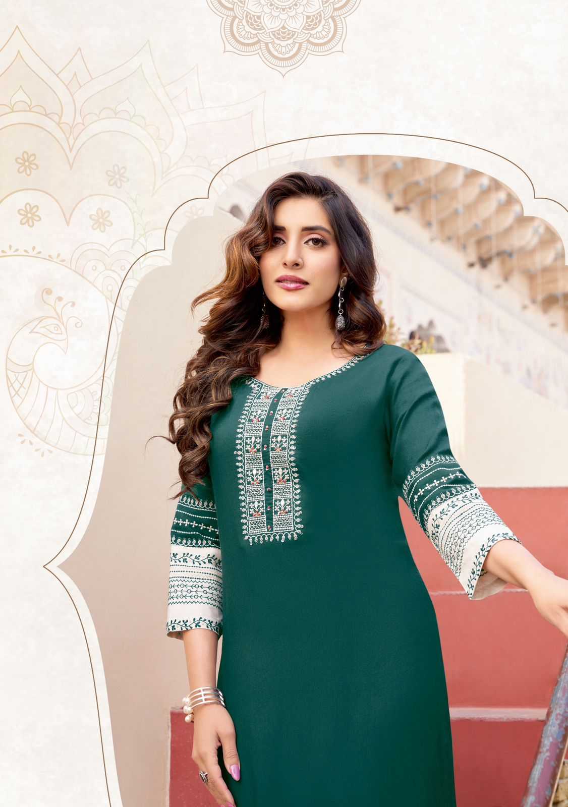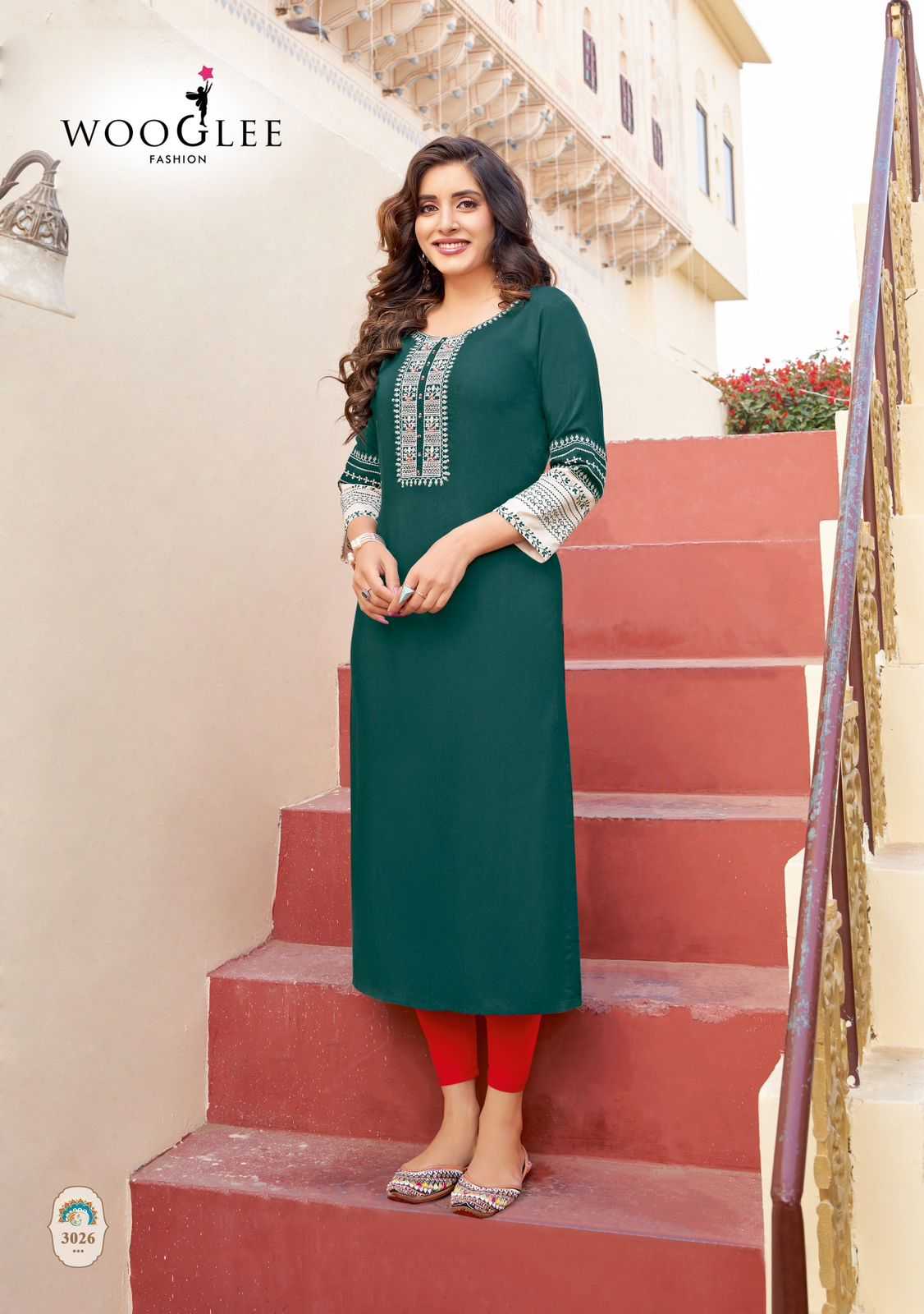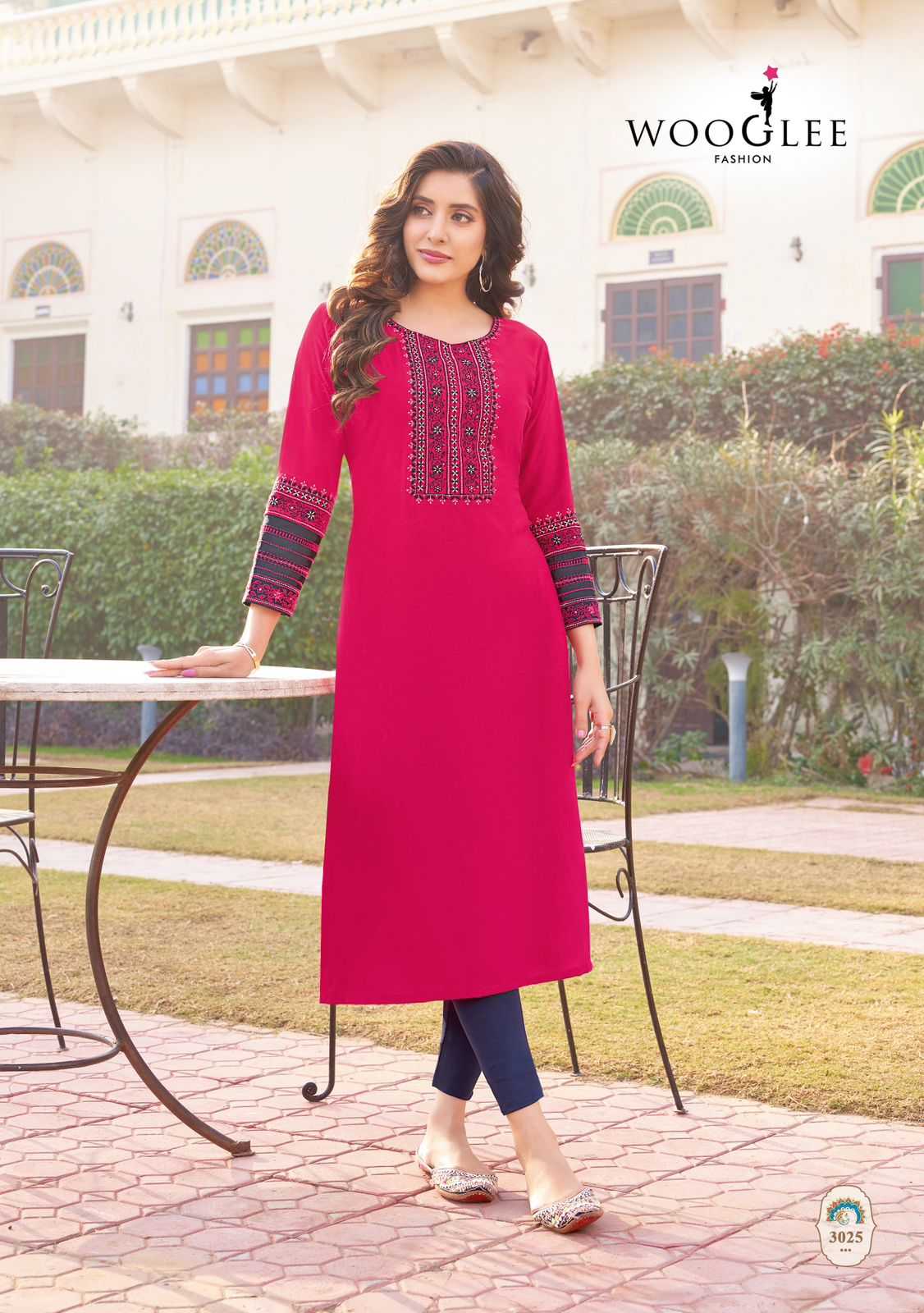 salonee vol 6 by wooglee fully stitch rayon thread & hand work long kurti