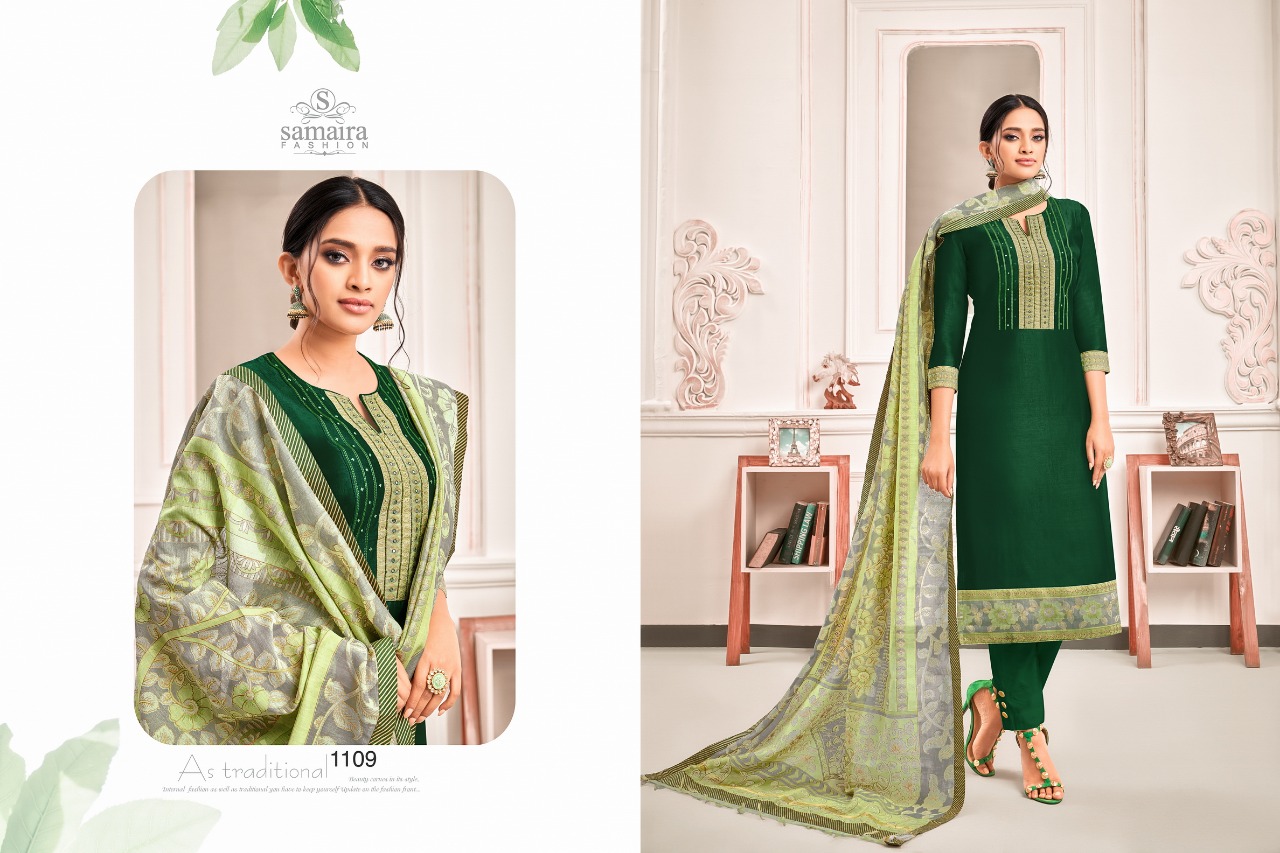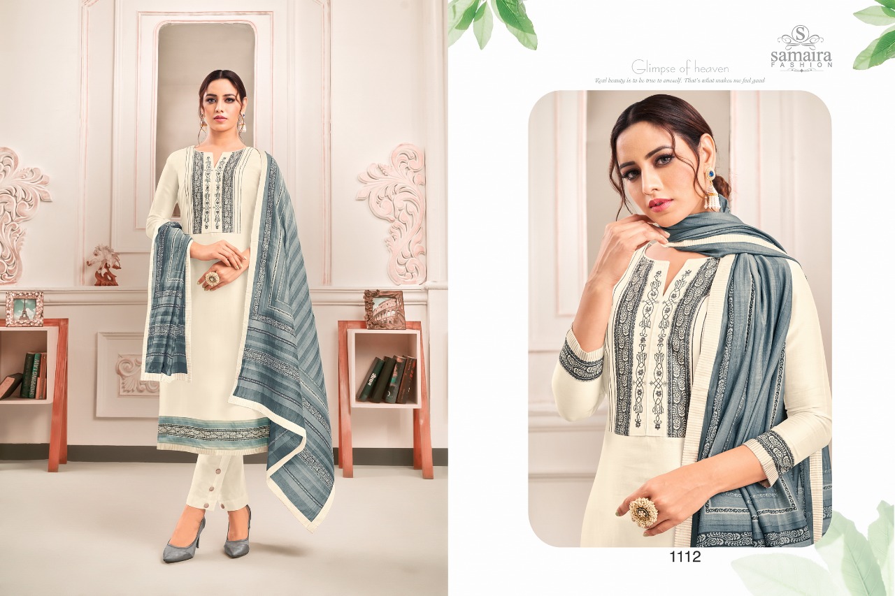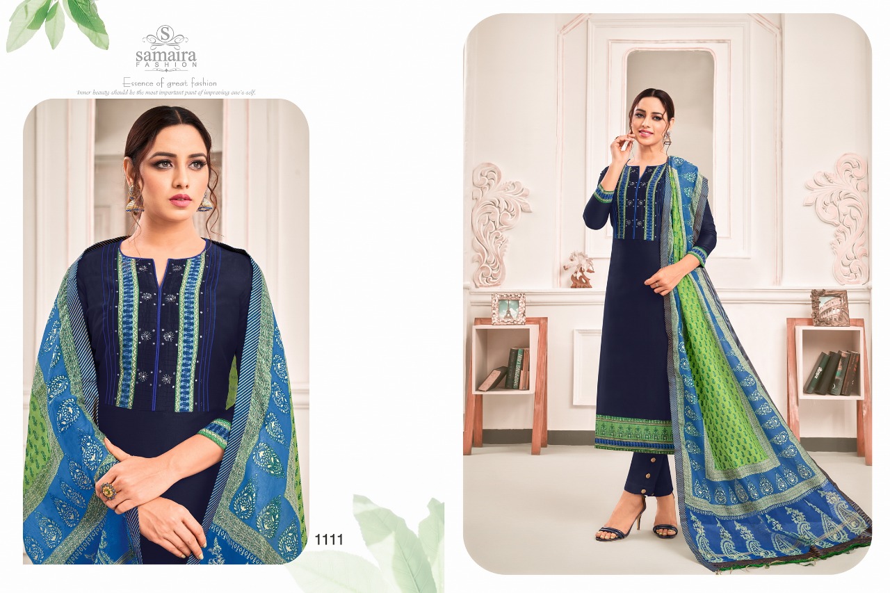 Samaira Fashion Presents Latest Collection Launched on 22-01-2020. Presenting Beautiful collection of 7 PCS with Unstitched .