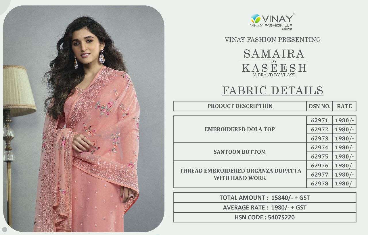 samaira by kaseesh vinay designer dola embroidered salwar kameez whoelsaler