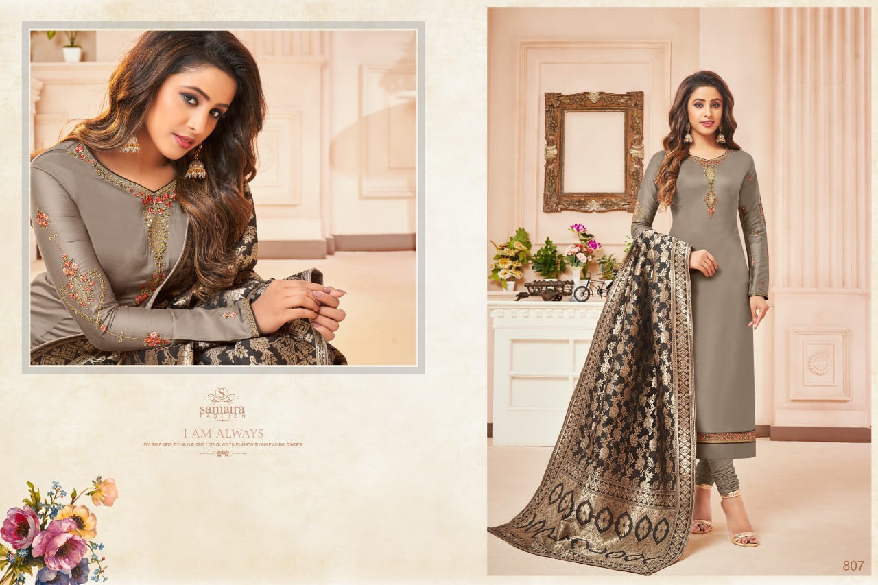 Samaira Fashion Presents Latest Collection Launched on 03-12-2019. Presenting Beautiful collection of 9 PCS with Unstitched .