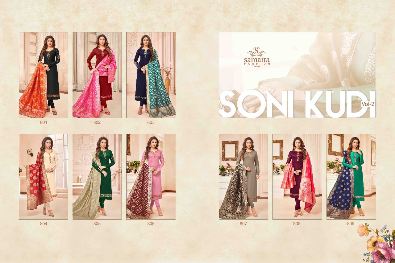 "SAMAIRA"_ BRAND CREATED BY YOU..... âÂÂ*FANTASTIC "*collection of.......9 designs....... ..." * SONI KUDI Vol.02 "... Fabric Details:- Top : - PURE COTTON JAM SILK WITH EMBRODARY WORK ... BOTTOM :- Cotton.... Dup. : - PURE JAQARD banarsi Duppta.... price-: 1050/â + G.s.t* |