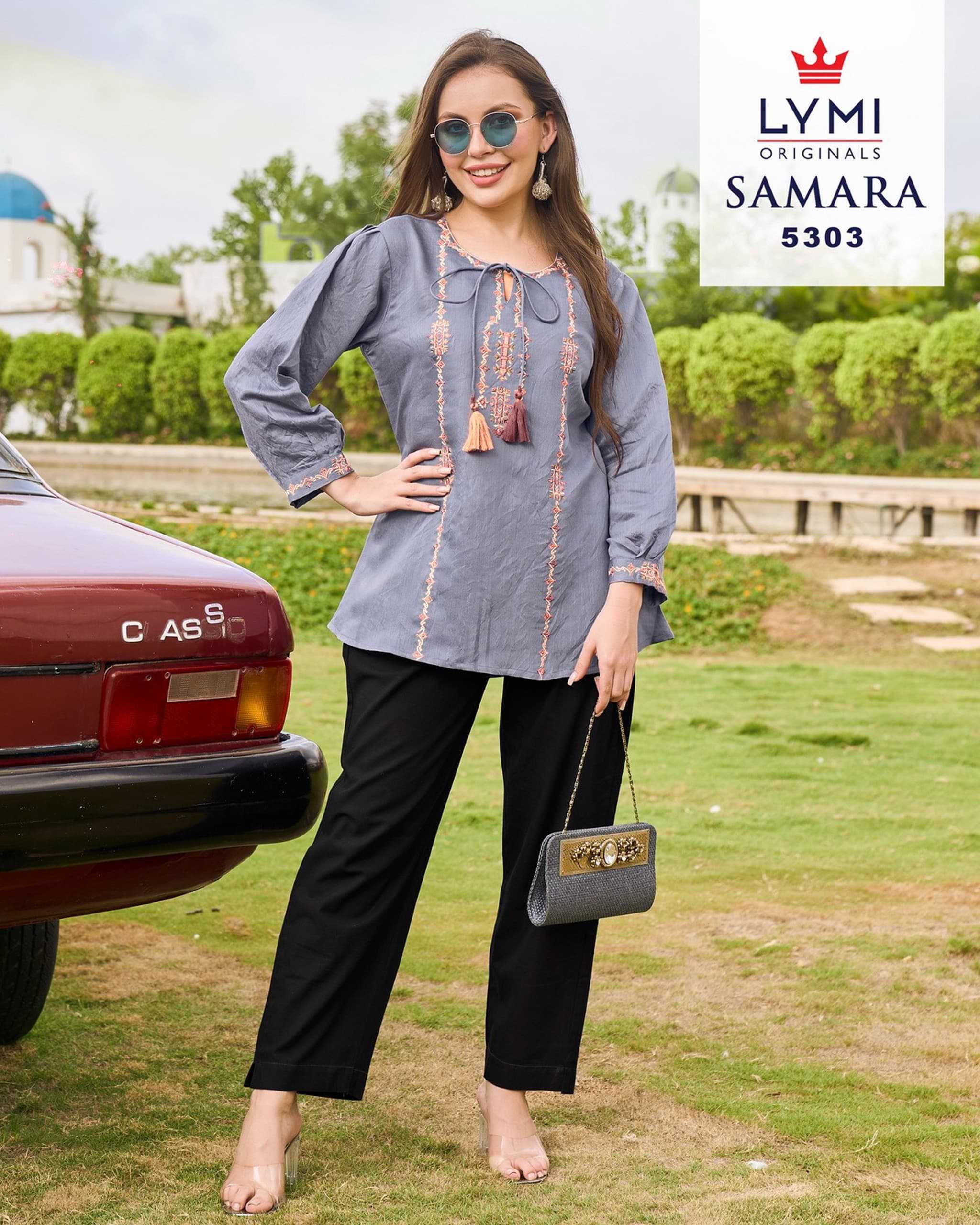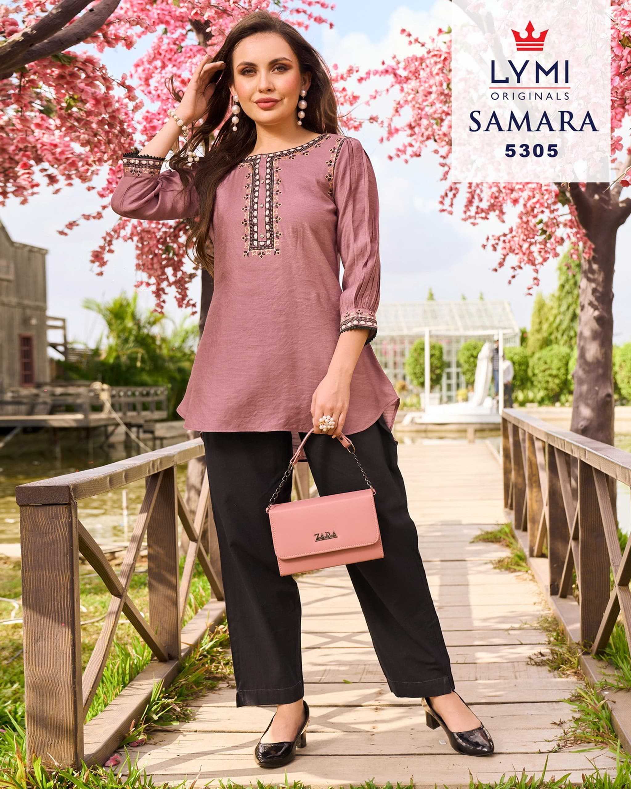 samara by lymi viscose embroidery work stylish look fullstitch short kurti