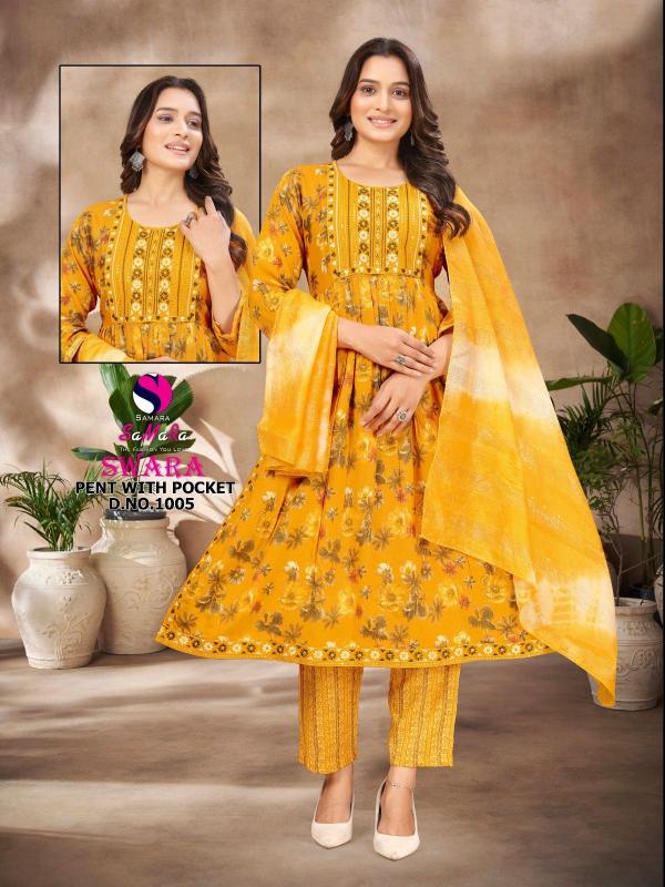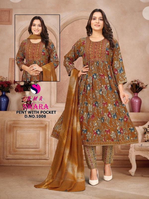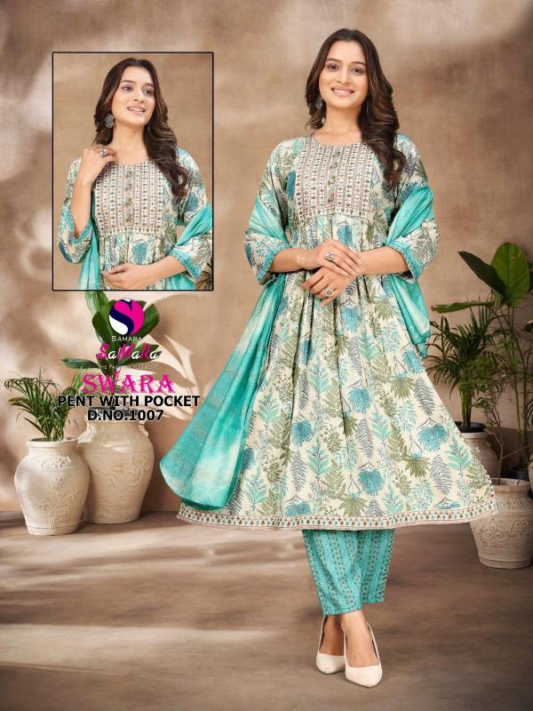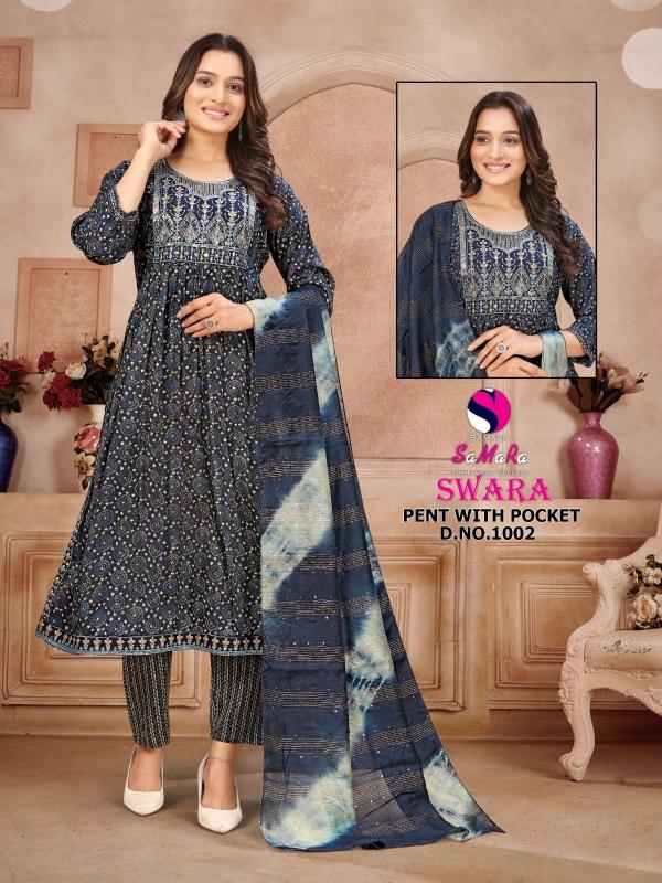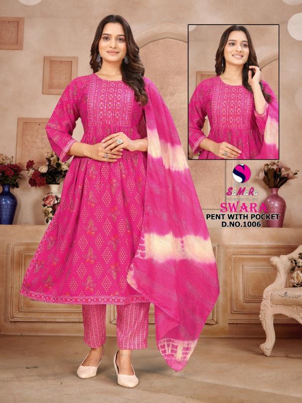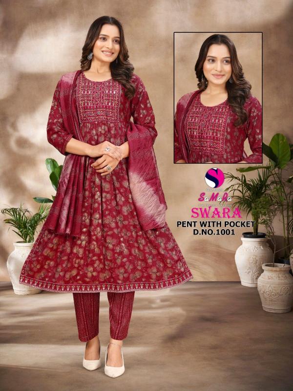 samara launch swara vol 1readymade rayon capsule nyra cut 3pcs dress