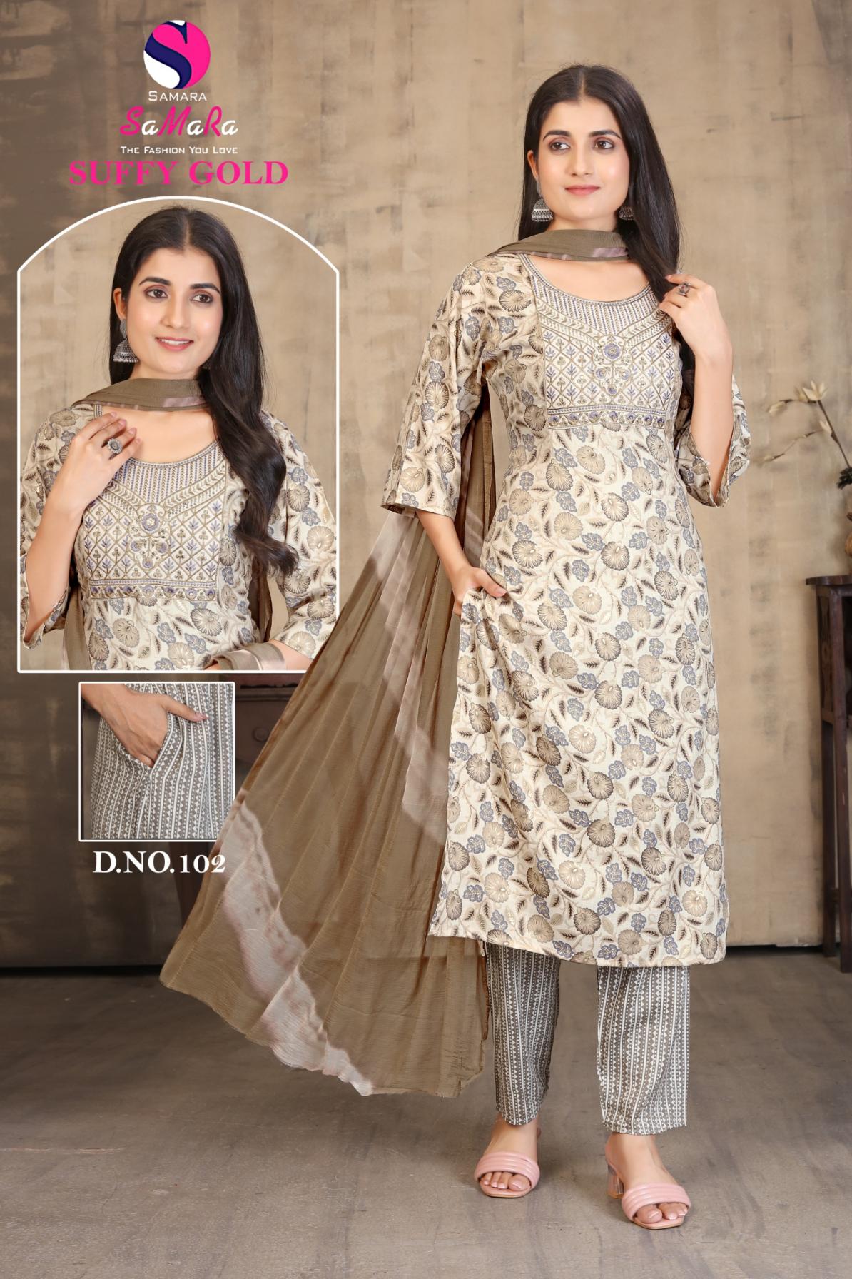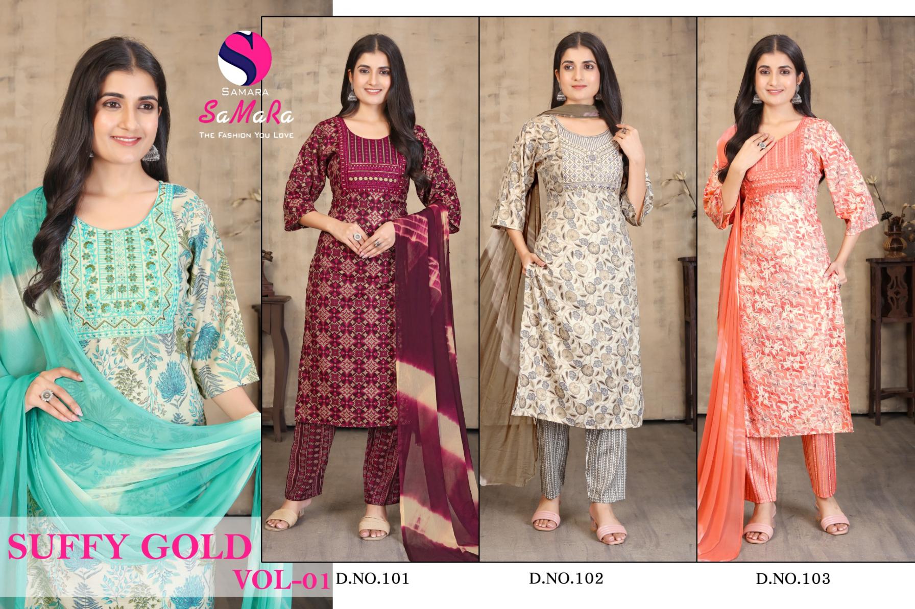 samara suffy gold vol 1 capsule print readymade classic look 3pcs dress