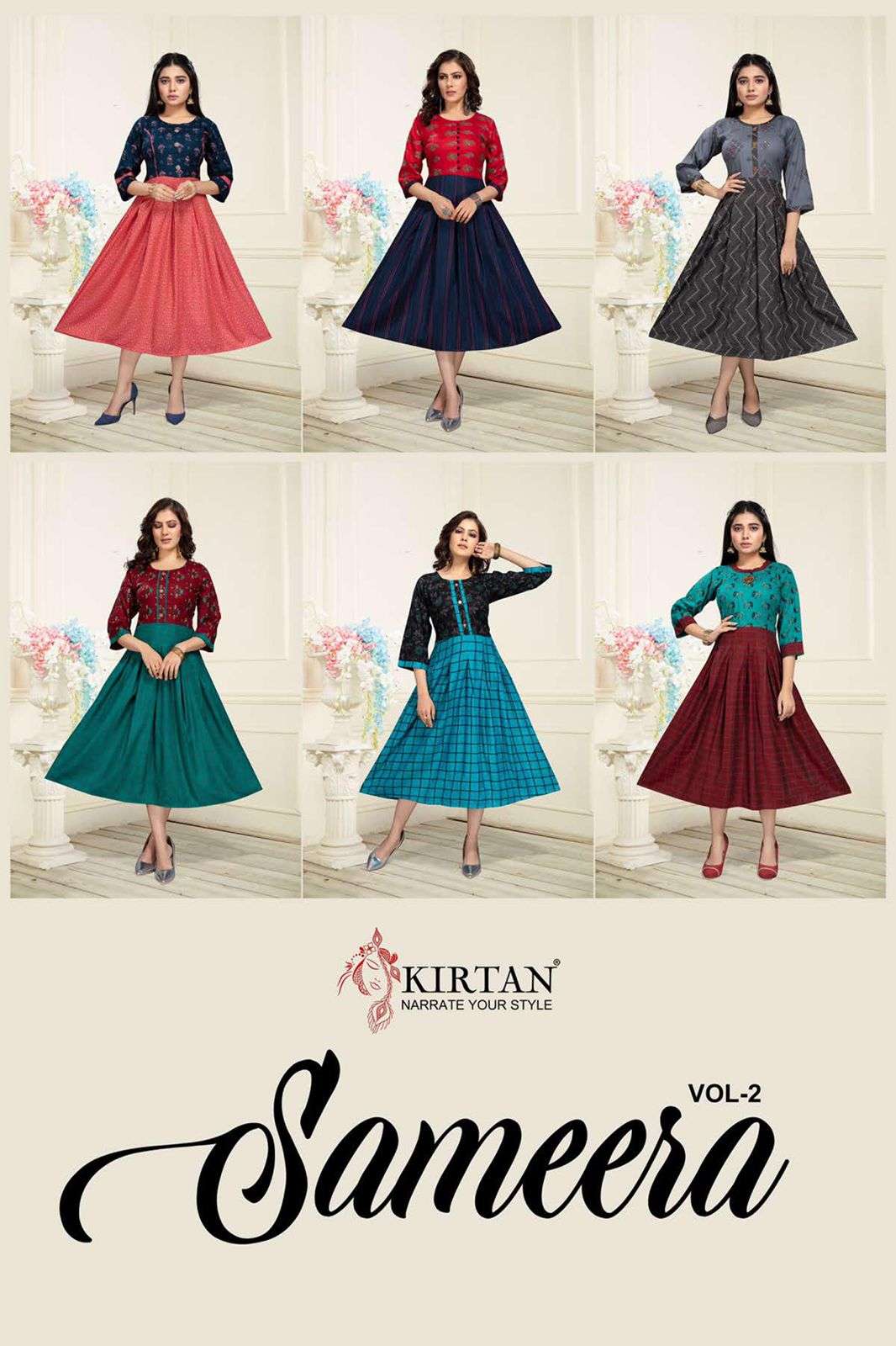 SAMEERA VOL.2 BY KIRTAN HEAVY RAYON KURTI CATALOG WHOLESALER BEST RATE