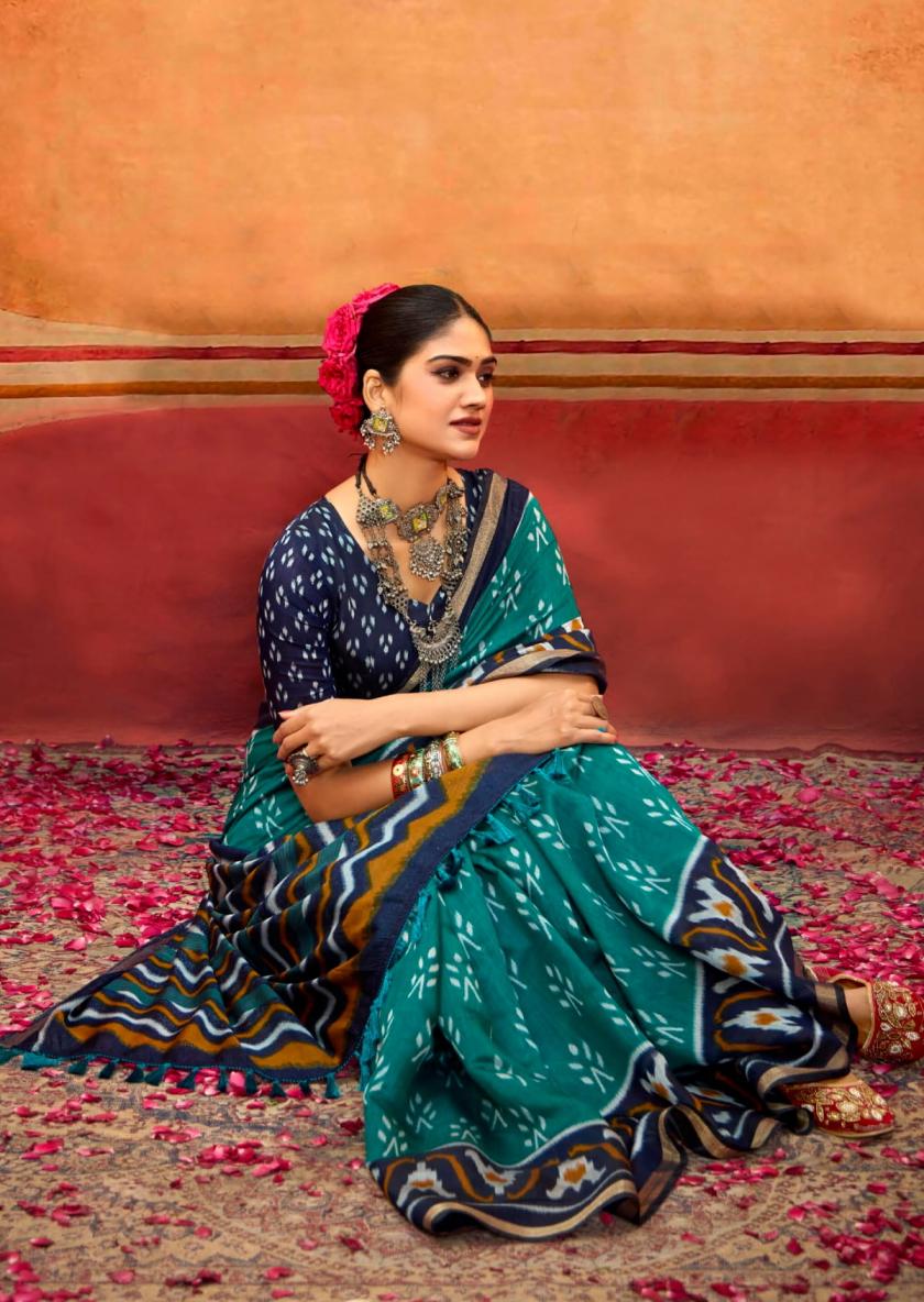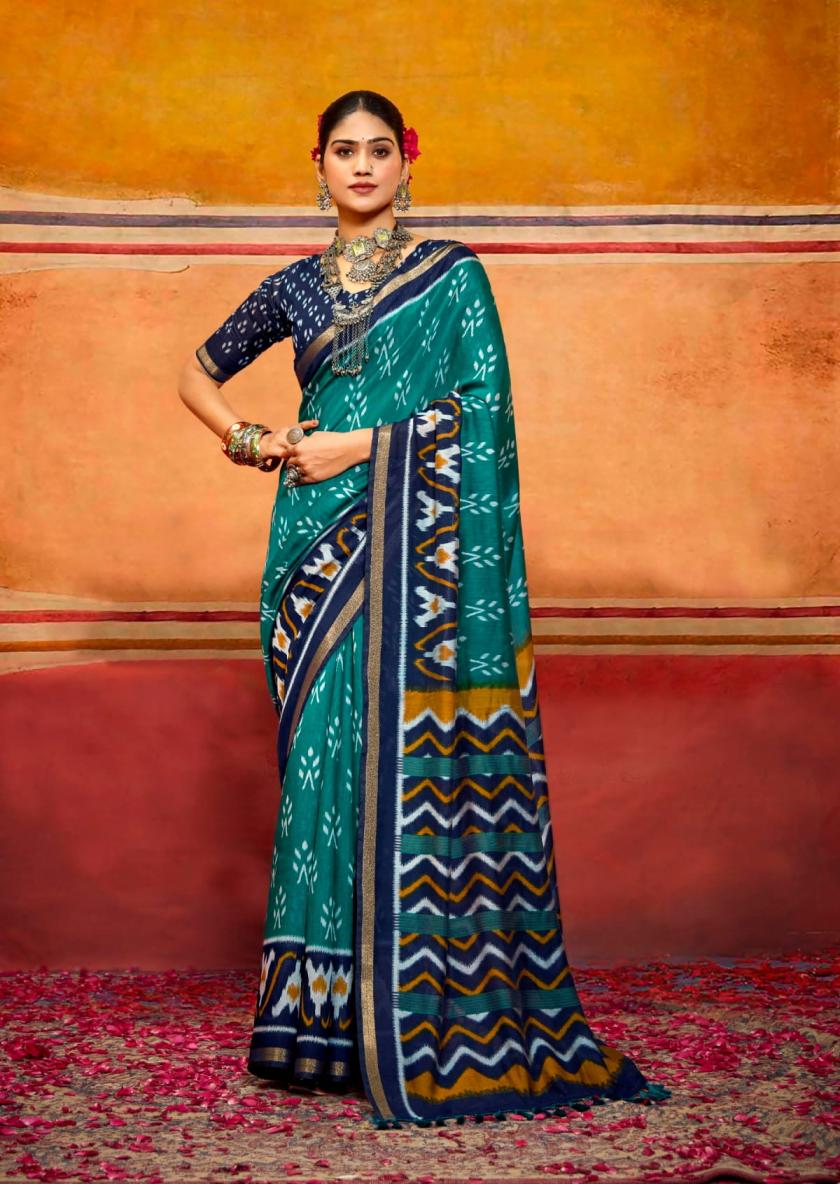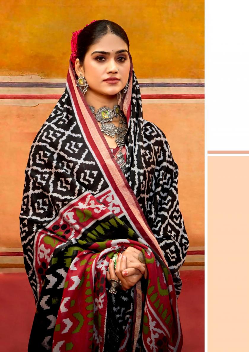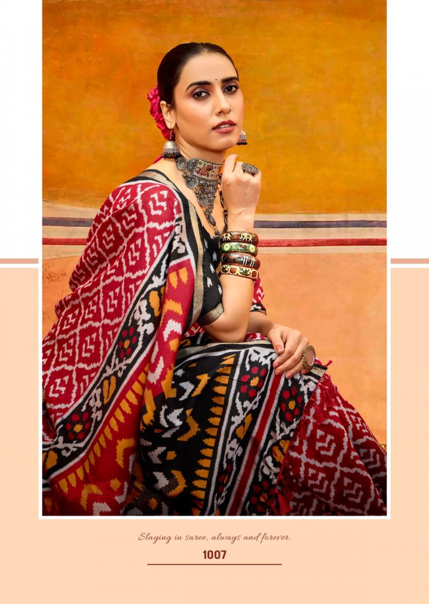 SANSKAR TEX PRINTS PVT LTD CATLOUGE= SAMRIDDHI Fabric-Pure viscose print jari border with latkan Qty- 8 Designs RATE - 760/- |