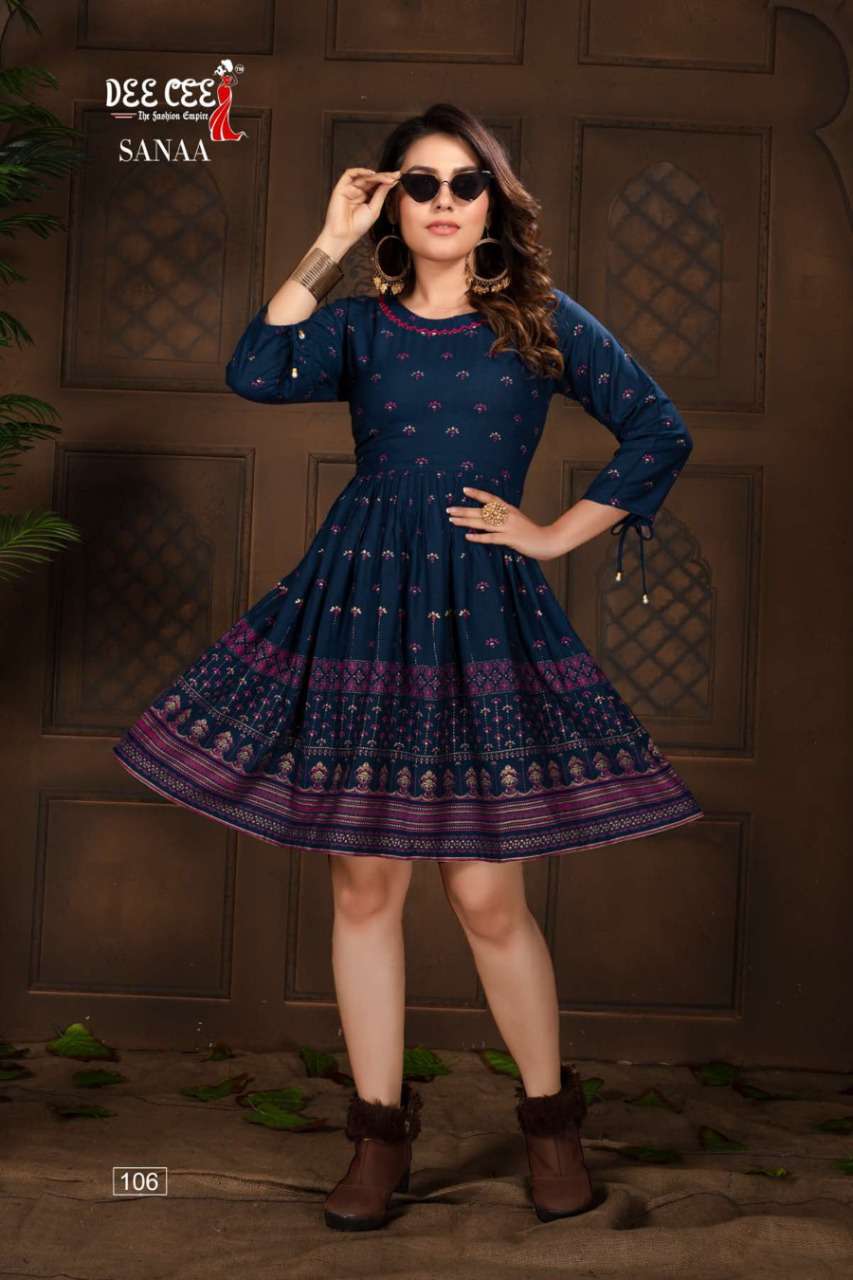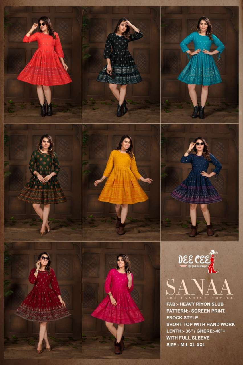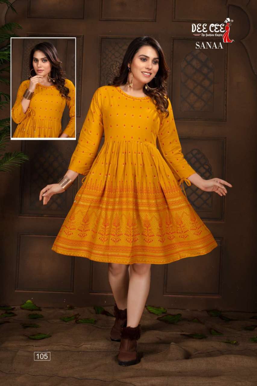 sanaa by dee cee rayon slub fancy short frock style kurti