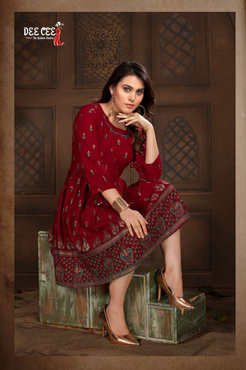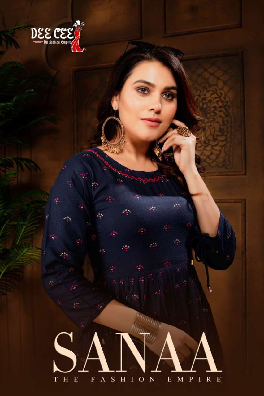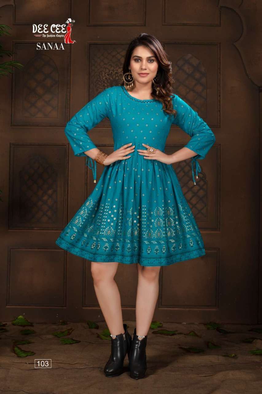 sanaa by dee cee rayon slub fancy short frock style kurti