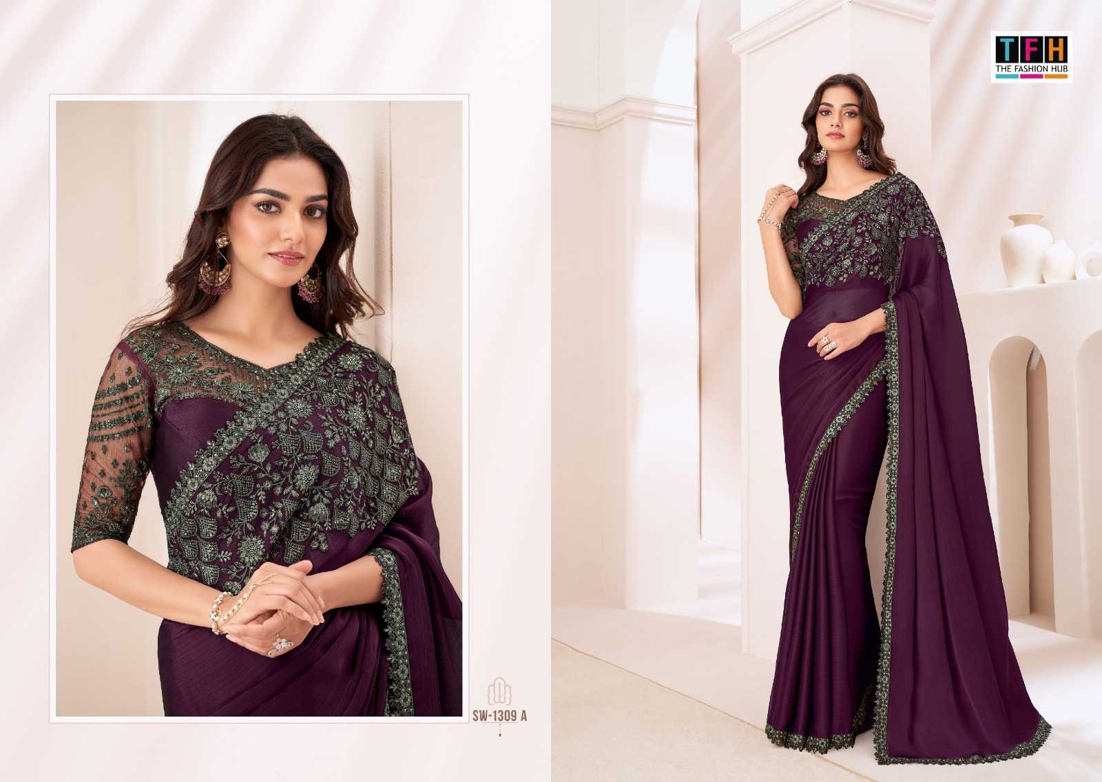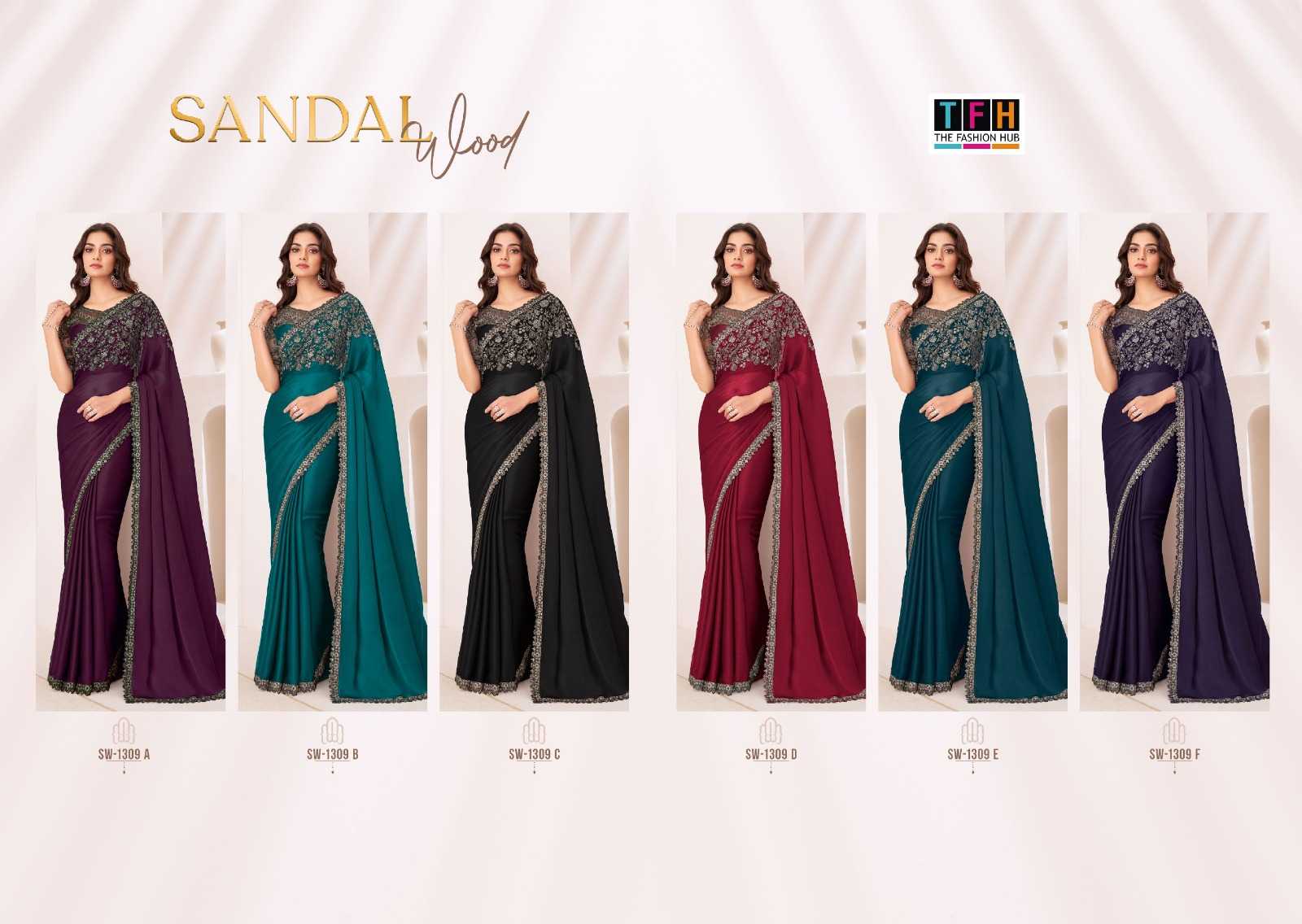 sandal wood 1309 by tfh satin chiffon party wear saree collection