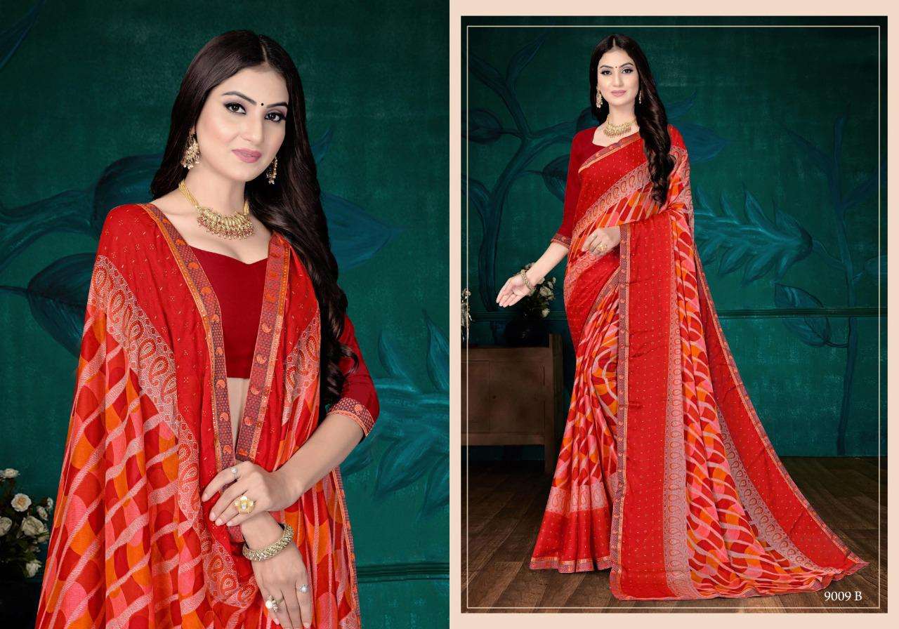 NEW LAUNCHING New ICON- Â Â Â Â Â Â (PRINTED SAREE) Brand:- BARGAD CATALOGUE:- SANDHYA WSR Rate:- _* 525/- per pcs Fabric:- Â MOSS CHIFFON ( ZARI VALUE ADDITION ) No. Of Designs:- 8 Packing pcs:- *Set Combo Pack = Cut:- 6.30 Mtr Delivery from today |
