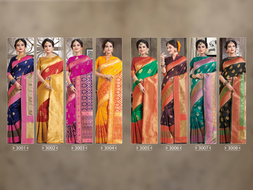 Brand - Sangam . Catlog name - SANSKRUTI. Total 8 Pcs in one set . Rate-1099 per Pcs . Set to set . Weaving silk fabric. GST 5 Percent Extra. Delivery-17-07-18. Book your order |