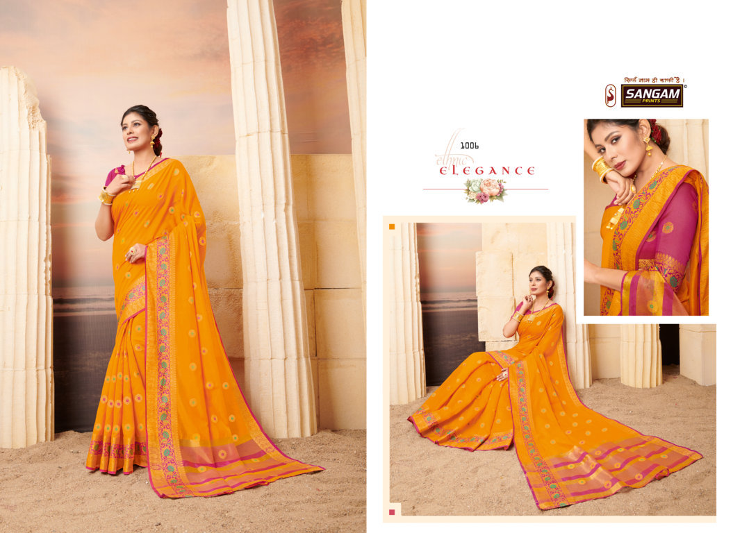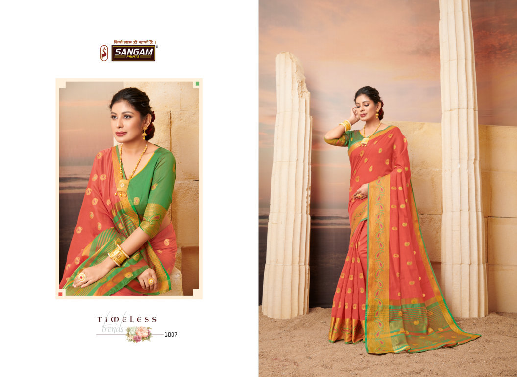 BRAND: SANGAM PRINTS CATALOG: ORANGE COTTON FABRIC: COTTON RATE: 685+5%GST WITH BLOUSE PIECE ATTACHED BLOUSE WORK: WOVEN 🌸BOOK YOUR ORDERS NOW |