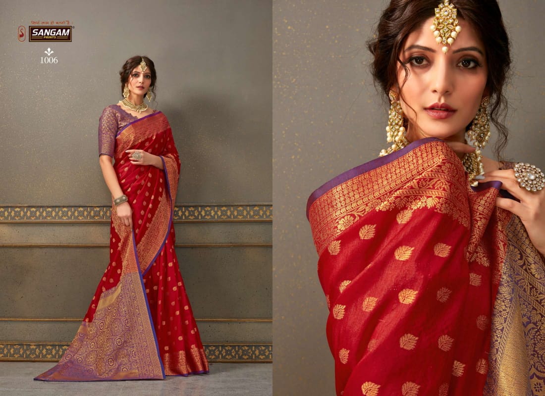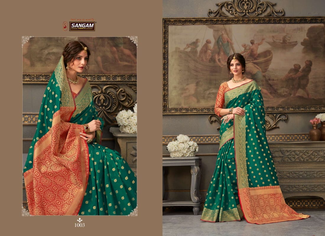 Sangam Print Sandhya Handloom Silk Traditional Wedding And Festival Wear Saree