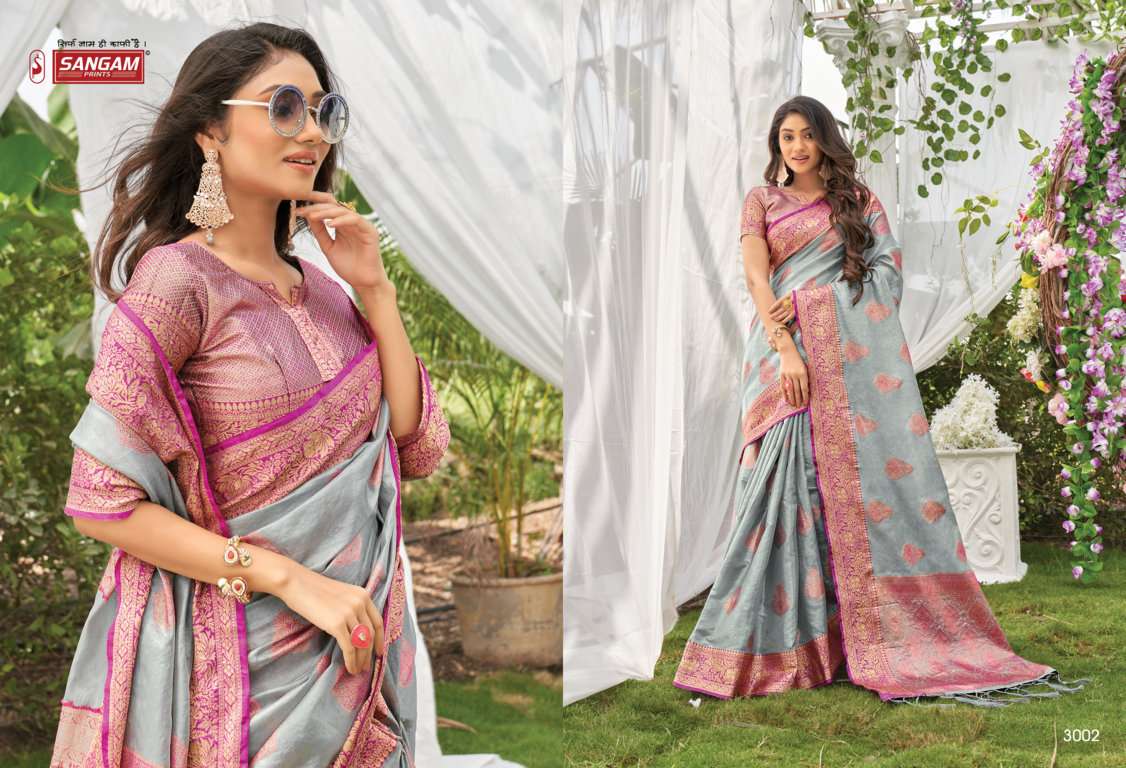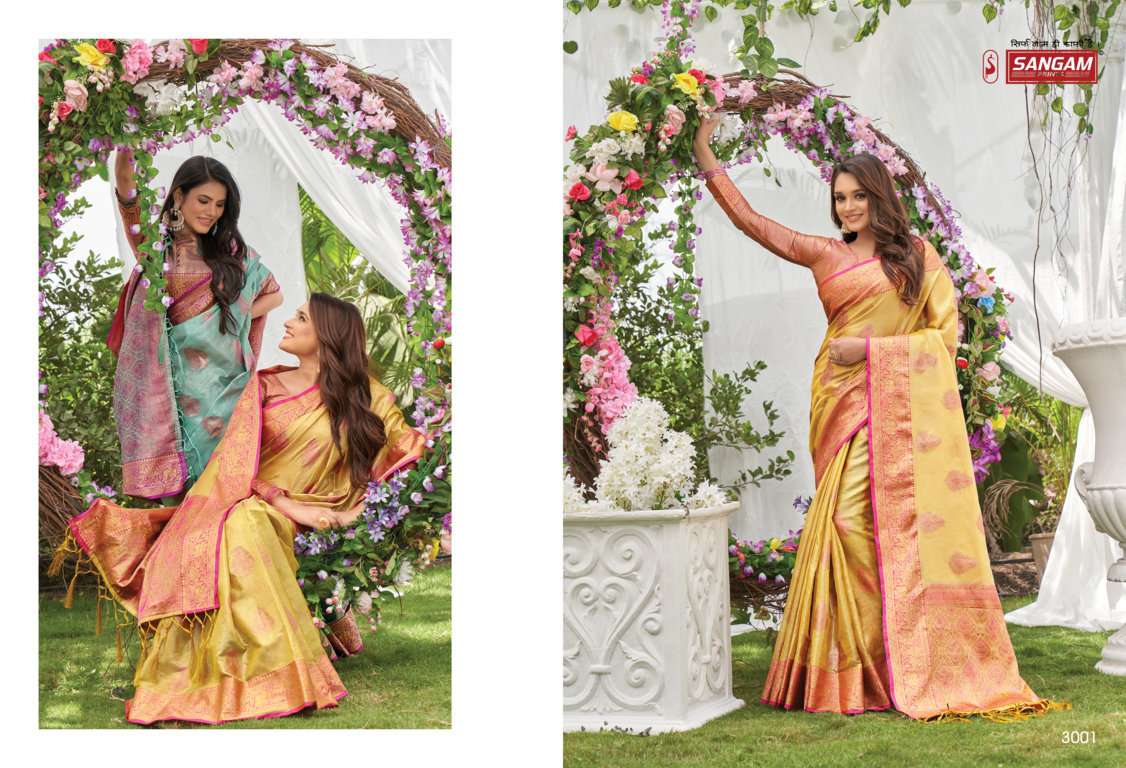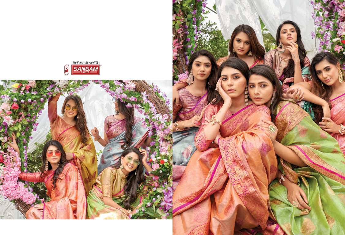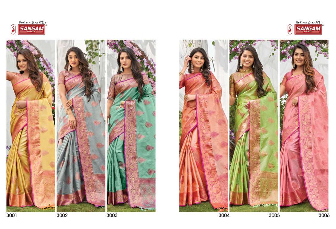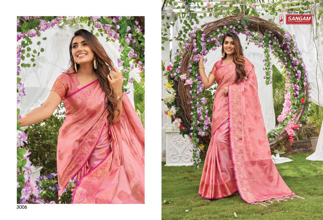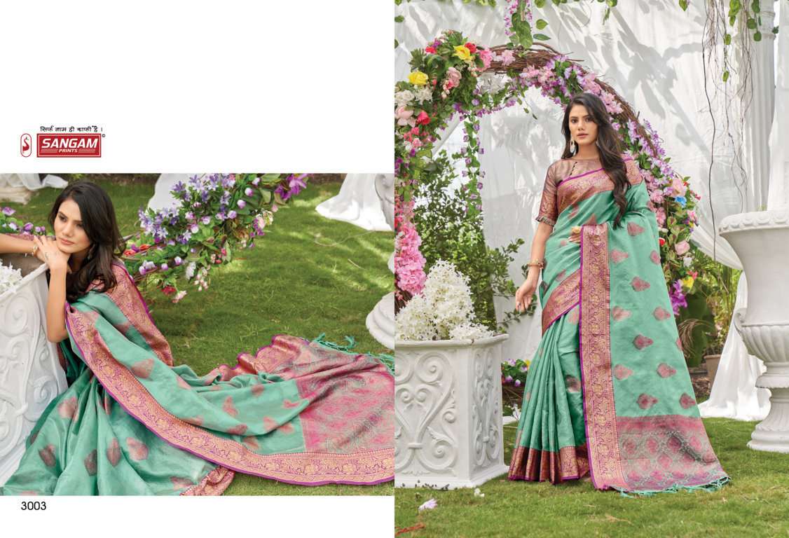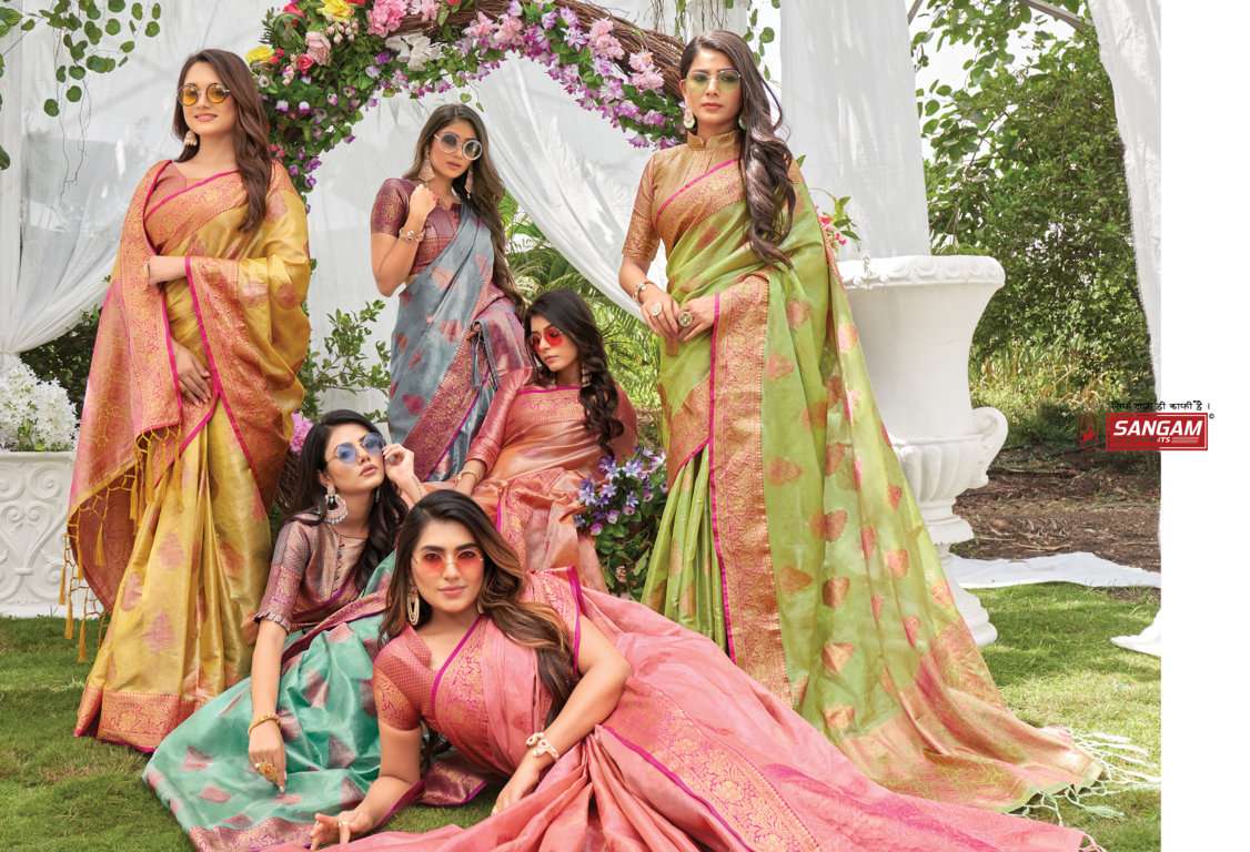 sangam prints jugnoo organza rich pallu saris wholesaler