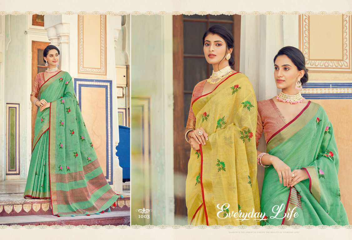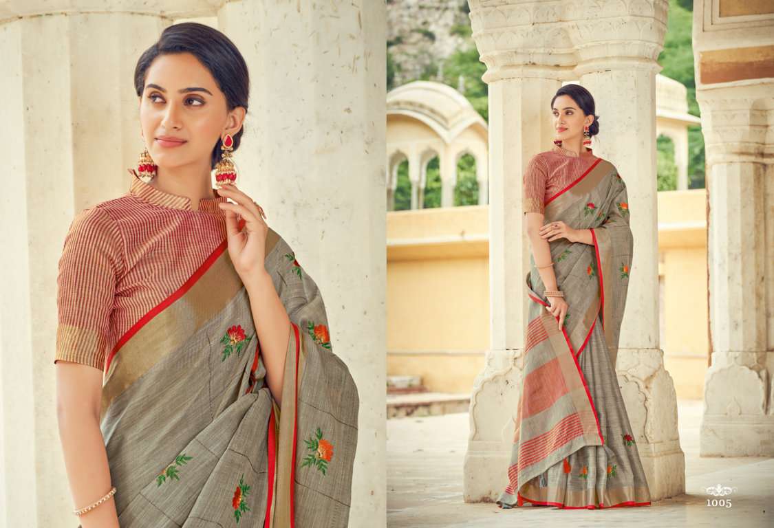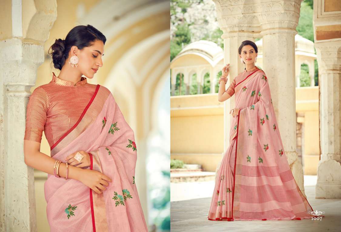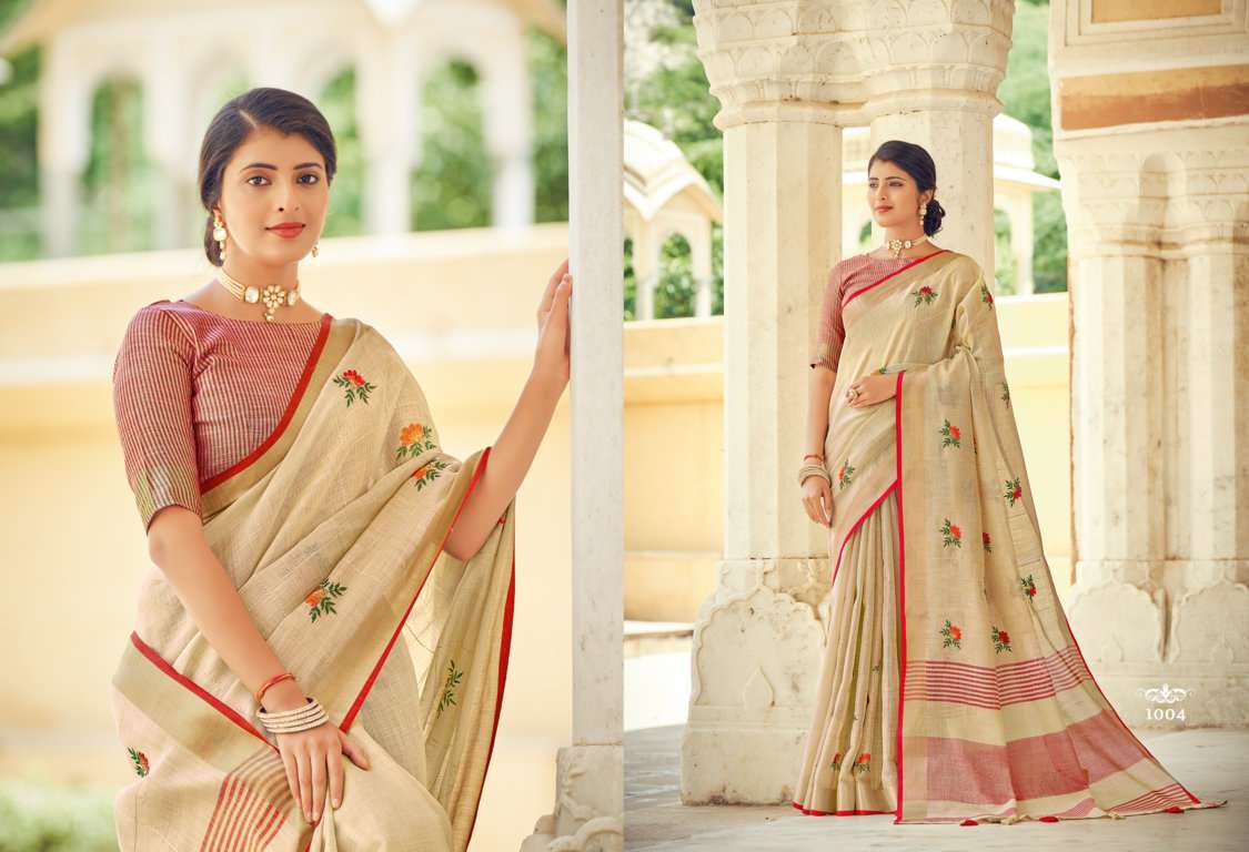 sangam prints sushmita linen embroidery saris wholesaler
