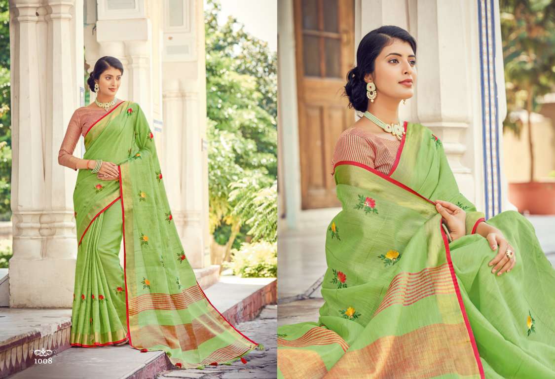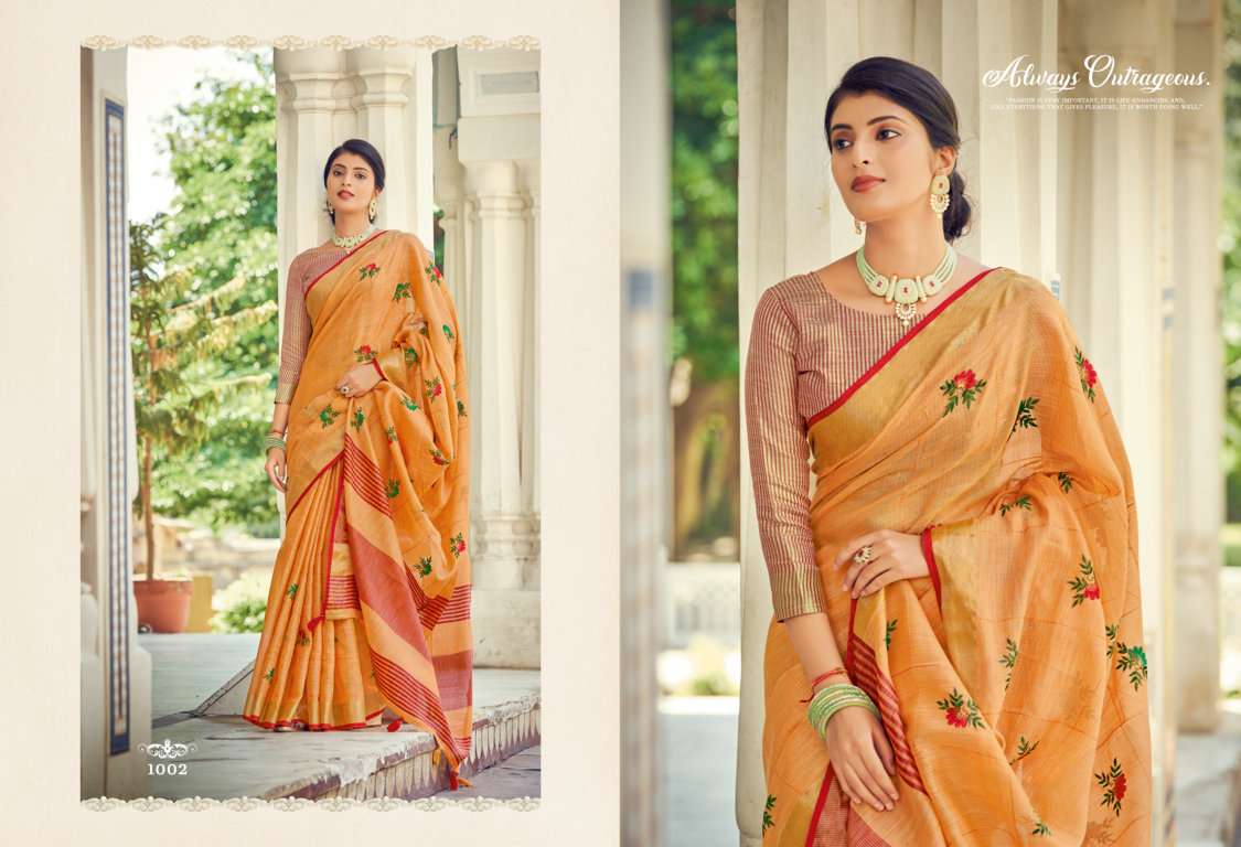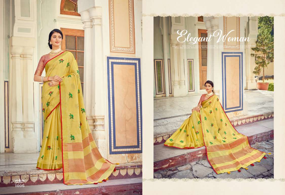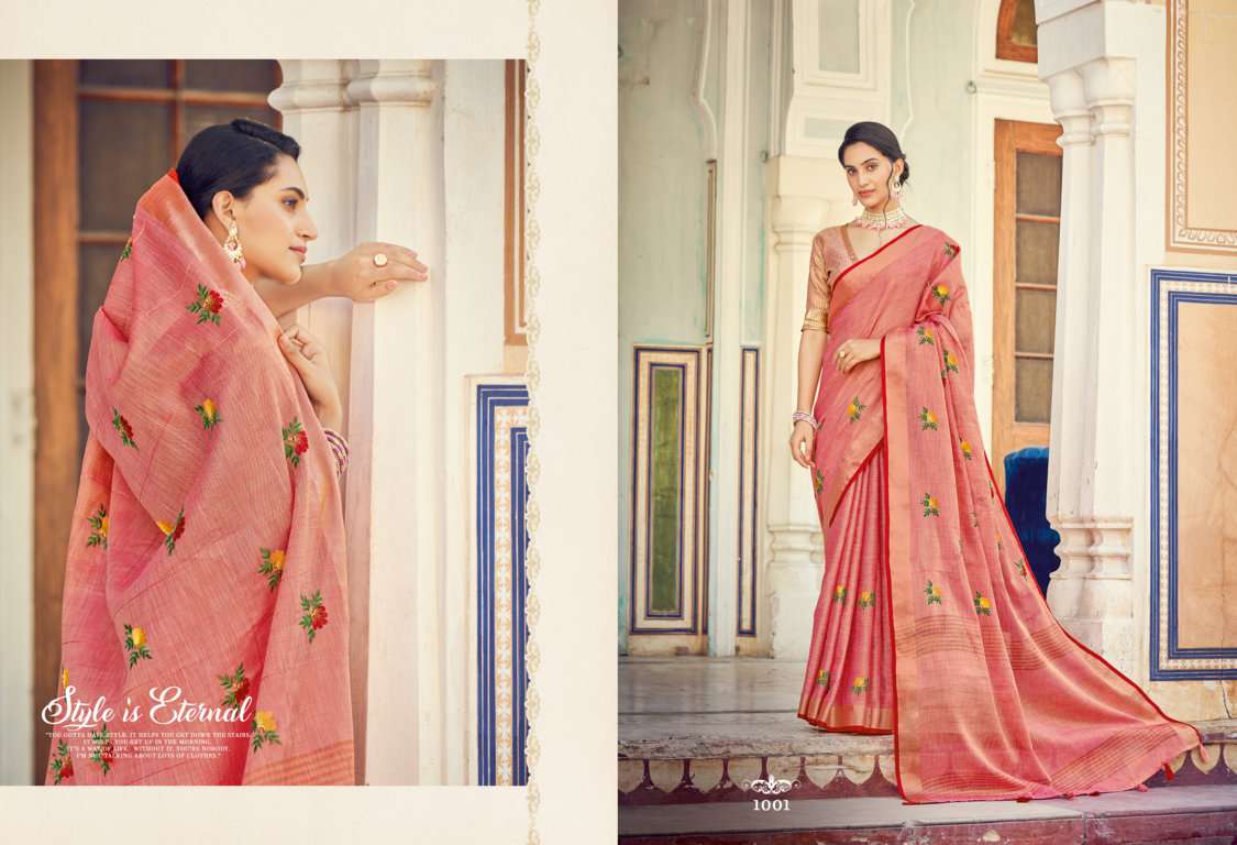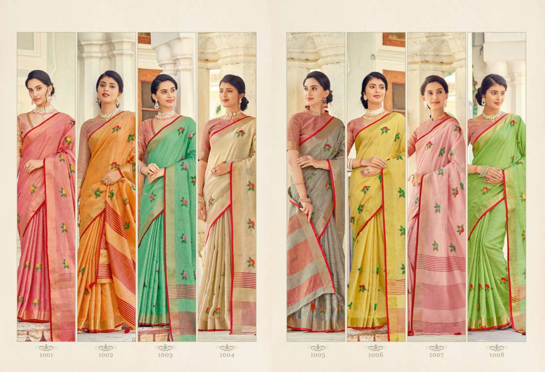sangam prints sushmita linen embroidery saris wholesaler