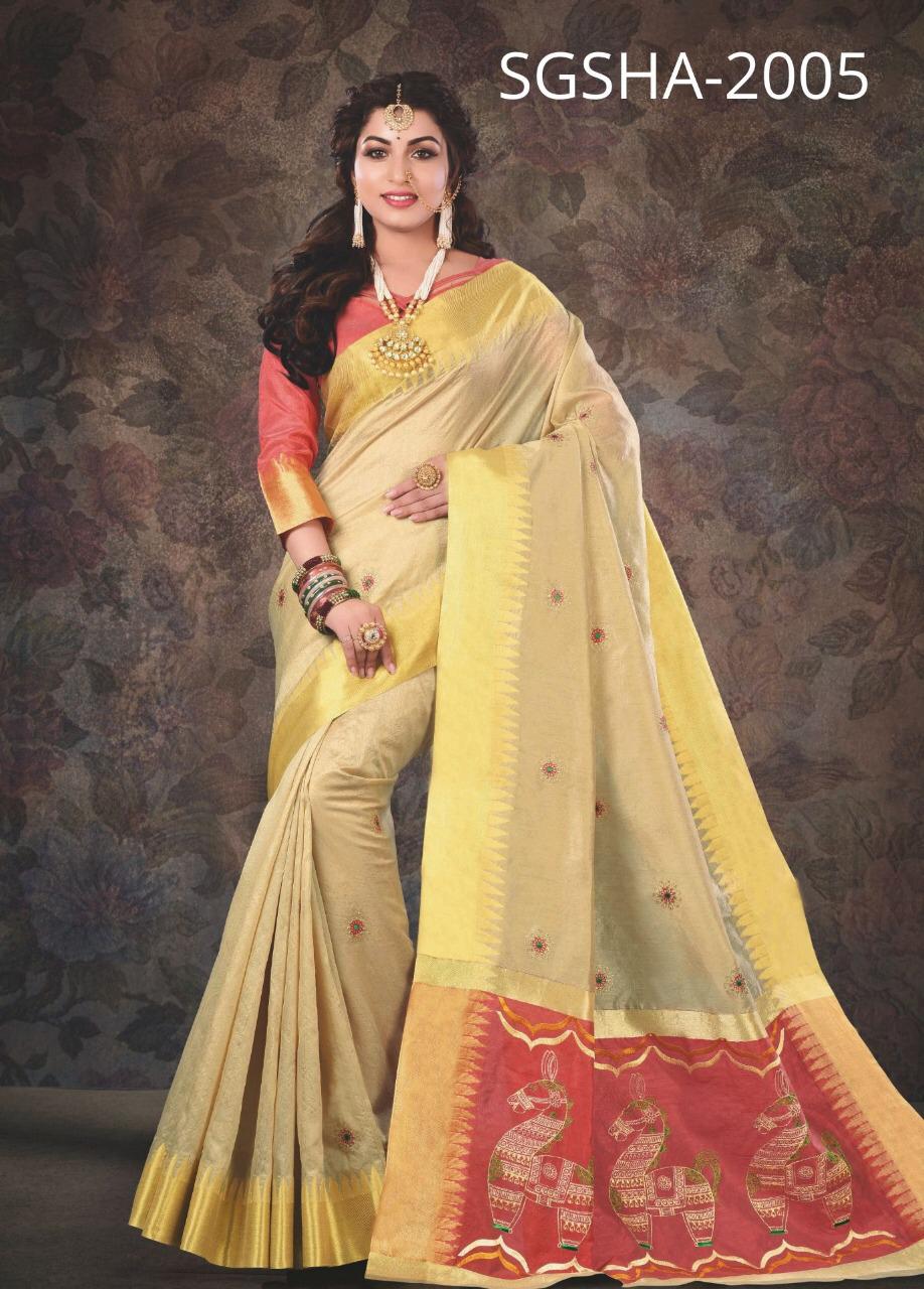 Sangam Shantipuri Handloom Pure Crystal Silk Saree Wholesaler