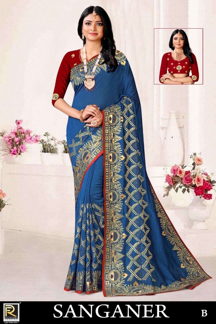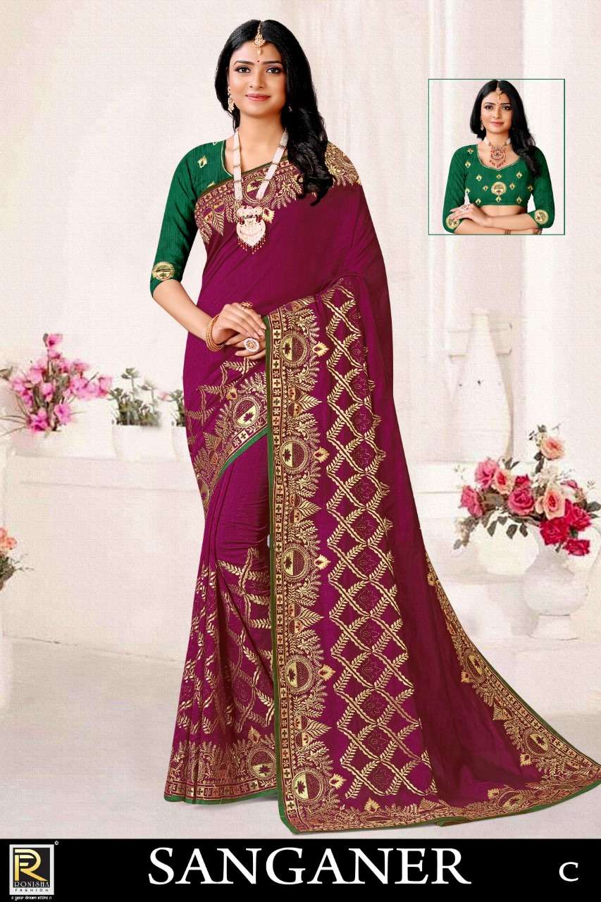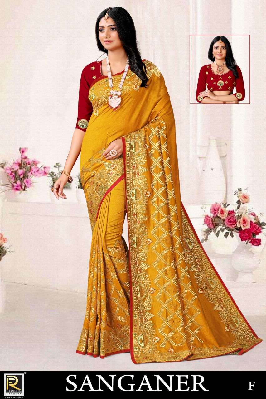 Sanganer by ranjna saree embroidery worked designer saree collecton