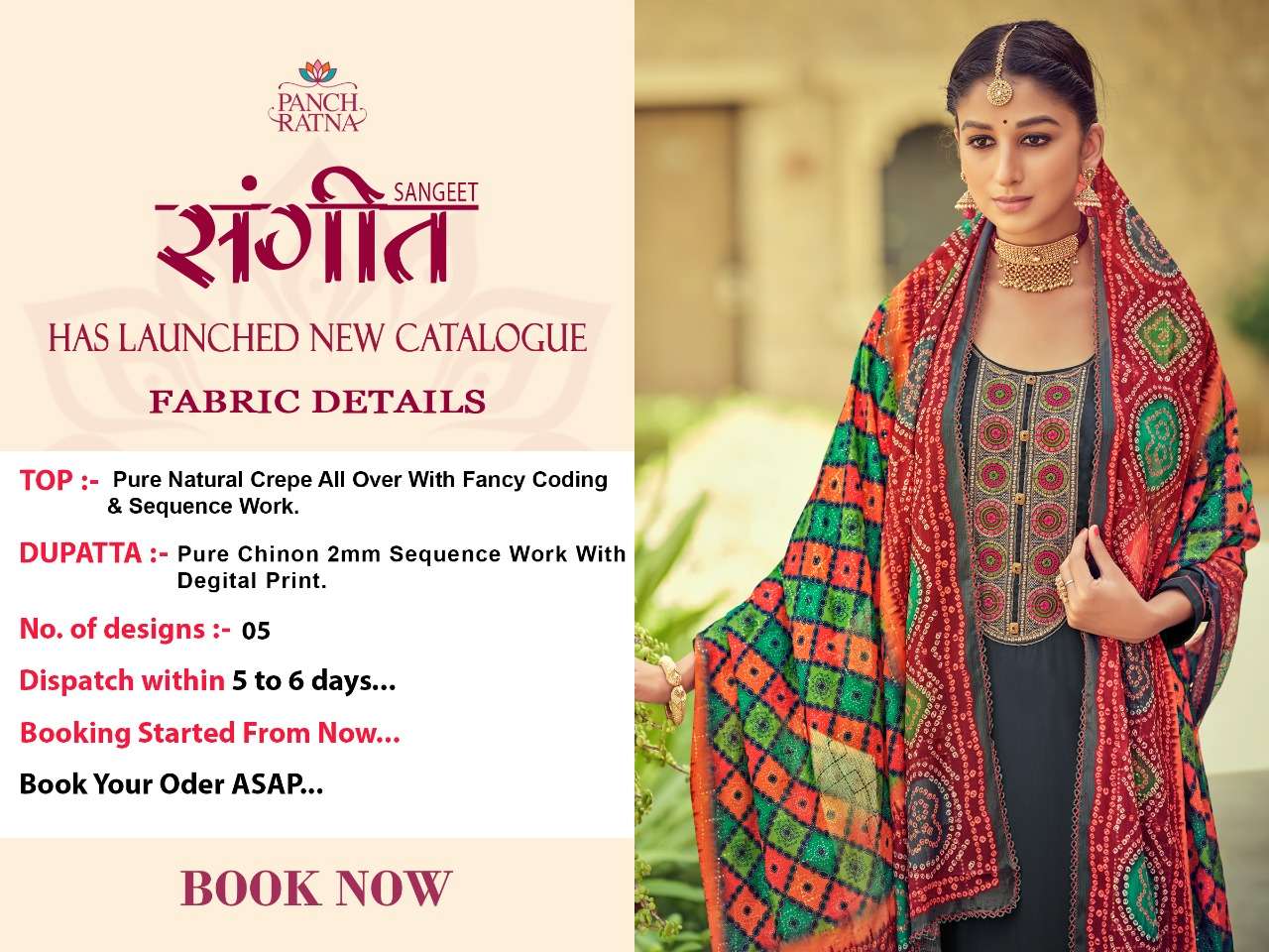 SPACIAL COLLECTION Panch Ratna has launched 🔸 Fabric Details 🔸 ▪Top :- Pure Natural Crepe All Over With Fancy Coding & Sequence Work ▪Dupatta :- Pure Chinon 2mm Sequence Work With Digital Print ▪️Rate :-899/- |