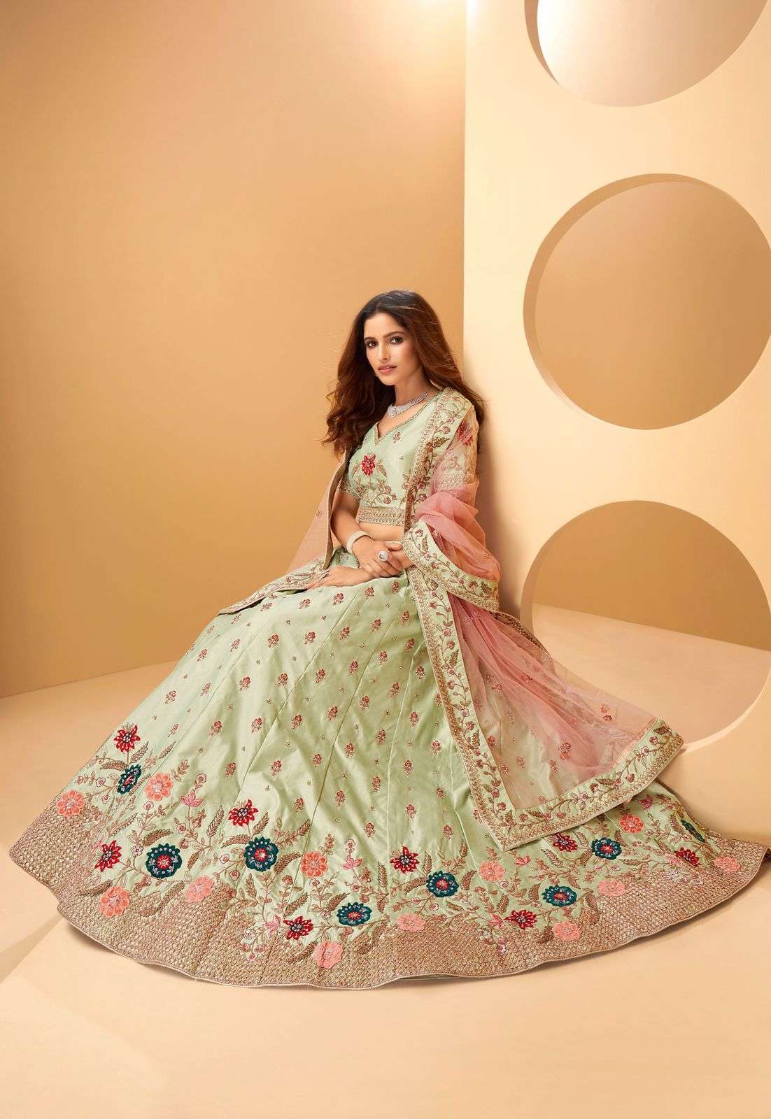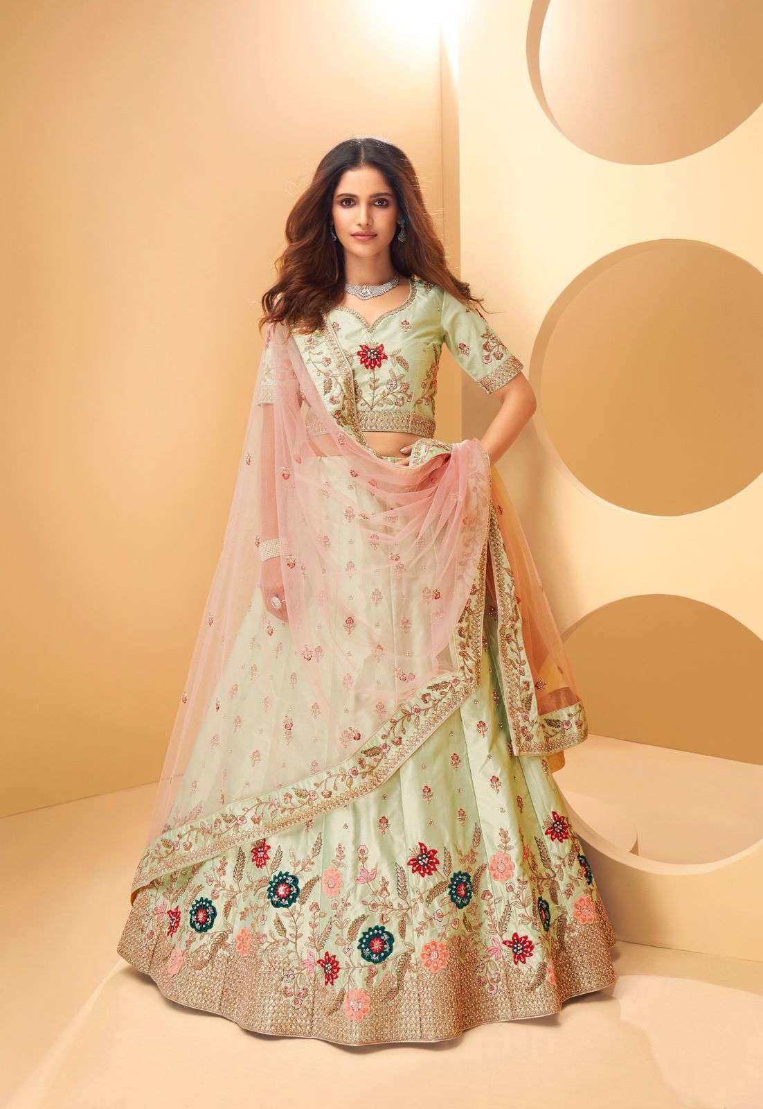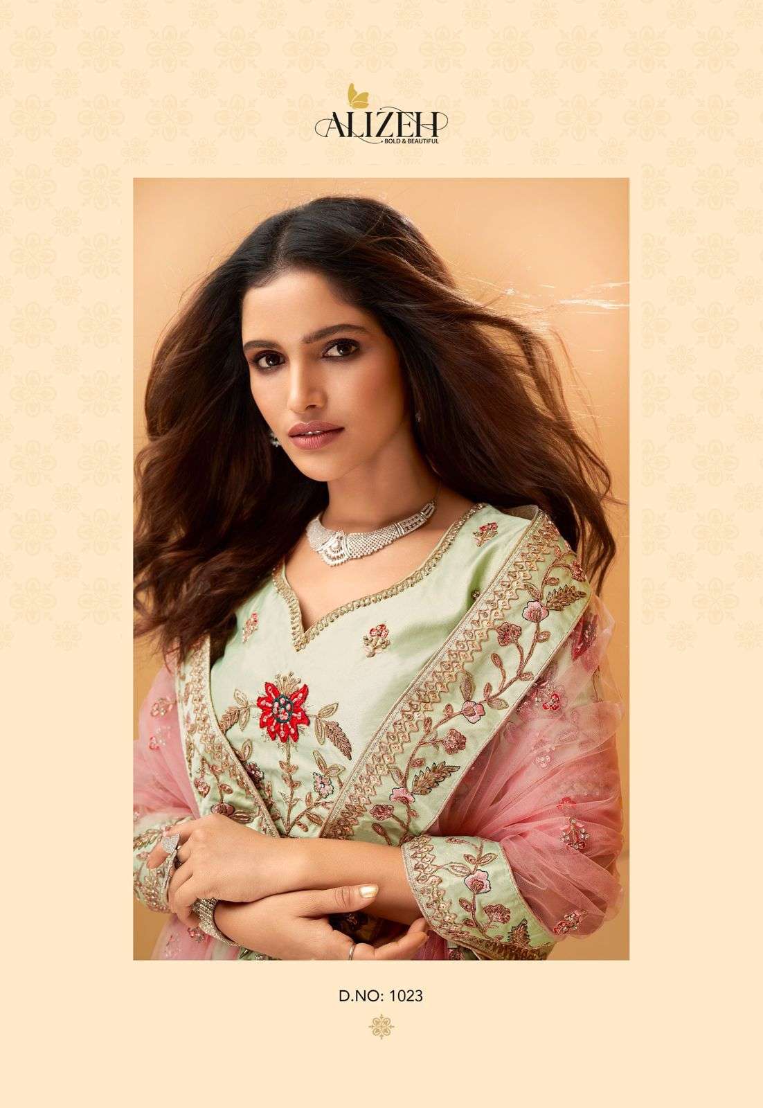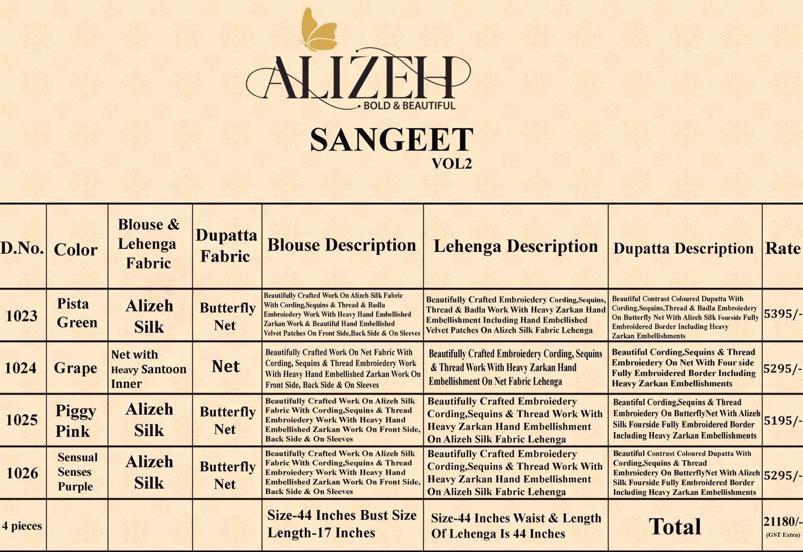 ALIZEH OFFICIAL #SANGEET - A Delightful Lehenga Collection With All Over Floral Cording,Thread Embroidery & Sequins Work Accompanied By Heavy Hand Zarkan Embellishments. SANGEET VOL-2 -  A PREMIUM LEHENGA COLLECTION BY ALIZEH OFFICIAL Pricelist & Fabric Details Attached Weight Of Product-4 KG GST 12 Percent Extra Delivery-Ready To Ship |