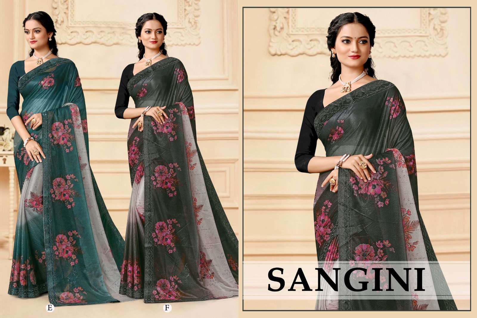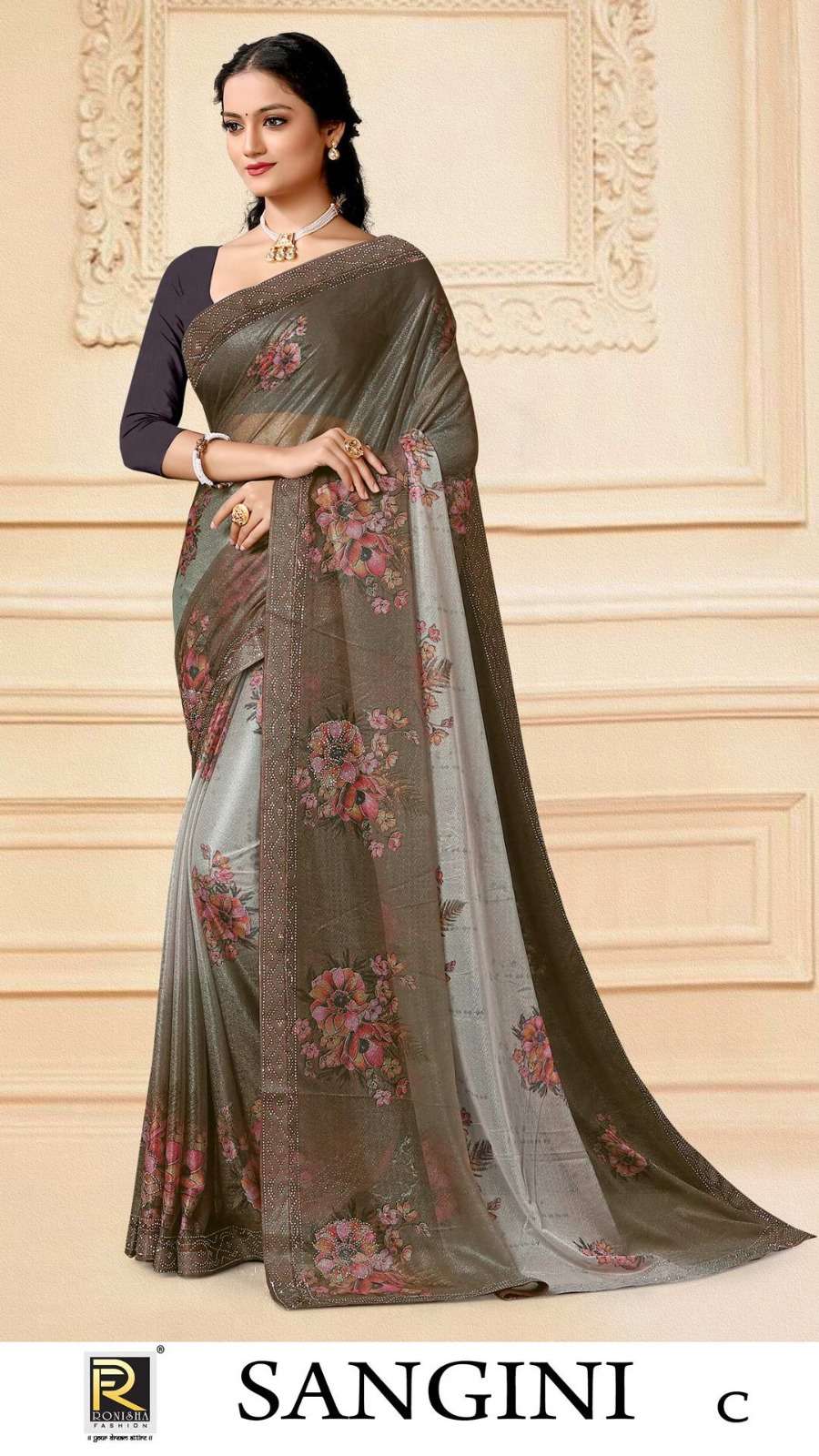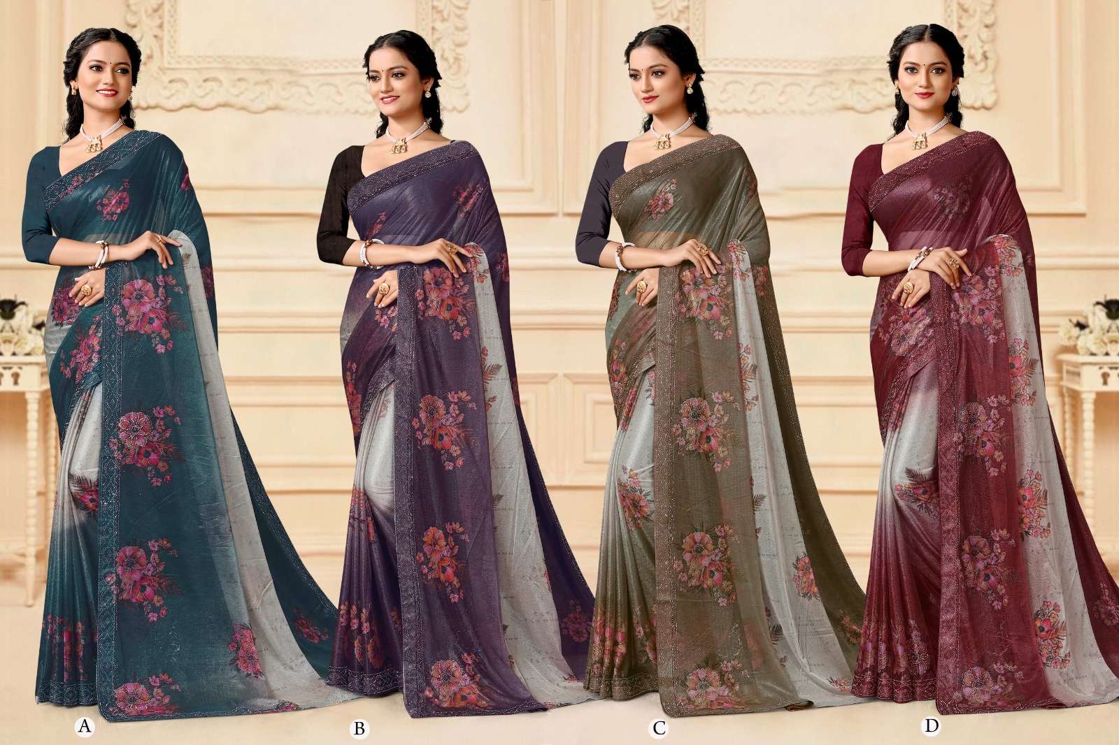 SANGINI BY RANJNA SAREE FABRICS IMPORTED LYCRA PRINT WITH SIROSKI DIAMOND WORK WORK FANCY DESIGNER SAREE
