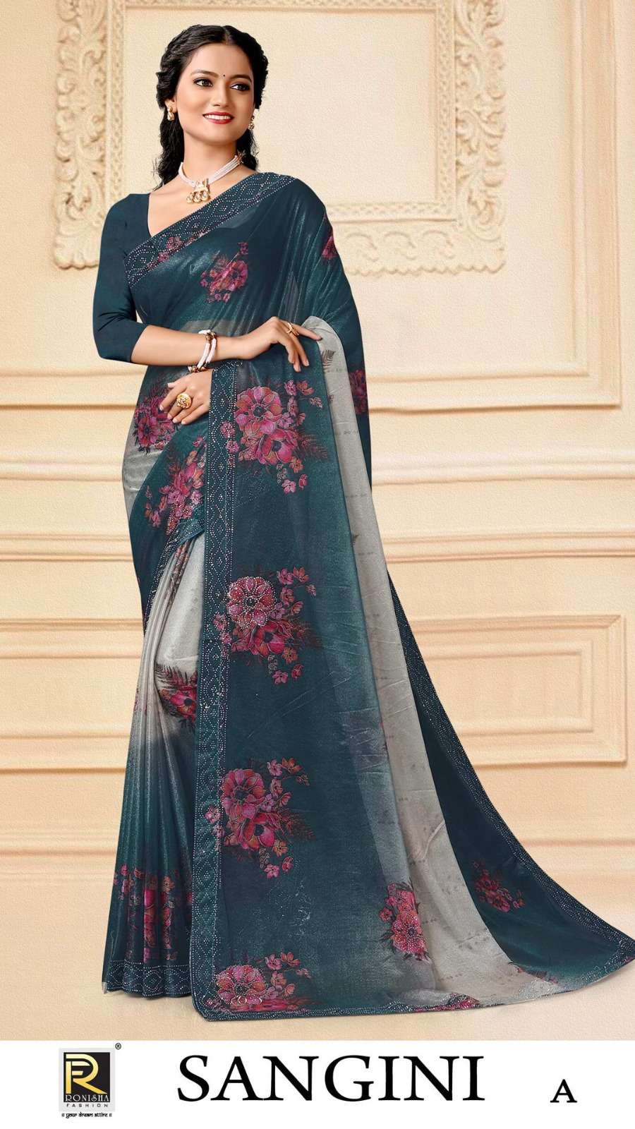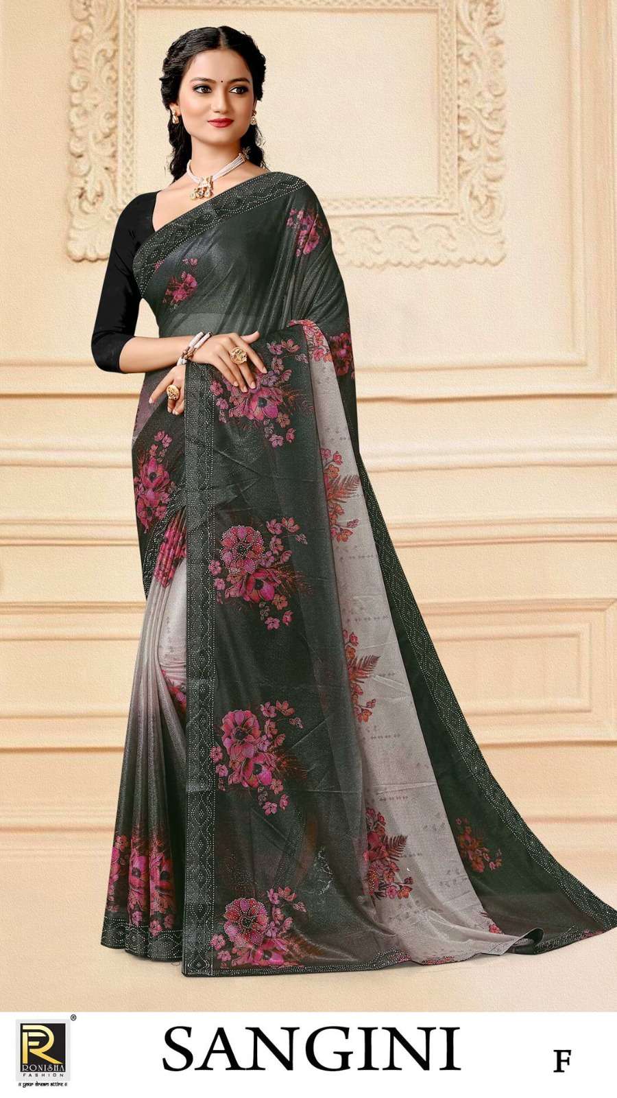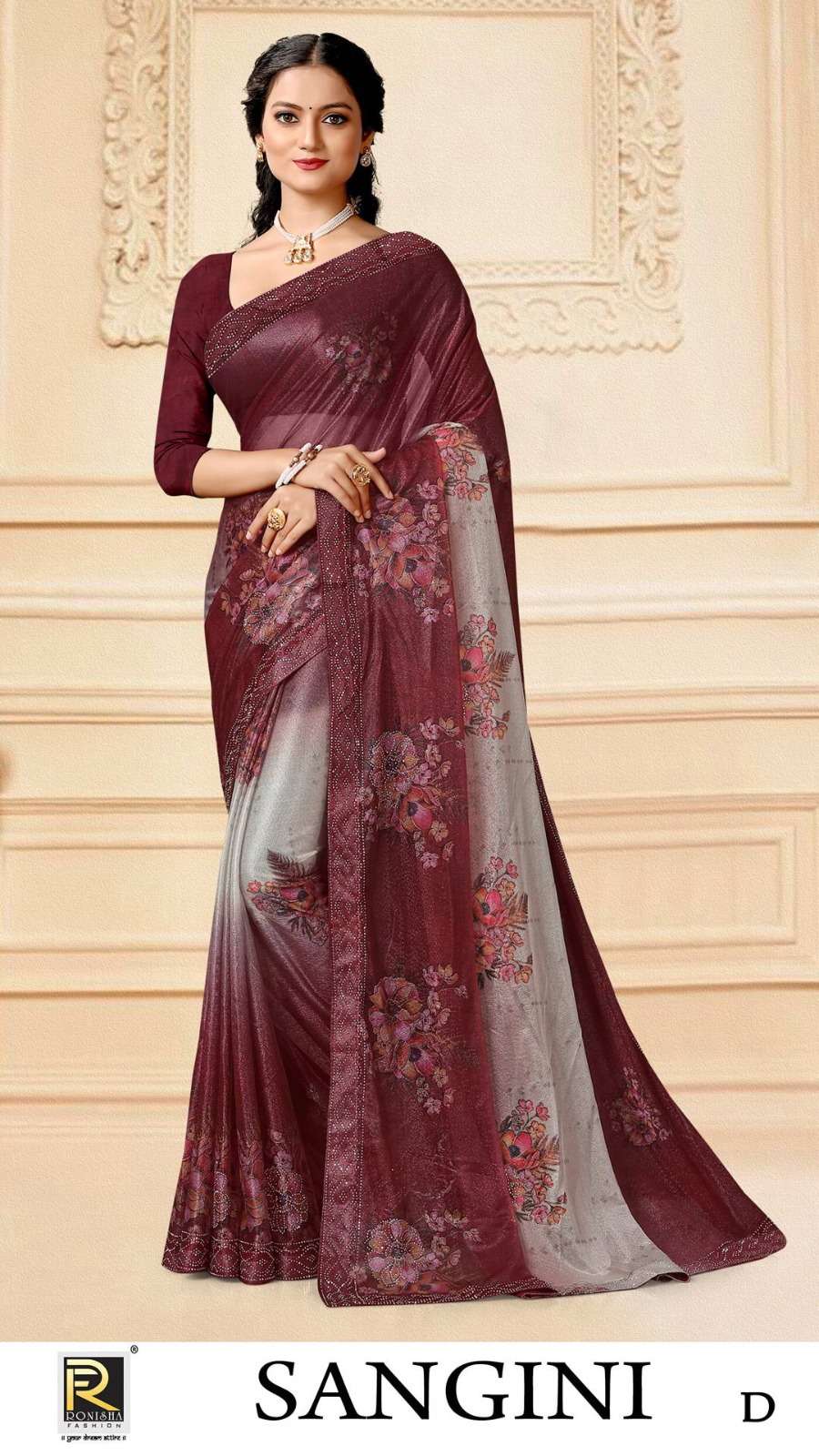 SANGINI BY RANJNA SAREE FABRICS IMPORTED LYCRA PRINT WITH SIROSKI DIAMOND WORK WORK FANCY DESIGNER SAREE