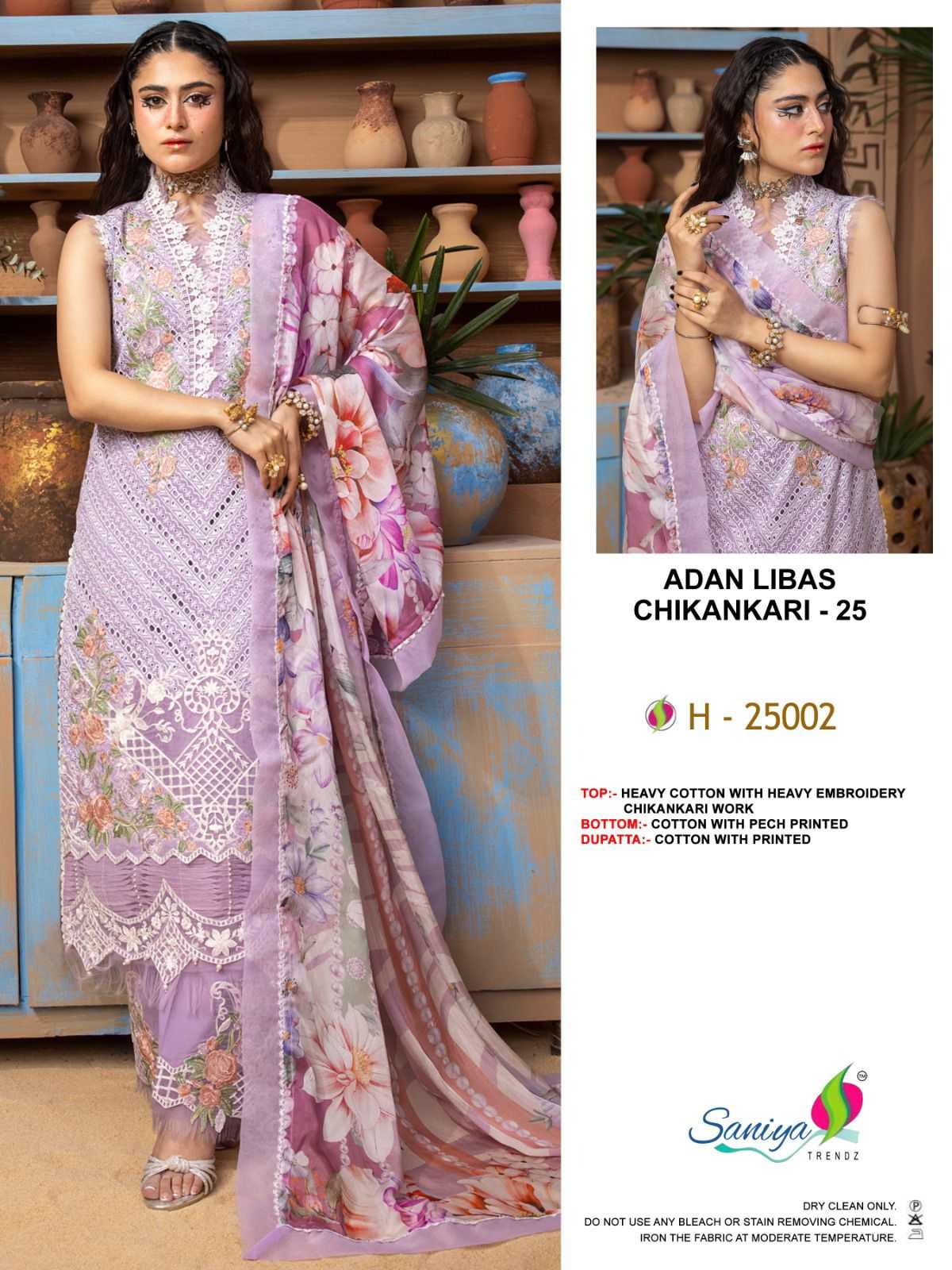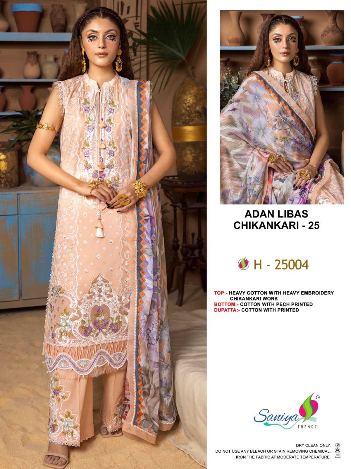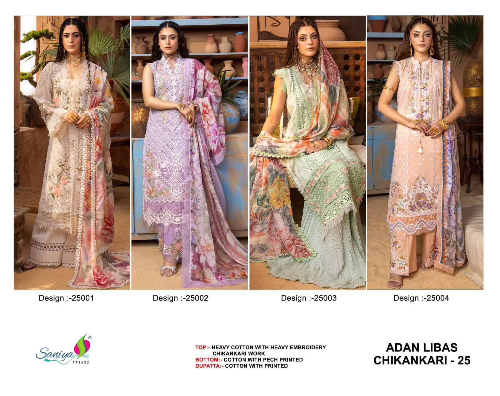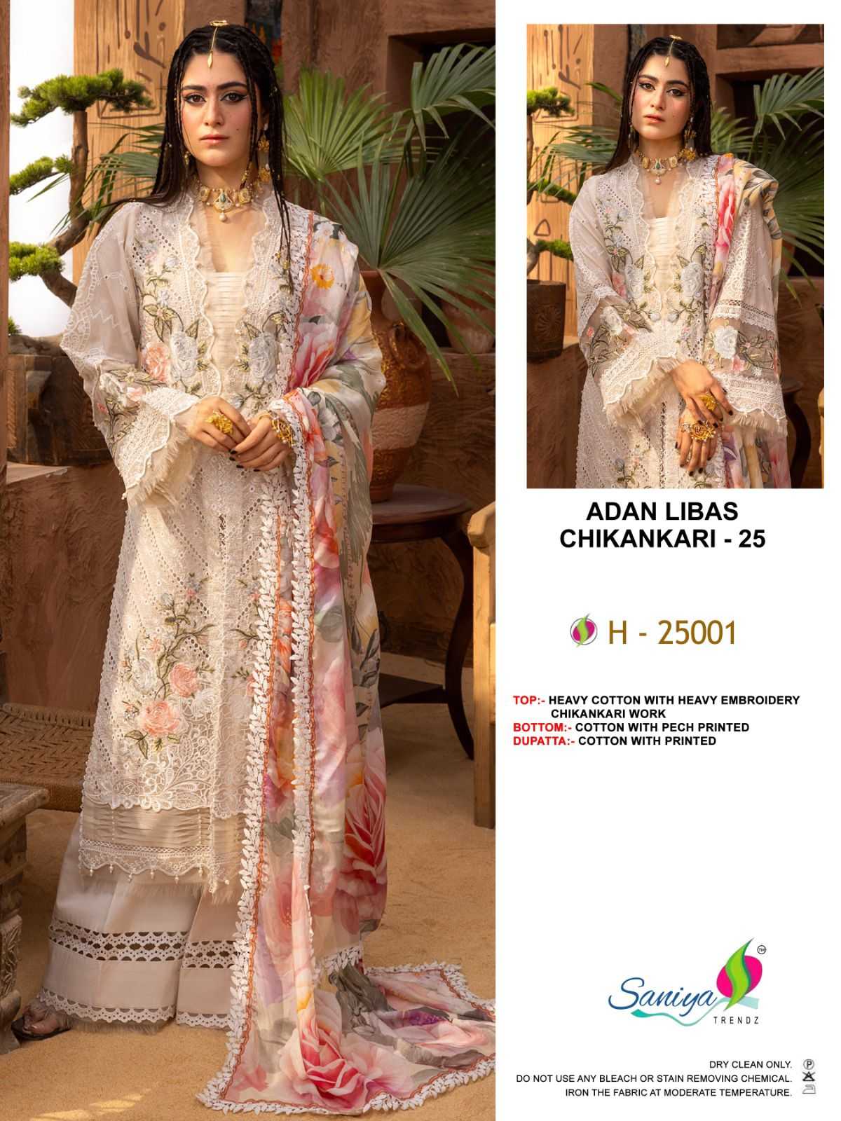 saniya trendz adan libas chikankari vol 25 pakistani cotton embroidery work dress material