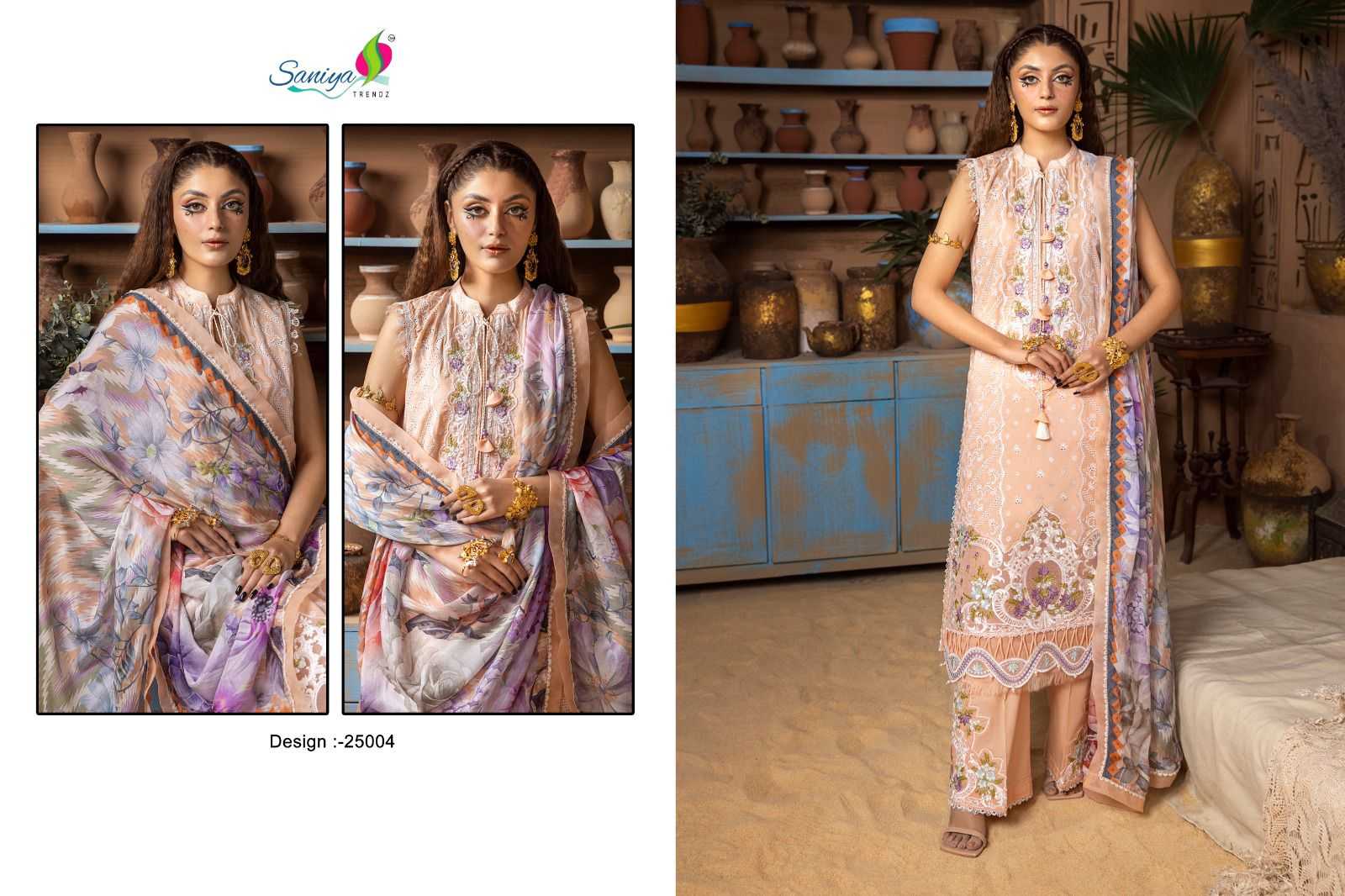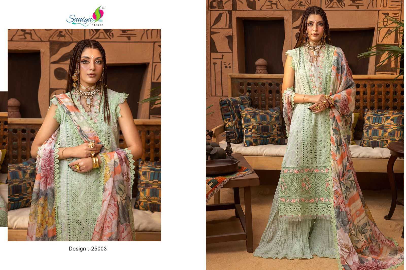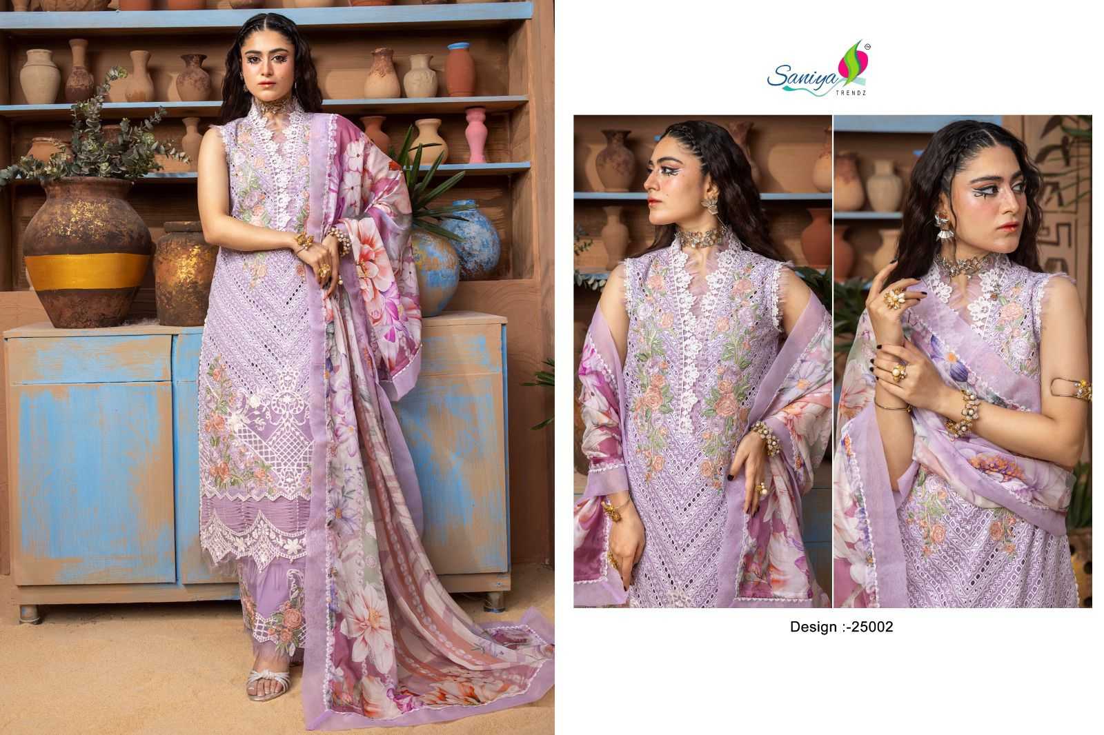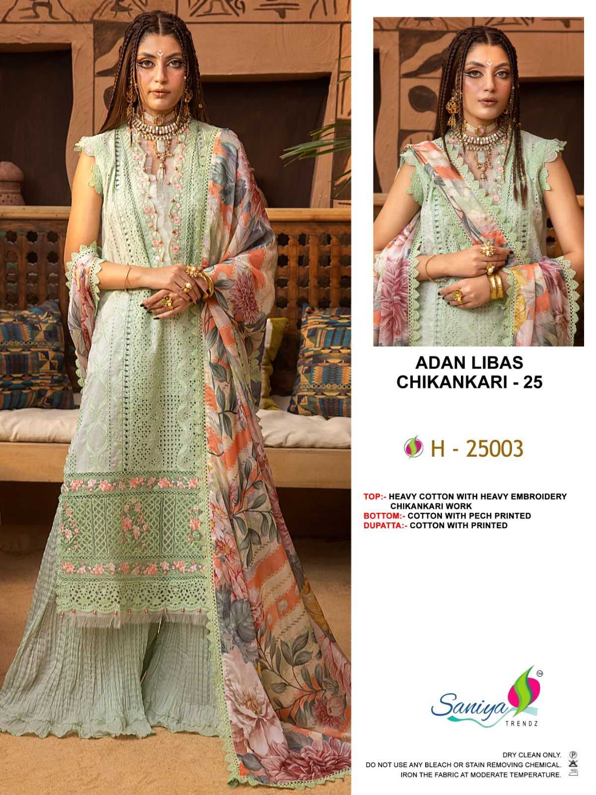 saniya trendz adan libas chikankari vol 25 pakistani cotton embroidery work dress material