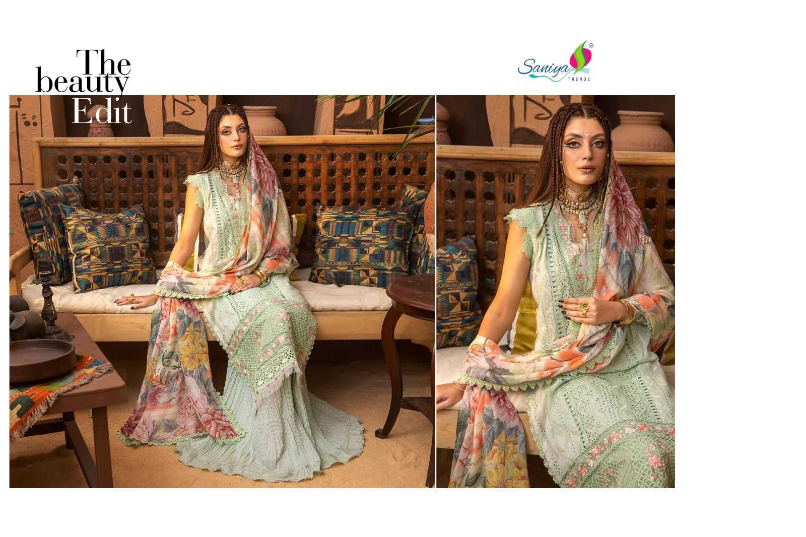Saniya Trendz Presents Latest Collection Launched on 18-03-2024. Presenting Beautiful collection of 4 PCS with Unstitched .