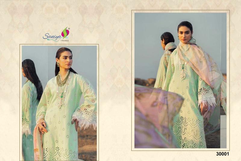 saniya trendz adan libas chikankari vol 30 cotton unstitch 3pcs pakistani dress