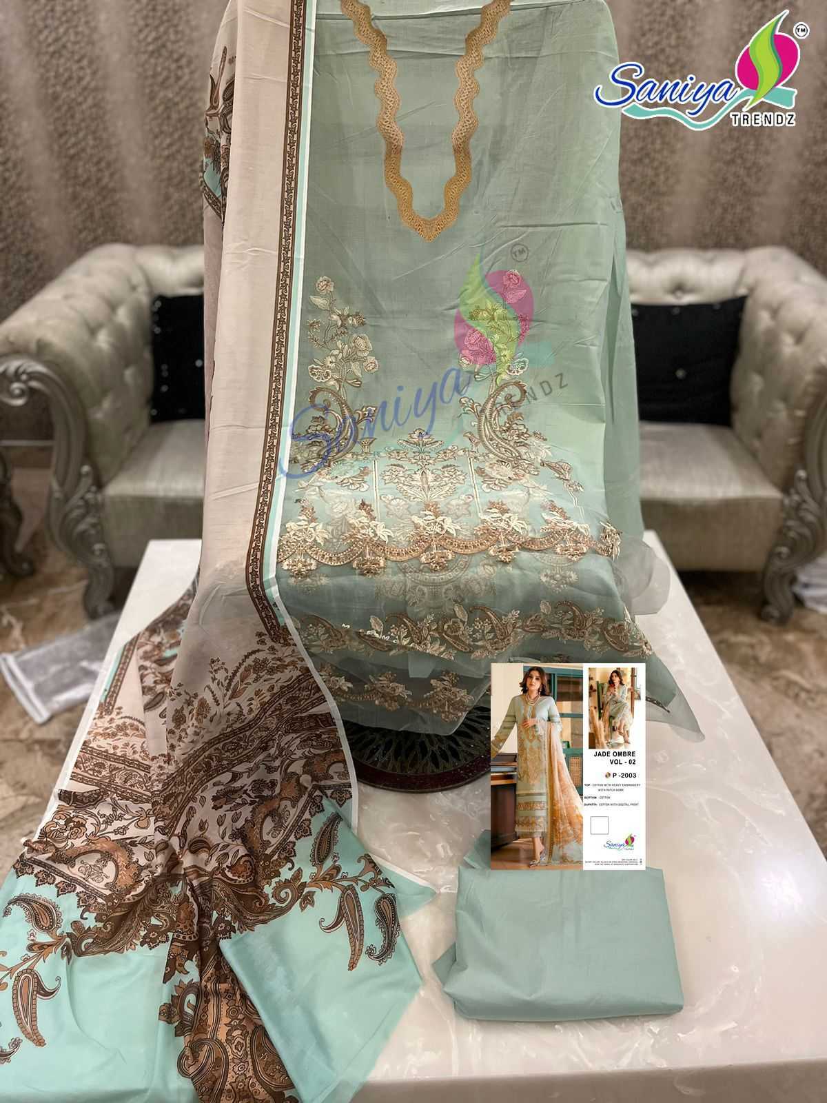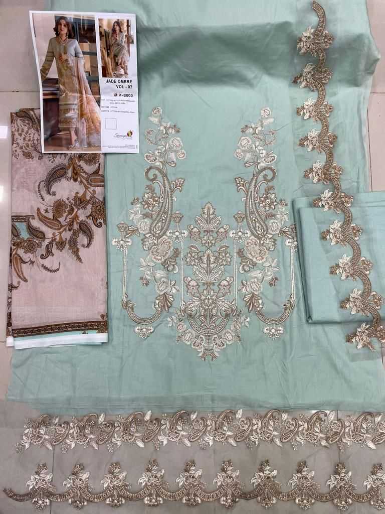saniya trendz jade ombre 2003 cotton with embroidery single pakistani suit