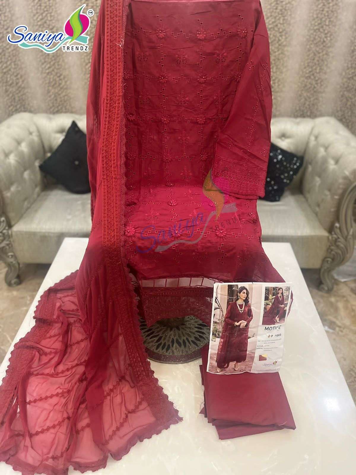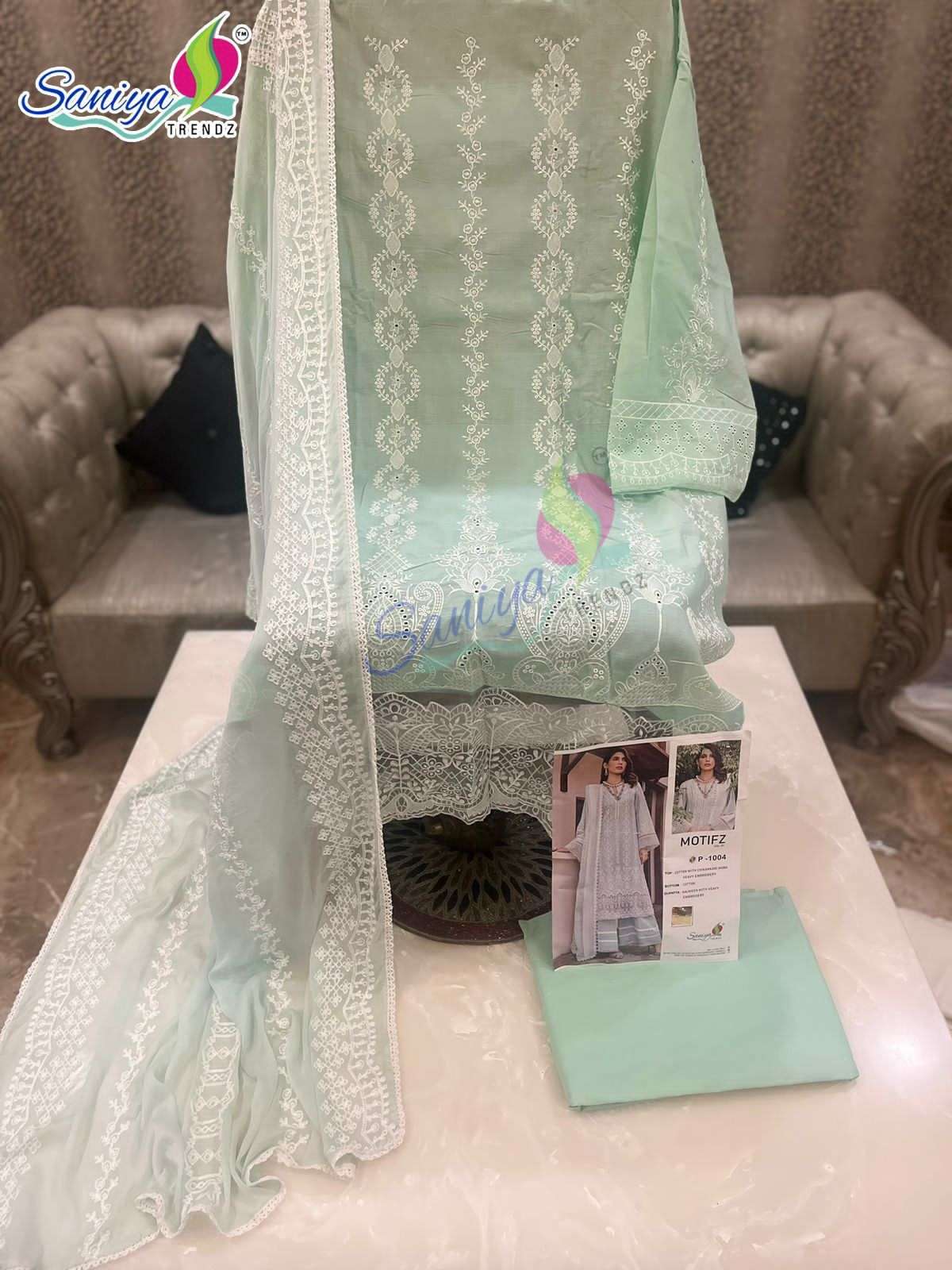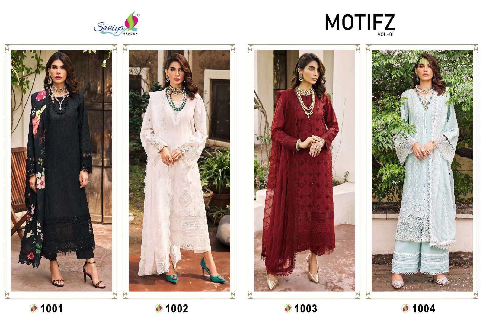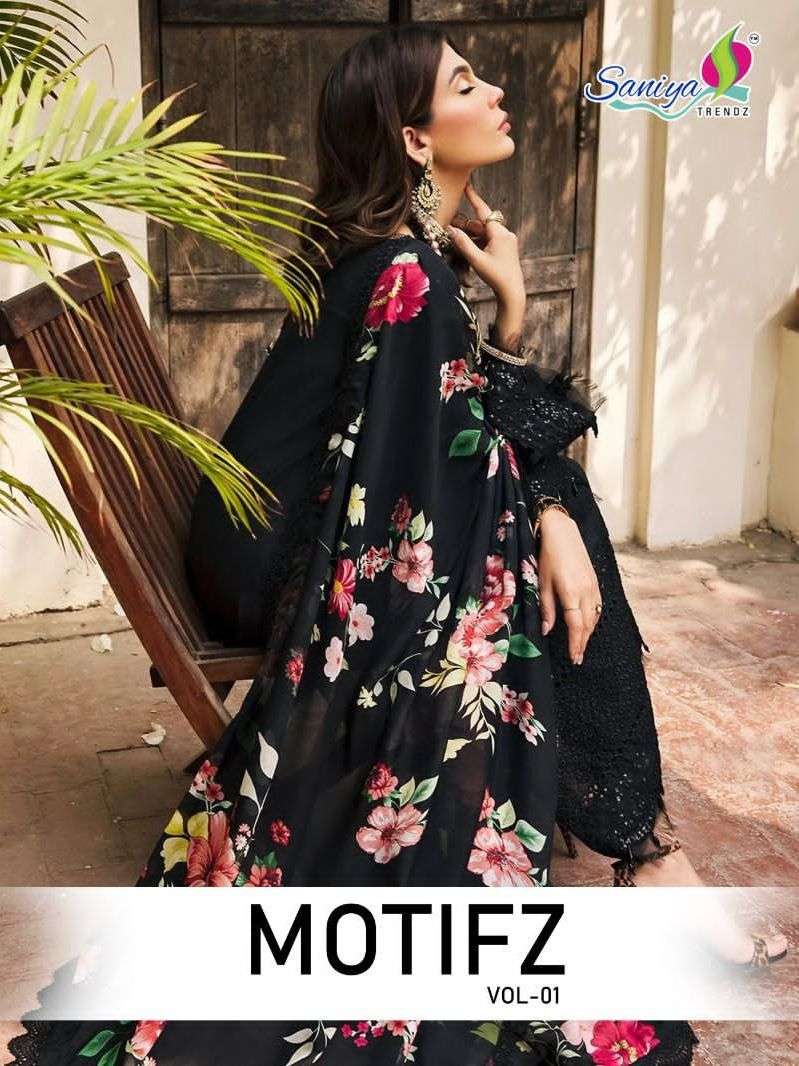 saniya trendz motifz vol 1 designer work pakistani suits material